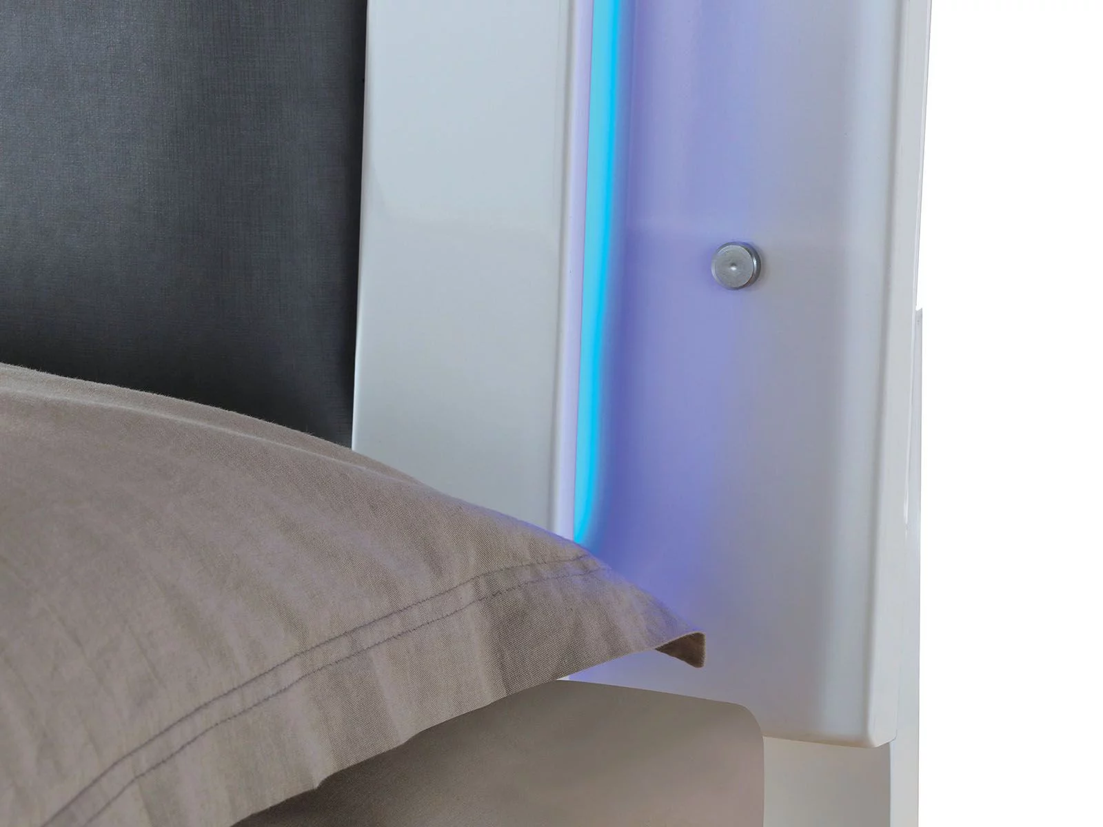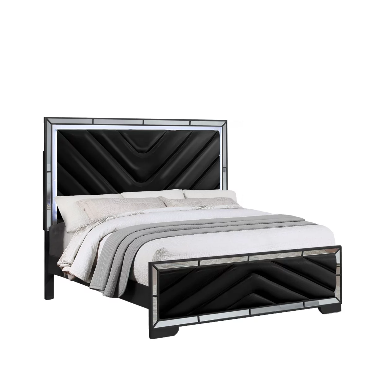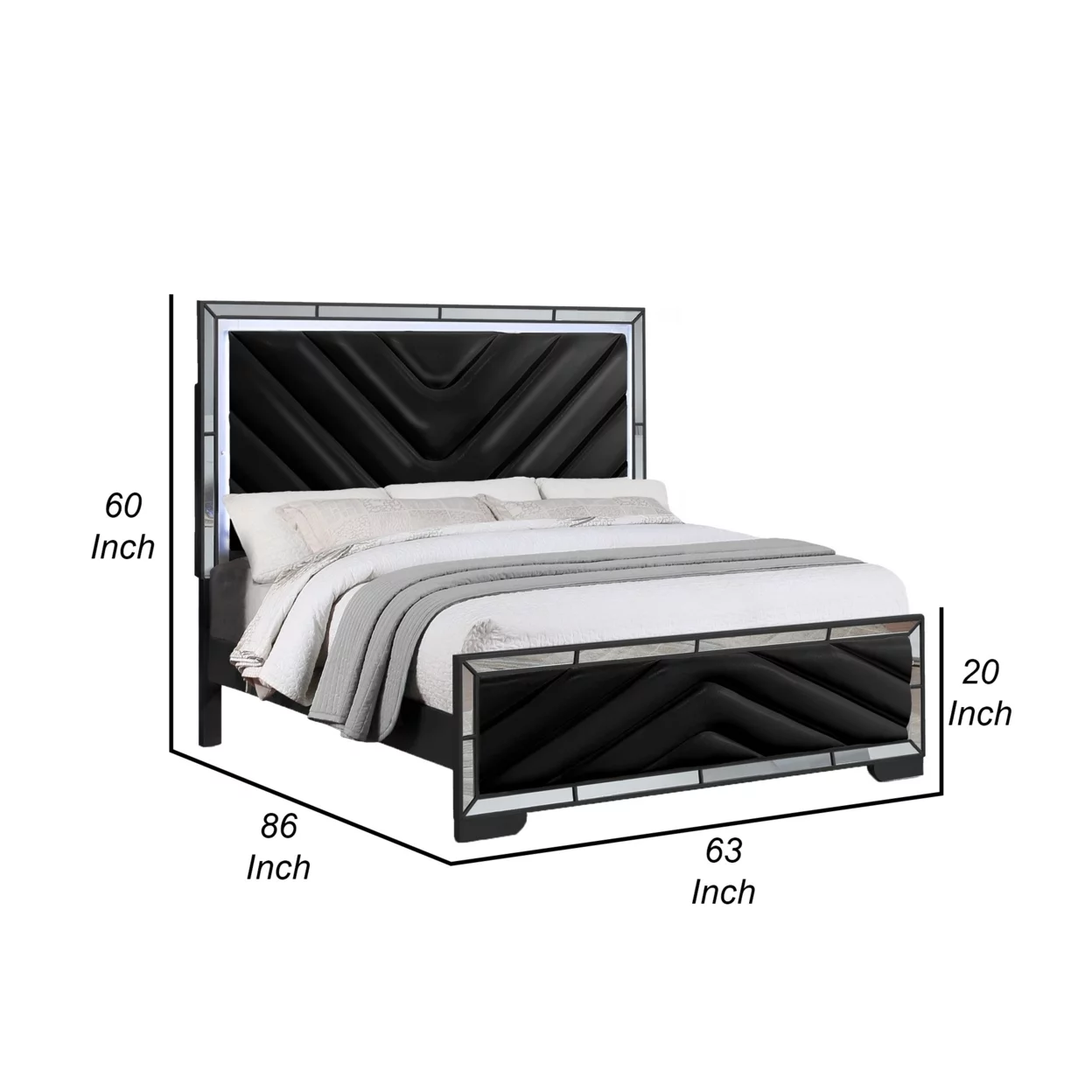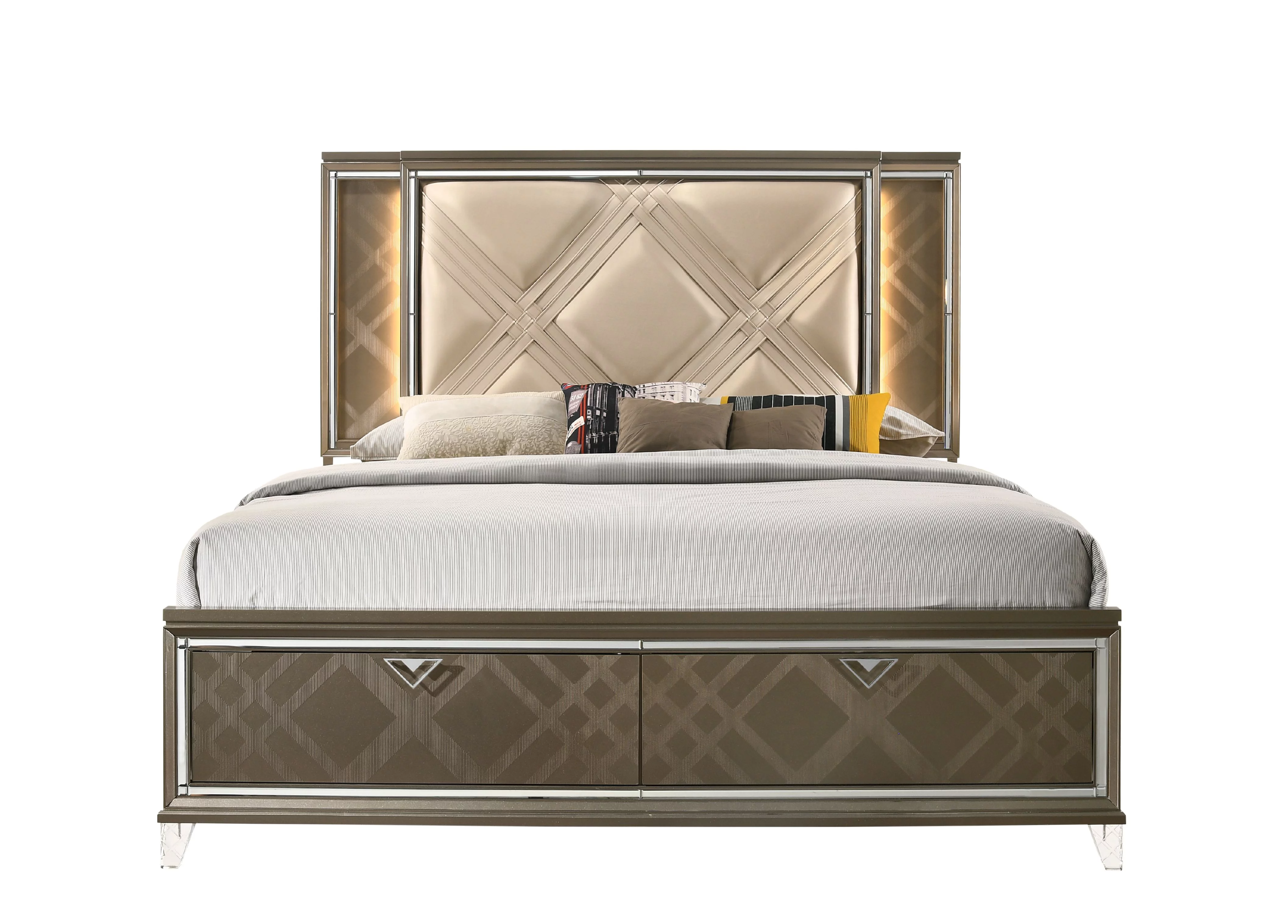 EK BED W/LED & STORAGE | Synthetic leather & Dark Champagne Finish