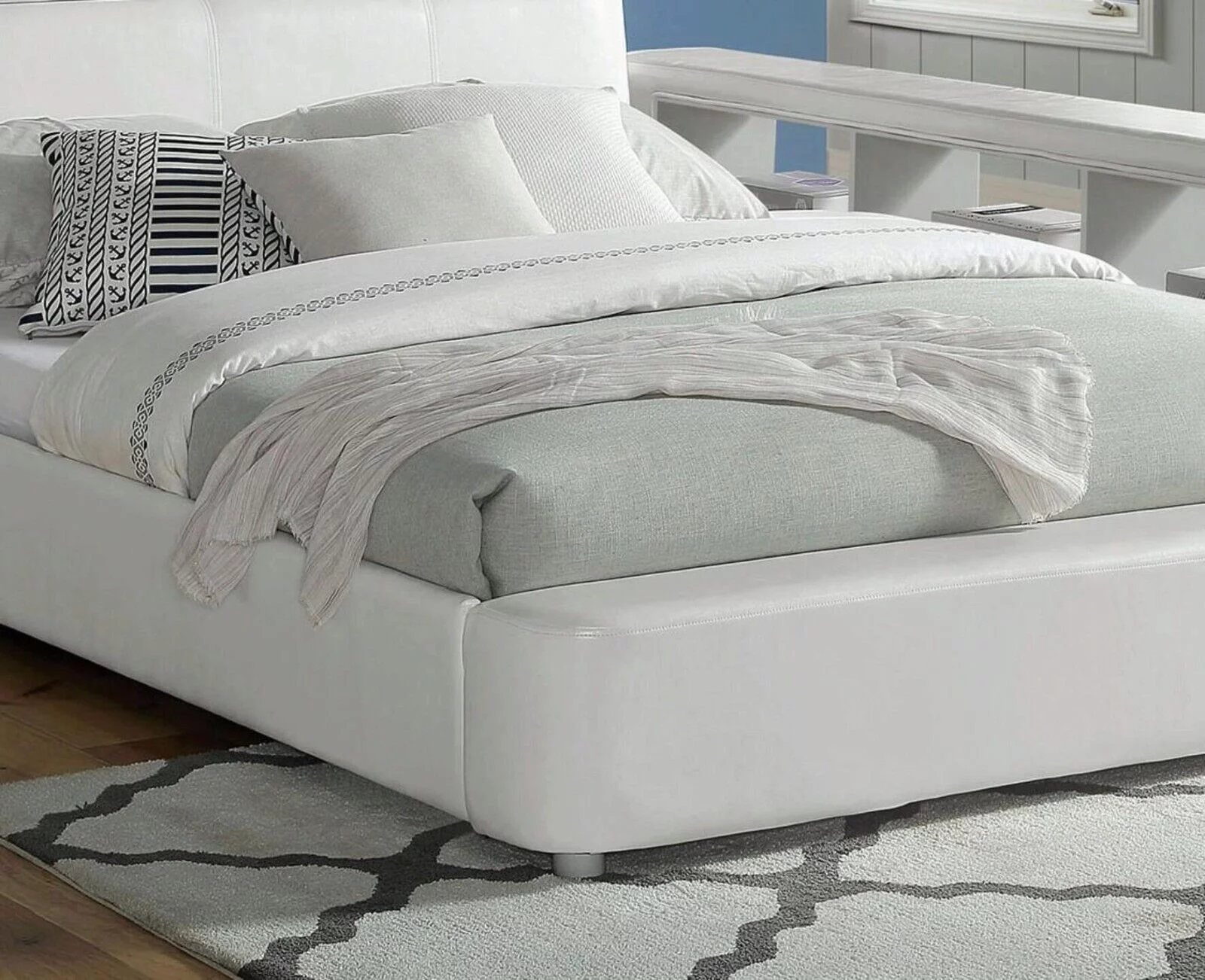 White Upholstered Bedroom 1pc Full Size Bed Modern Leatherette Beautiful Bed