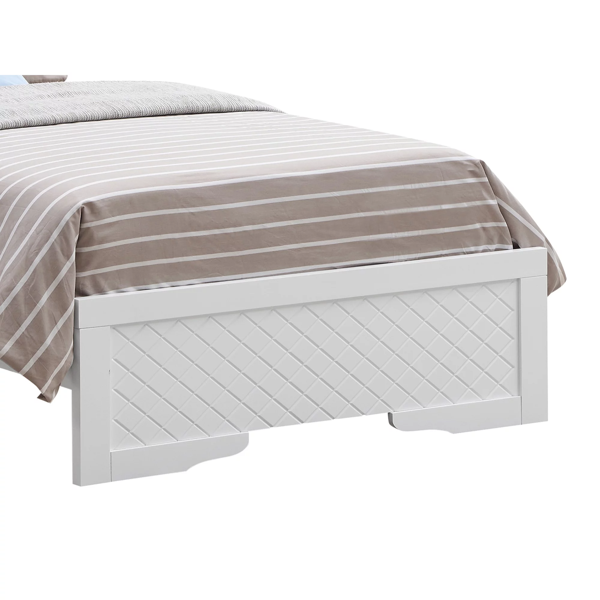 Koi Pine Wood Bed with Velvet Upholstered, V Channel Tufting, White - Queen Size