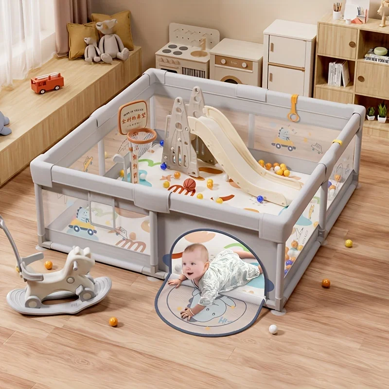 Play Yard, Playpen With Gate Indoor & Outdoor Activity Center With Anti-Slip Base, Christmas Halloween Gift