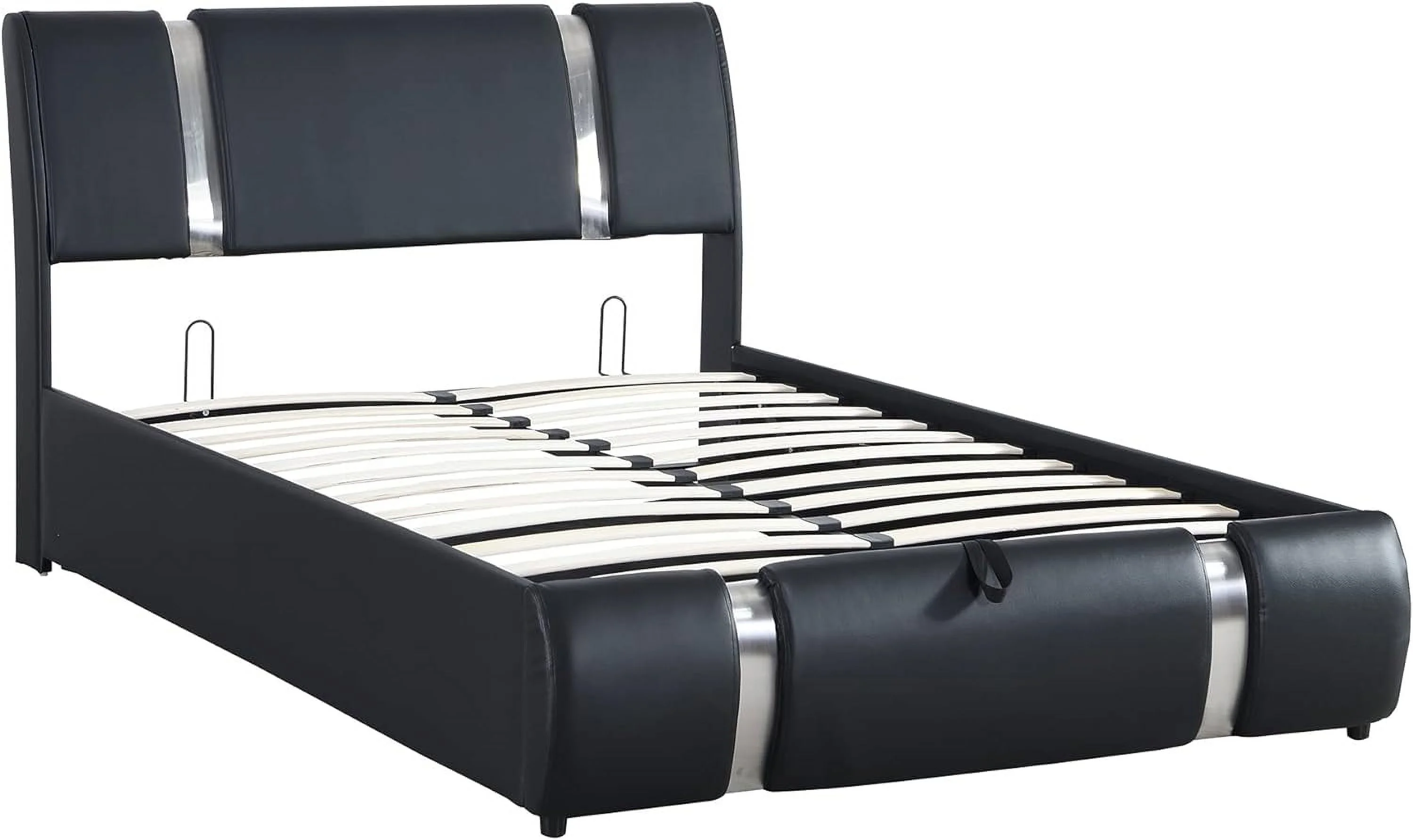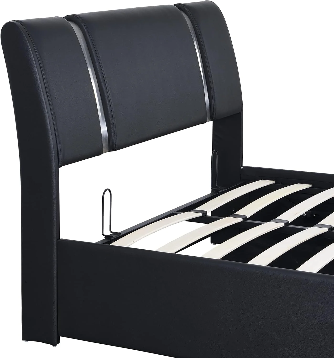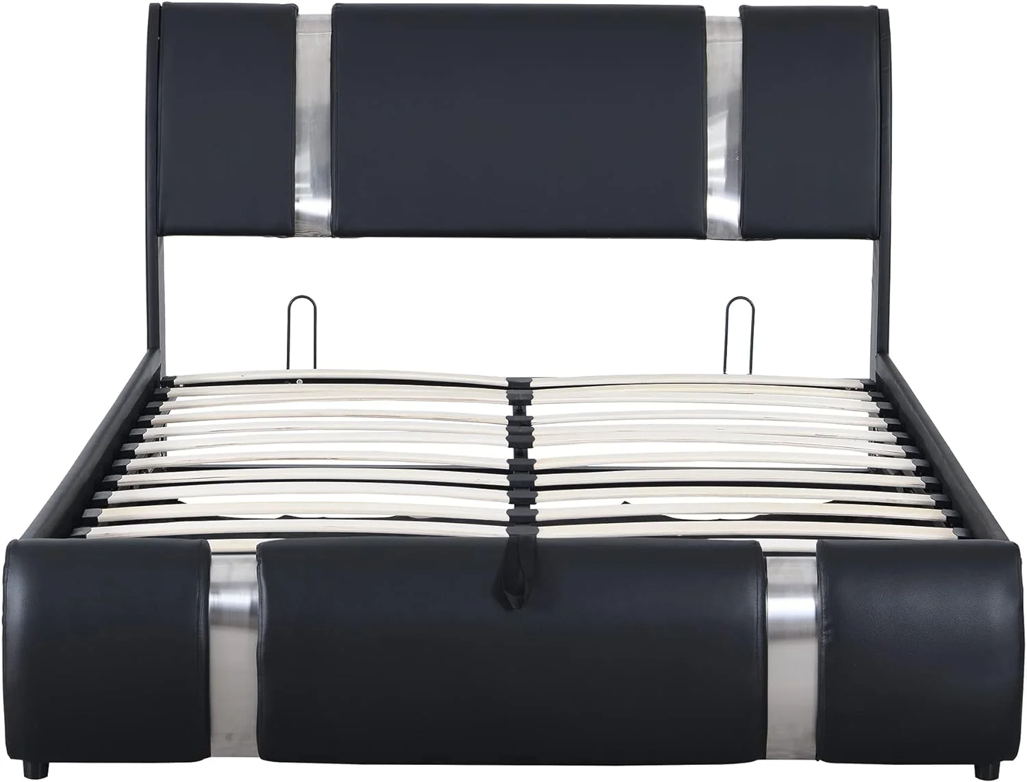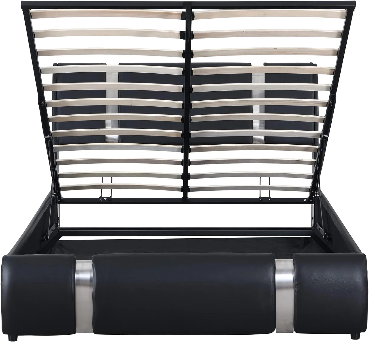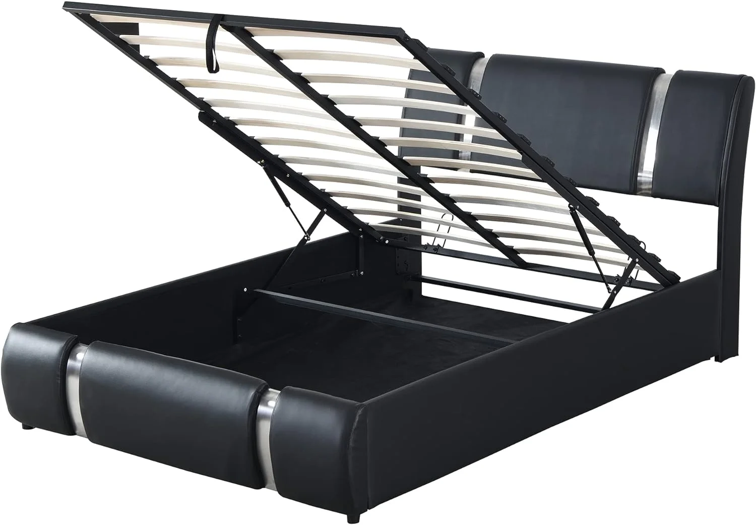 Acme Sawyer Storage Bed (LED) in Fabric & Metallic Gray, Multiple Bedsizes