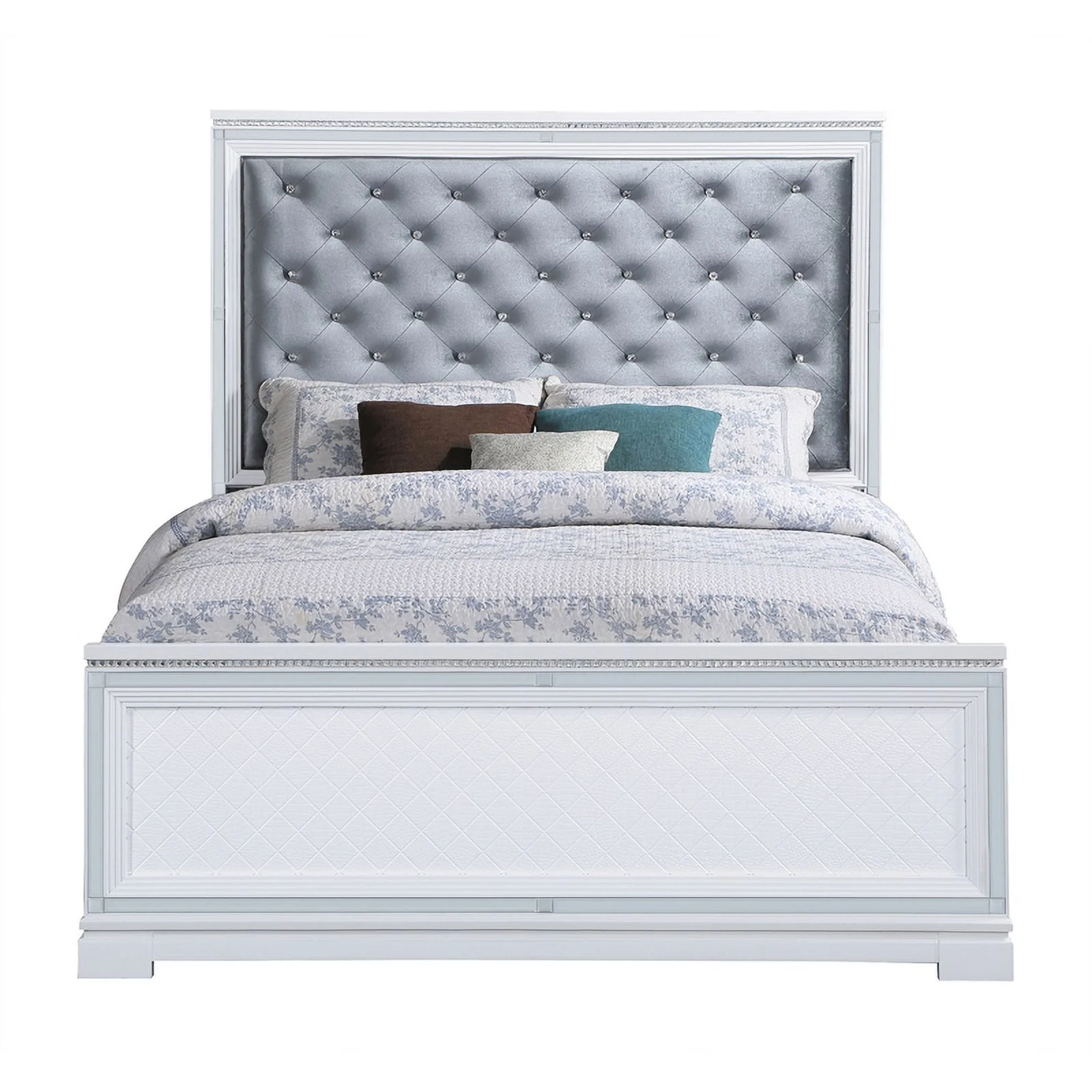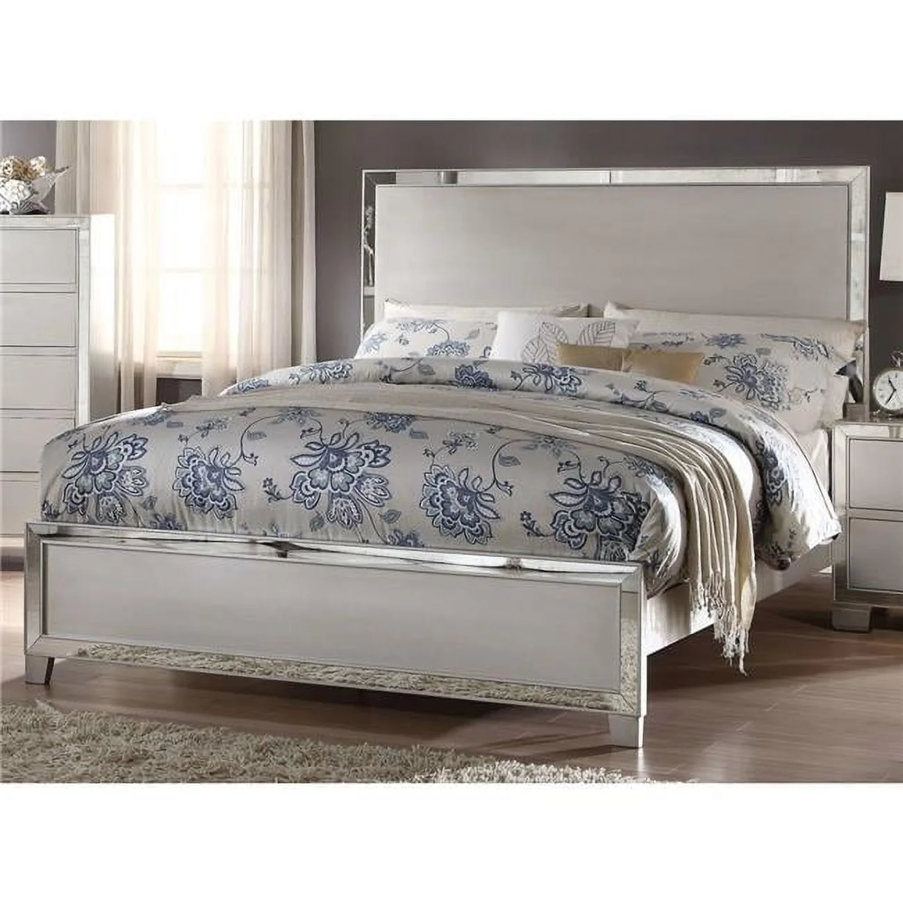 Maklaine Contemporary 63.5" x 86.5" Wood Queen Panel Bed in White/Silver