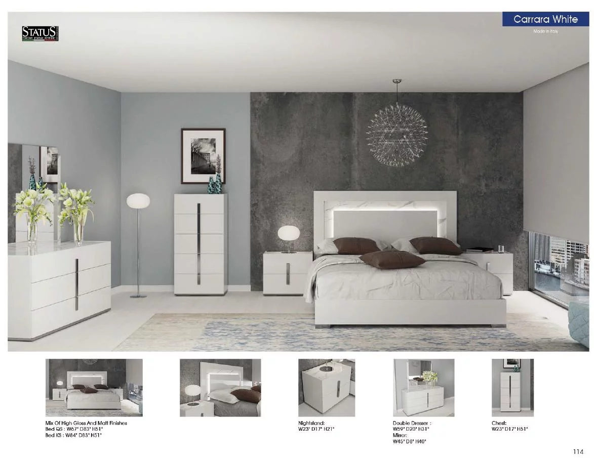 Glossy White King Bed Set 5 w/ LED Headboard CARRARA ESF Modern MADE IN ITALY