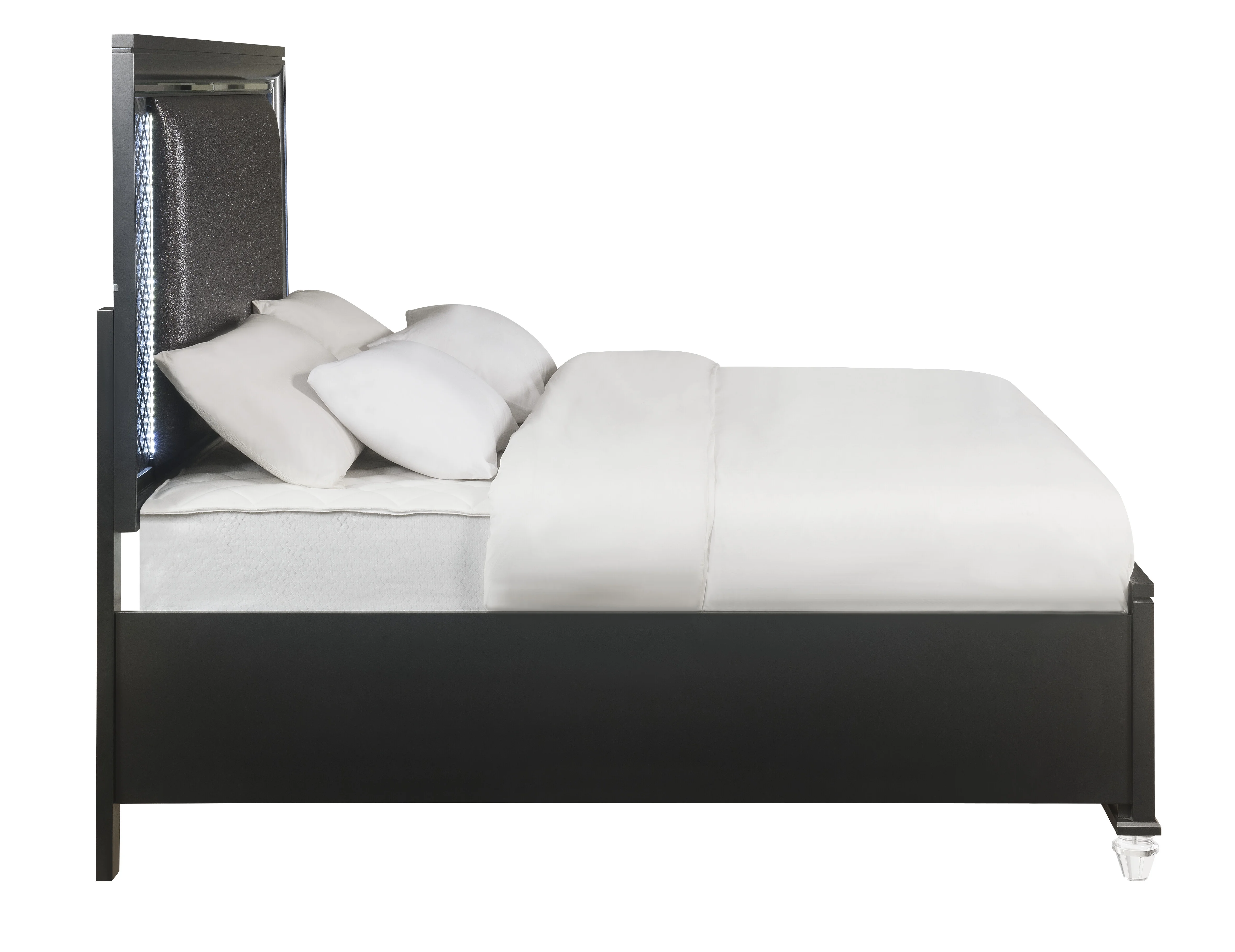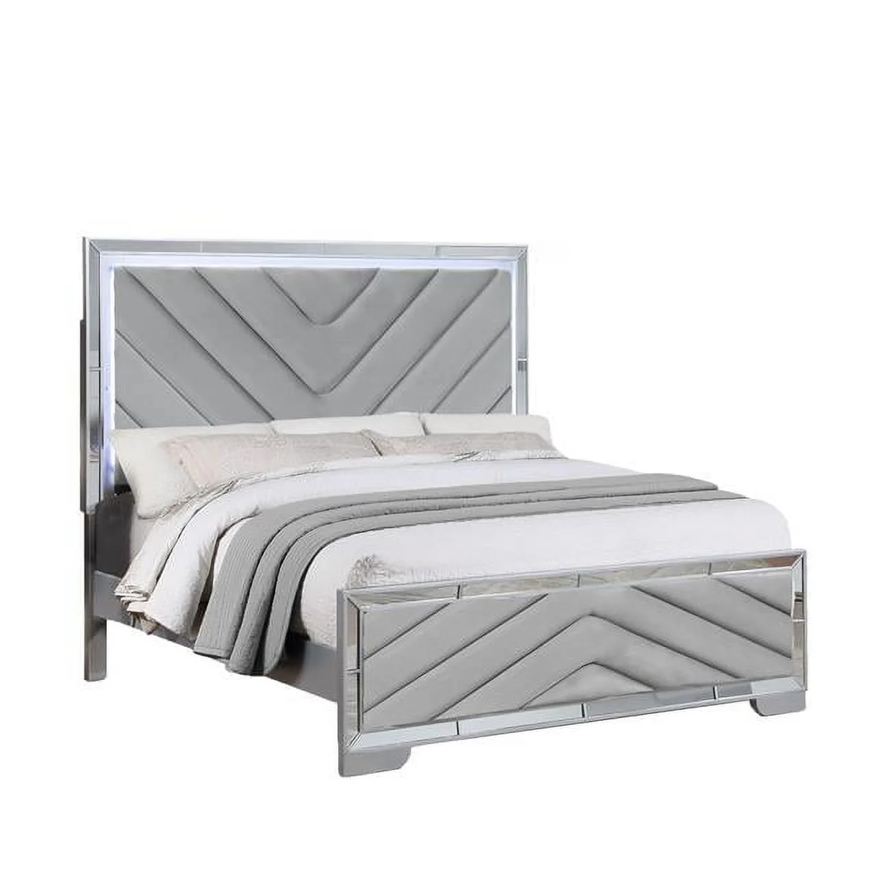 Glam Glossy Gray King Bed w/ LED Headboard CARRARA ESF Modern MADE IN ITALY