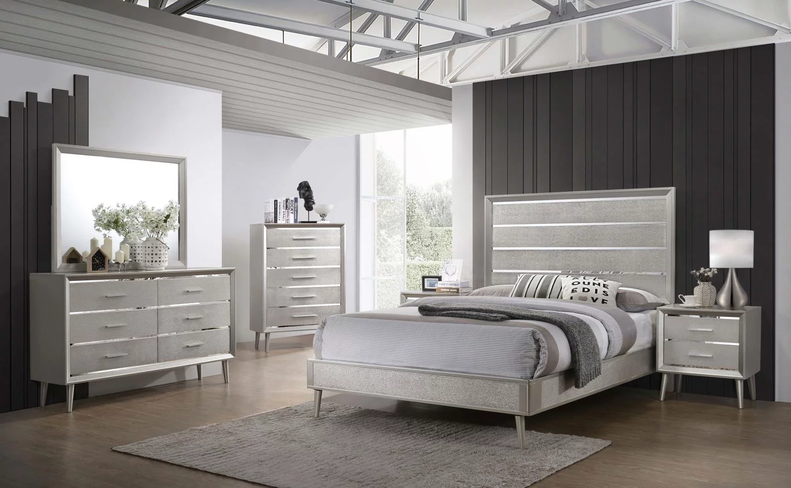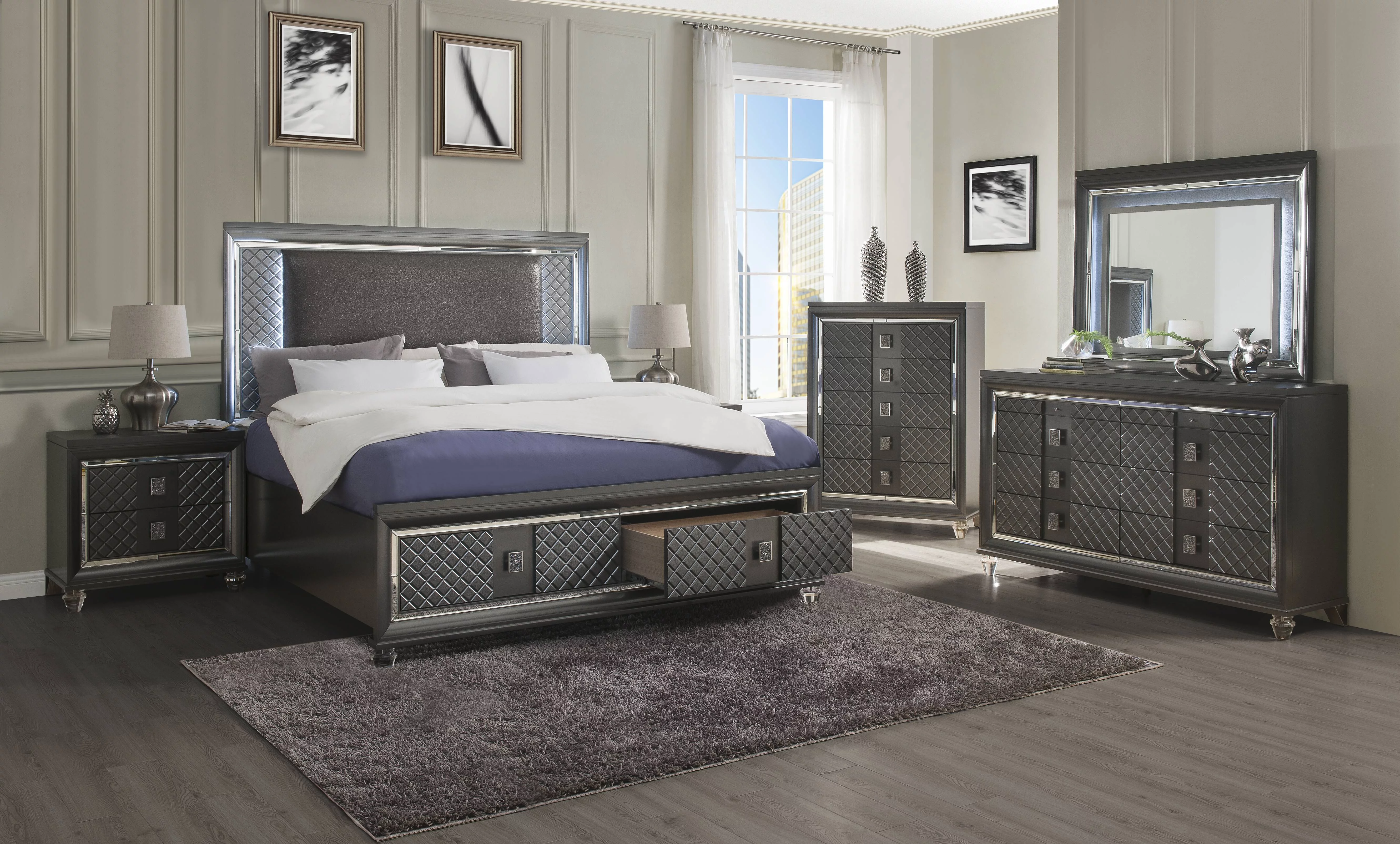 Glossy Gray King Bed Set 5Pcs w/ LED Headboard CARRARA ESF Modern MADE IN ITALY