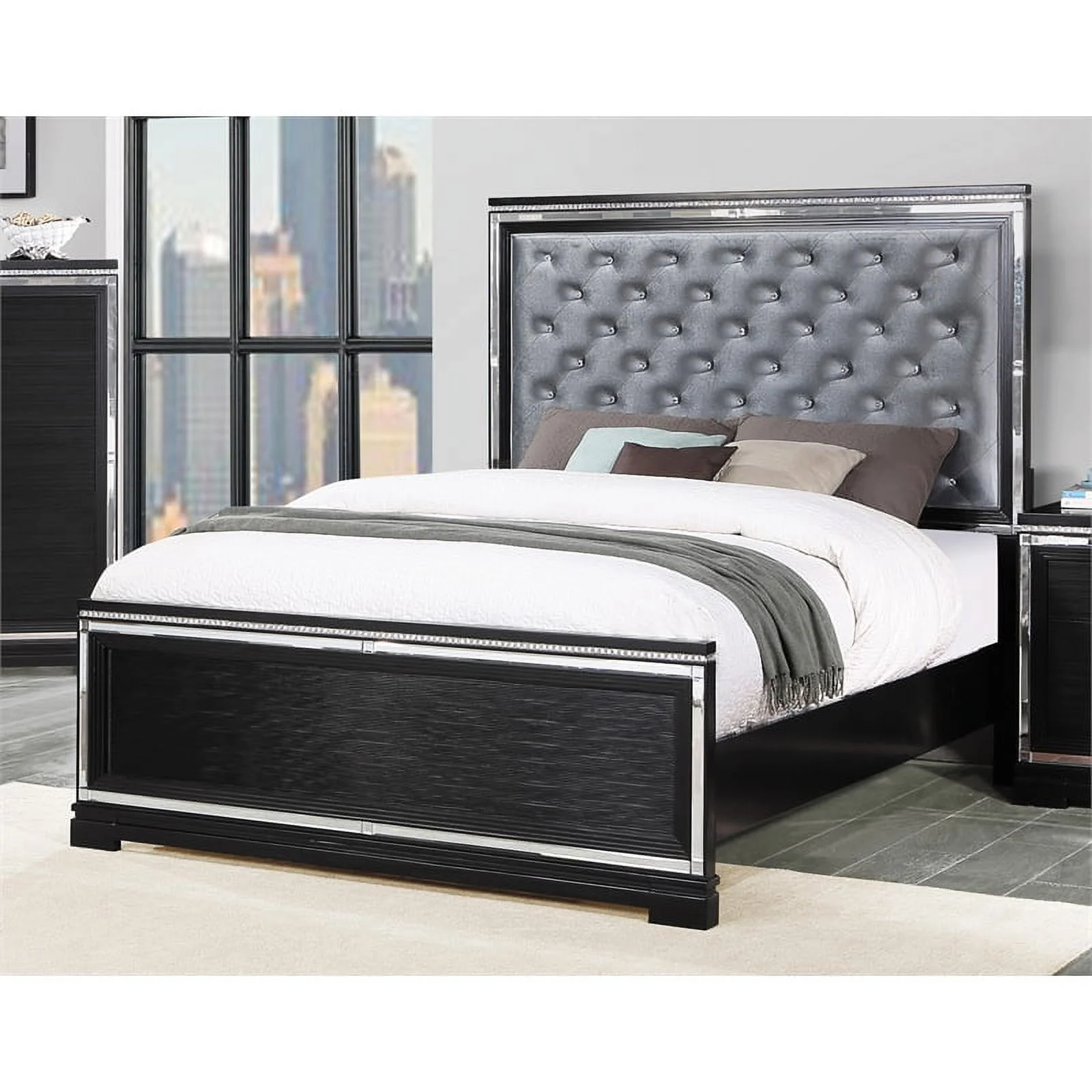 Queen Size Bed 1pc Bedroom Furniture Black Color Velvet Button Tufted Upholster