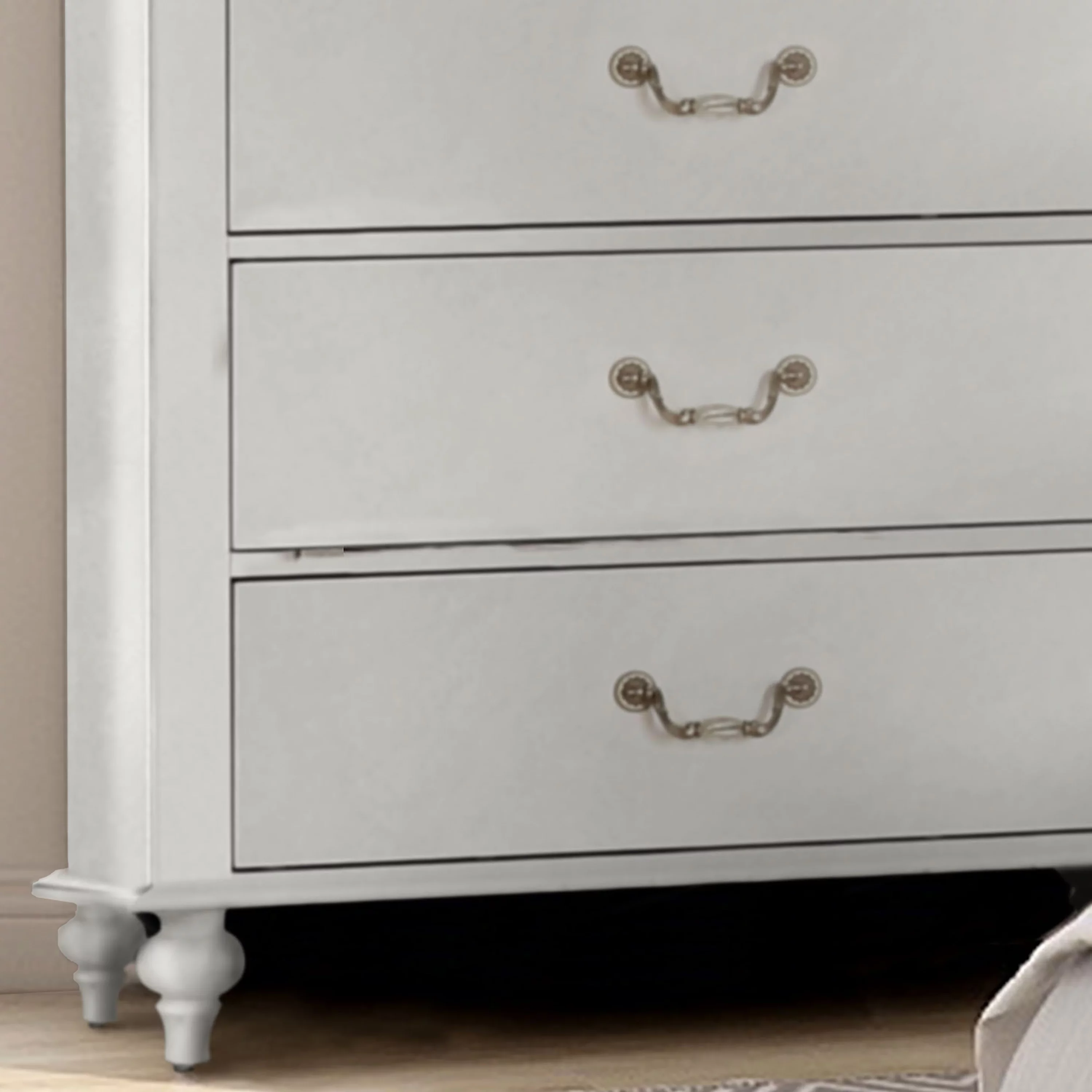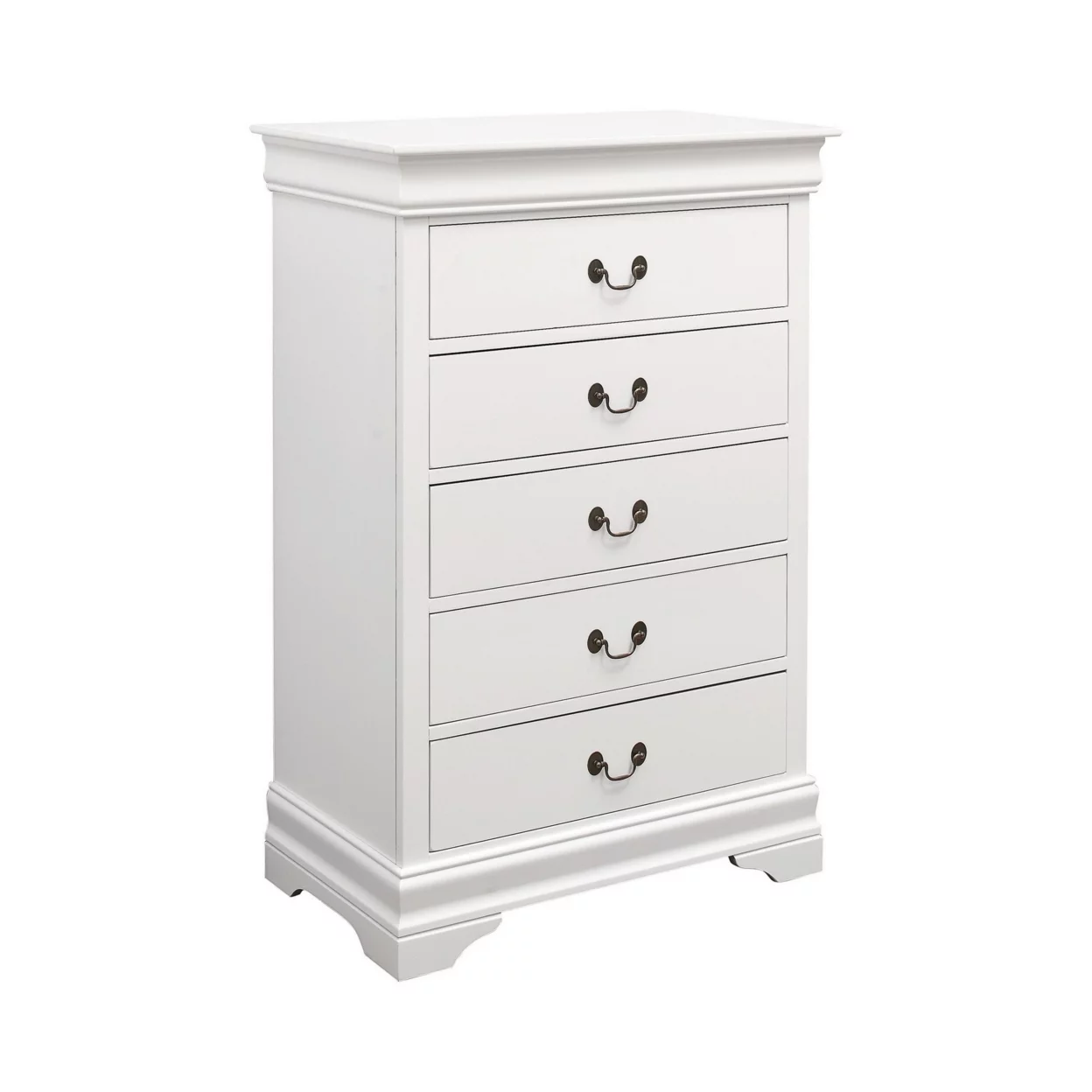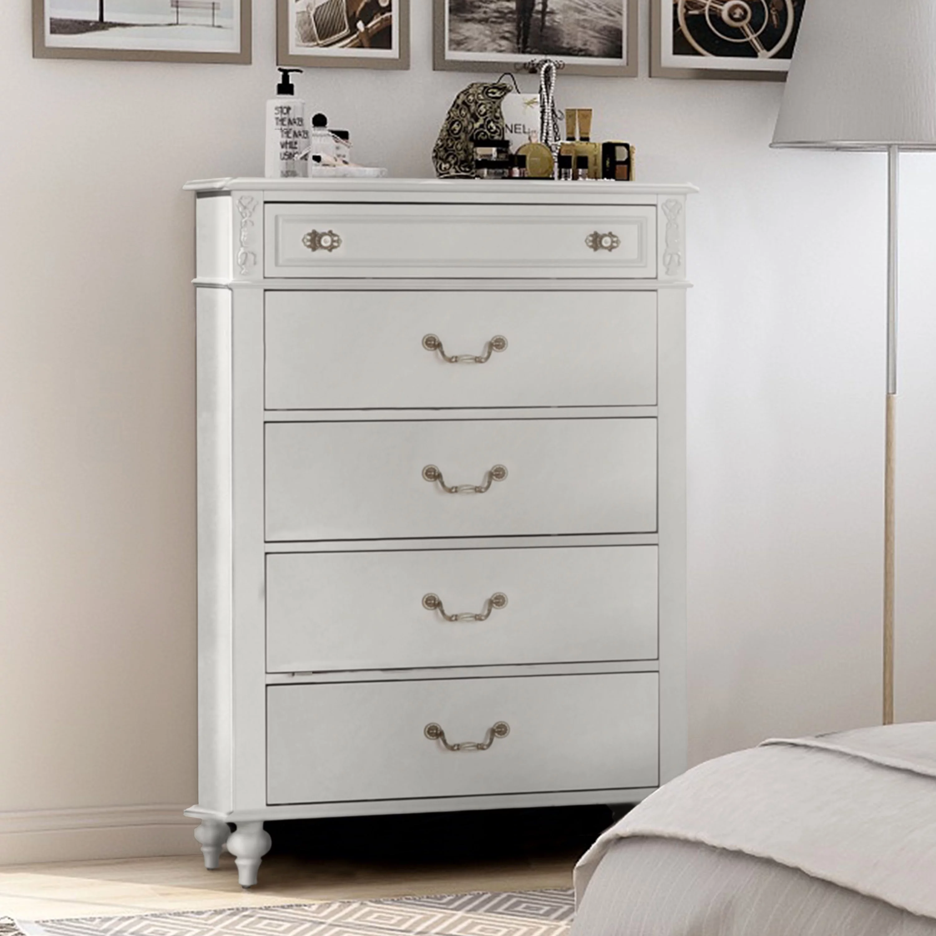 Nim 48 Inch Tall 5 Drawer Dresser Chest Brass Bail Handles Classic White- Saltoro Sherpi