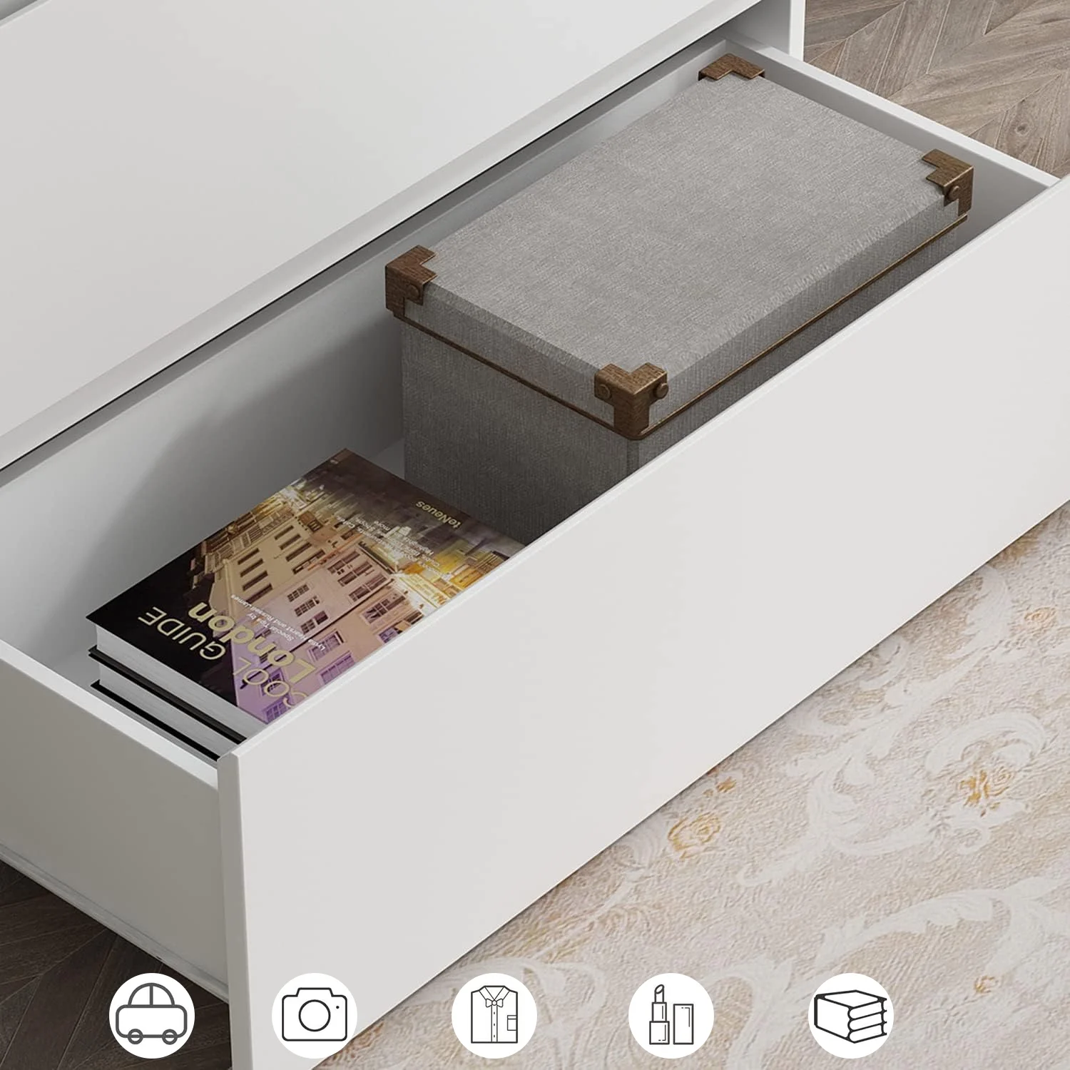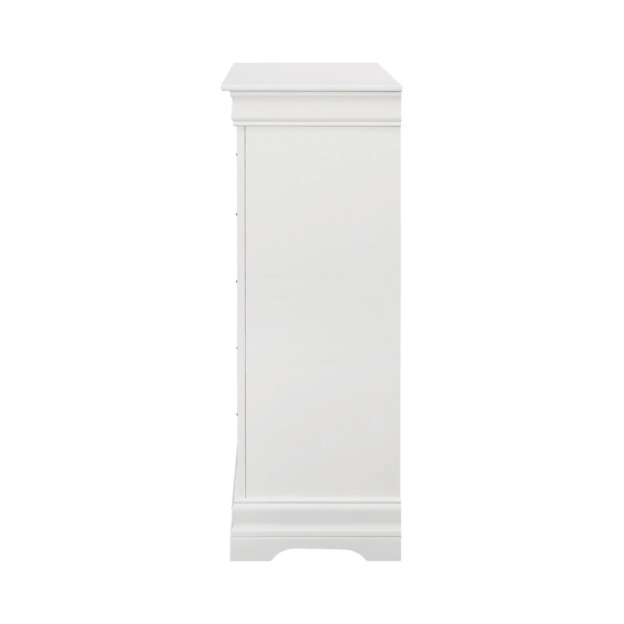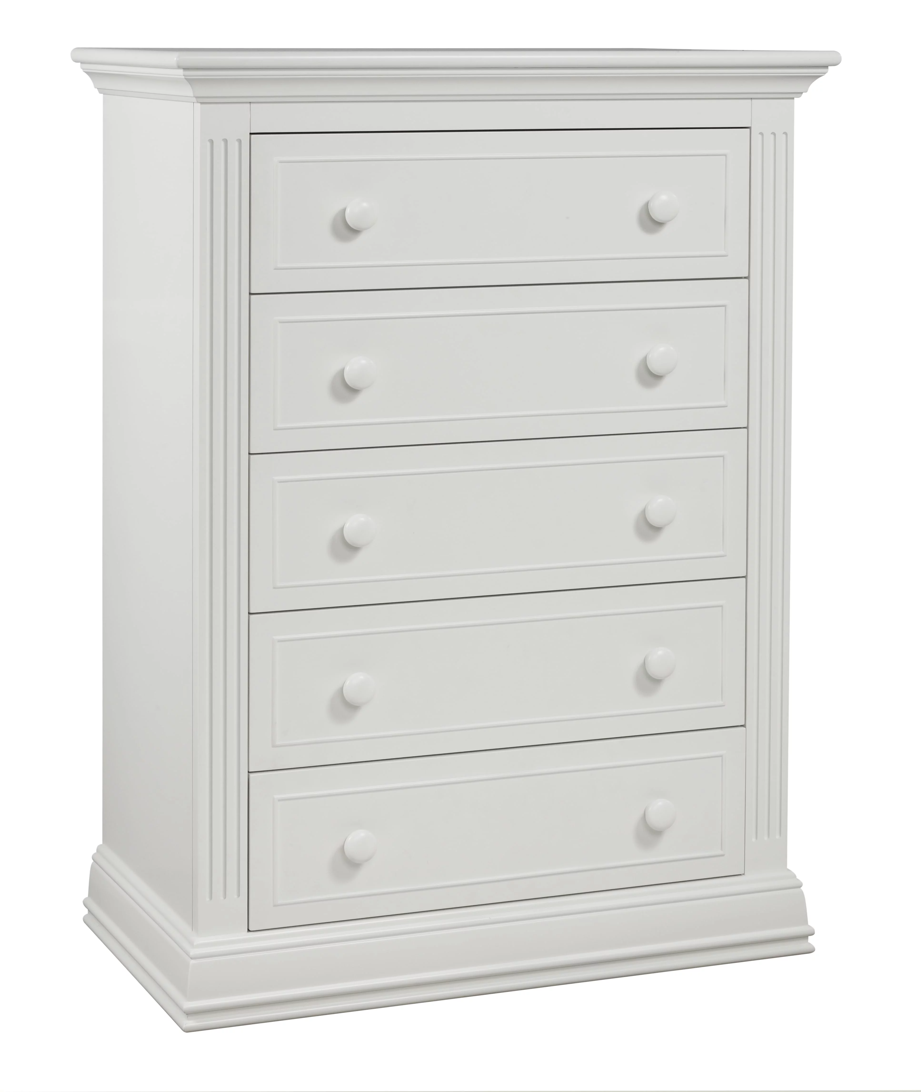 Nim 48 Inch Tall 5 Drawer Dresser Chest Brass Bail Handles Classic White- Saltoro Sherpi