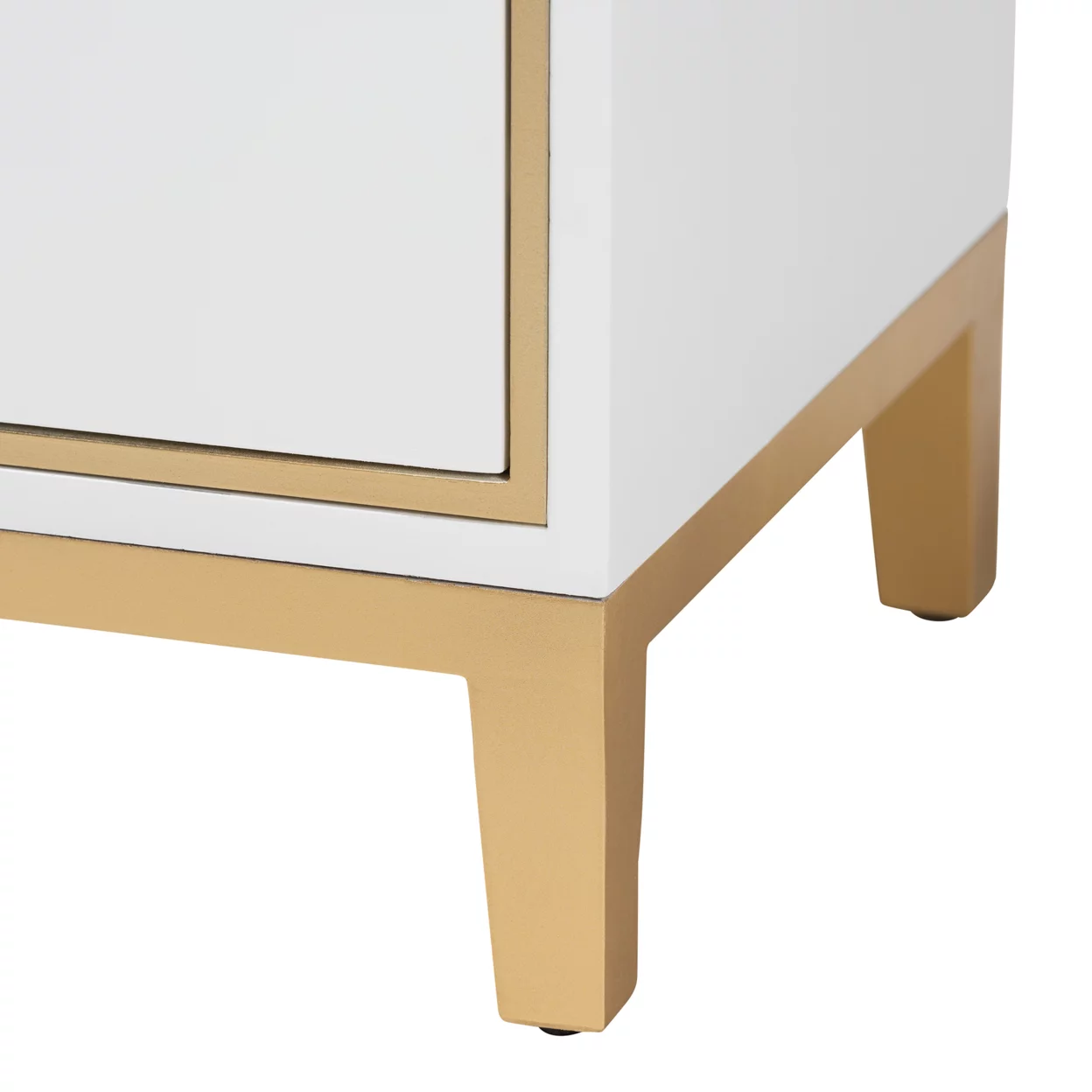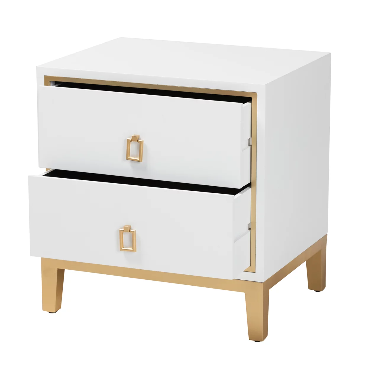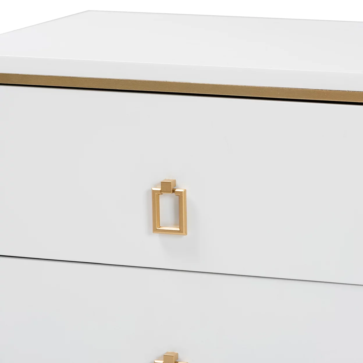 Baxton Studio Donald Modern Glam and Luxe White Finished Wood and Gold Metal 2-Drawer End Table