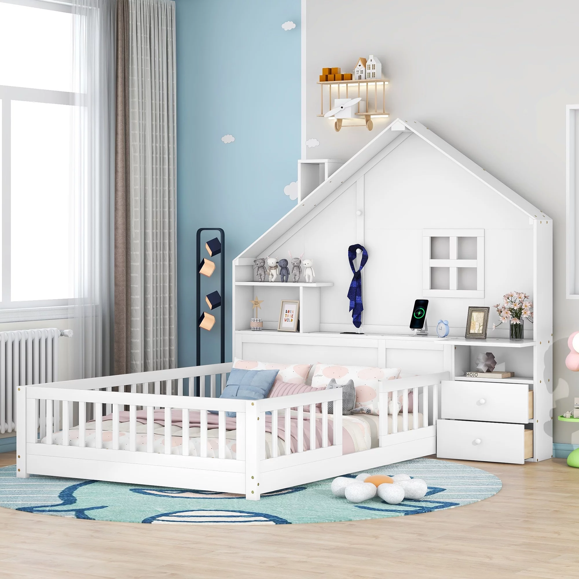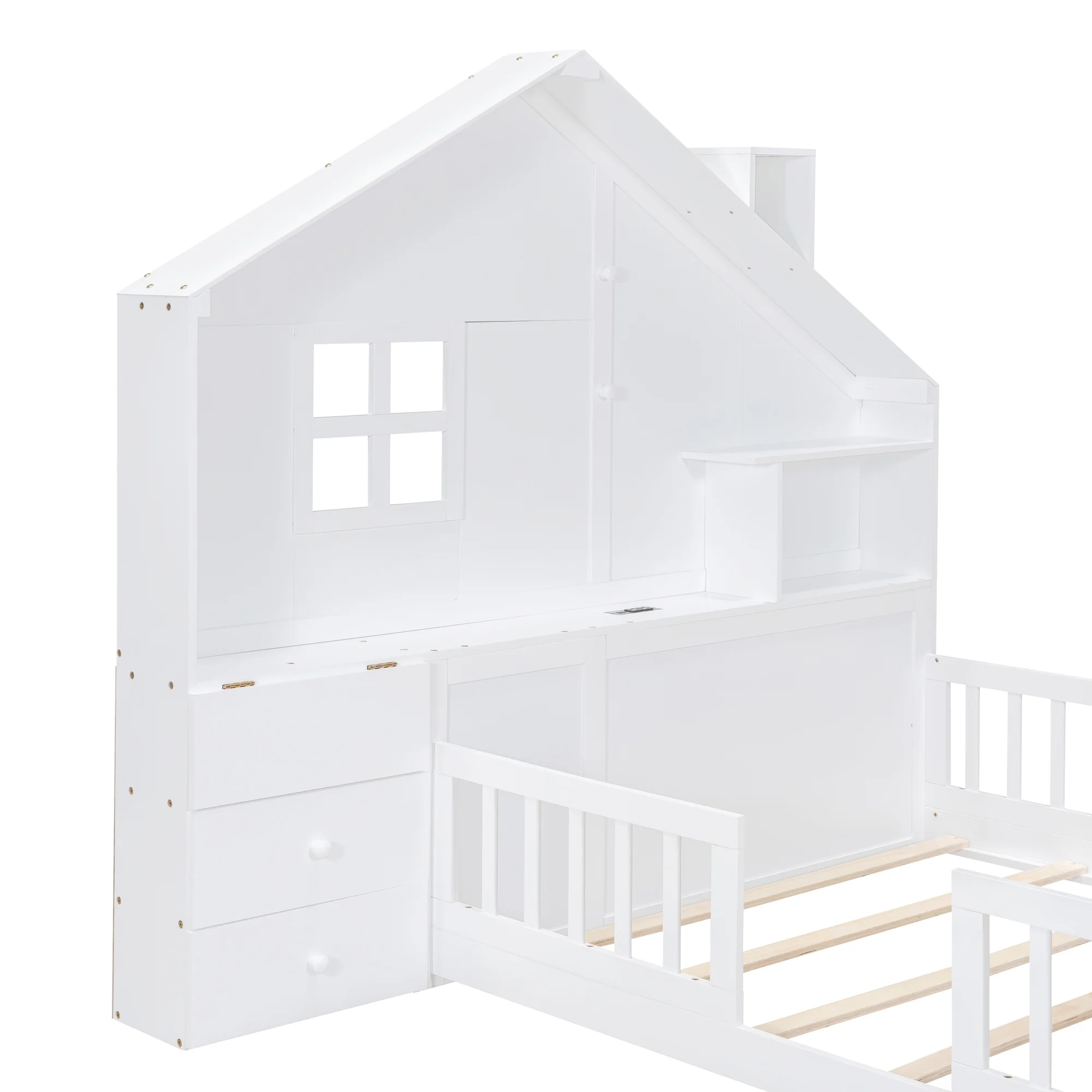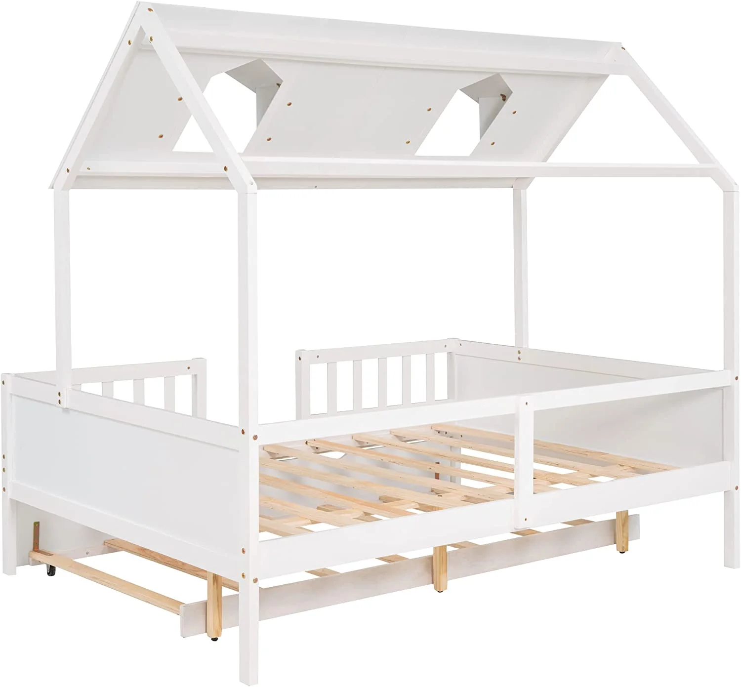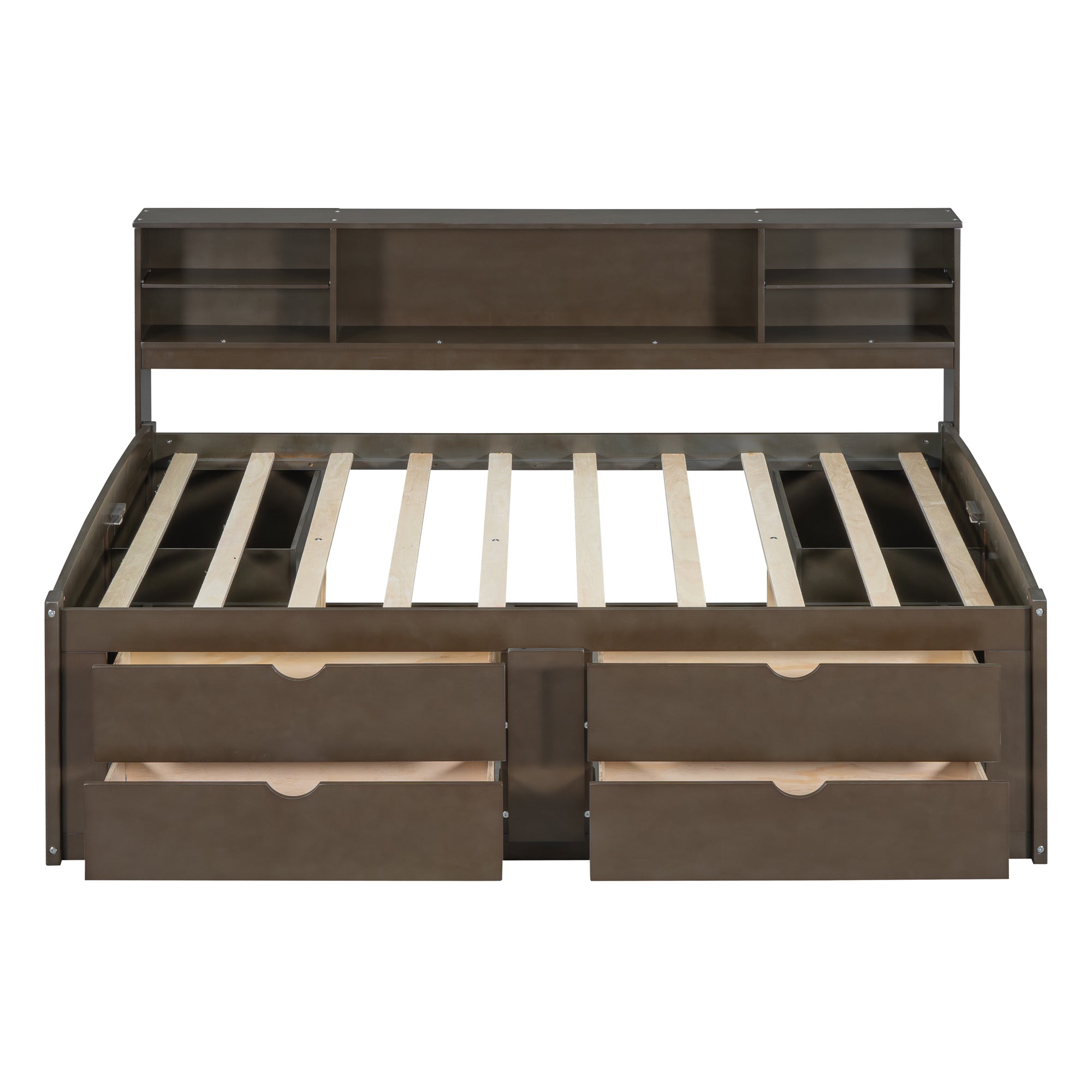 Noch Full Size Wooden Daybed with 2 Bedside Cabinets 4 Drawers - Browithn