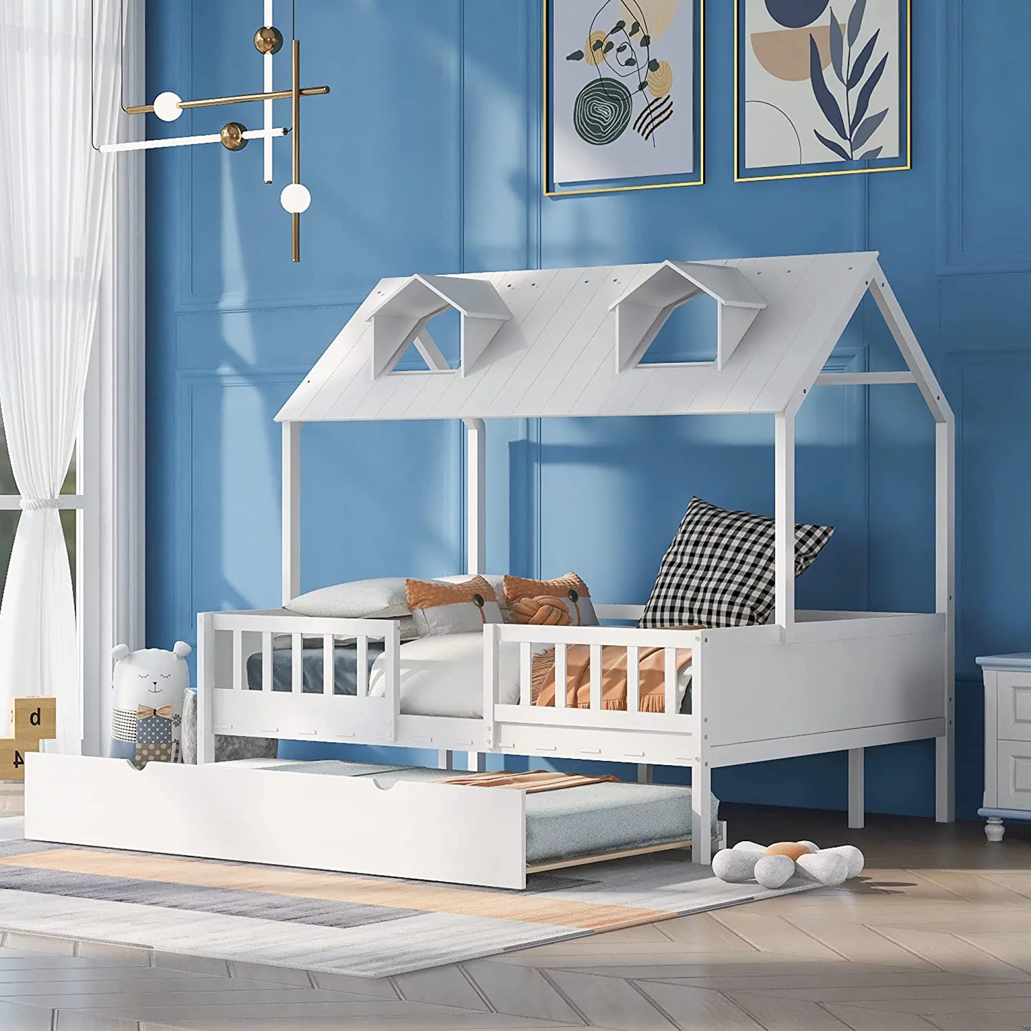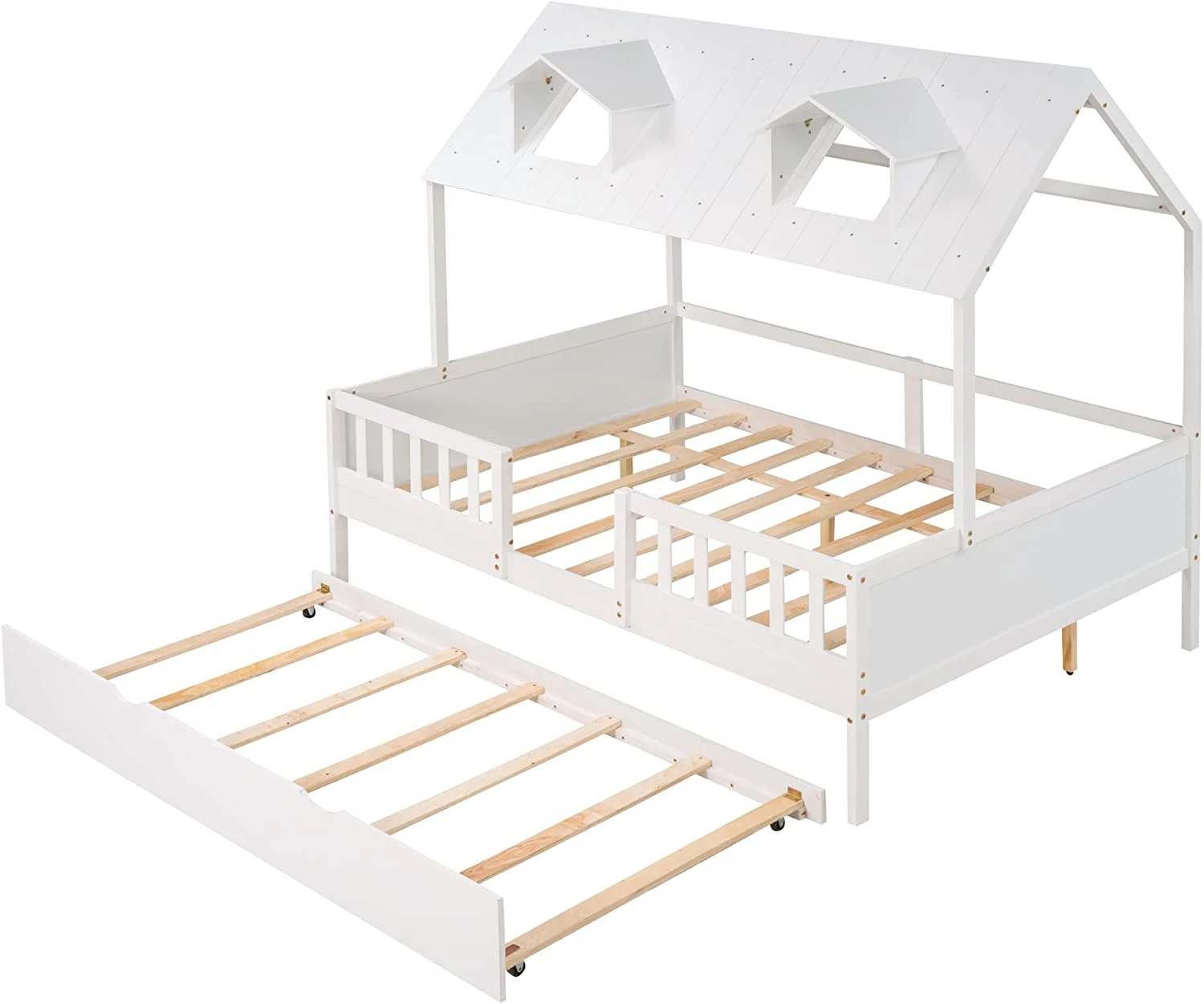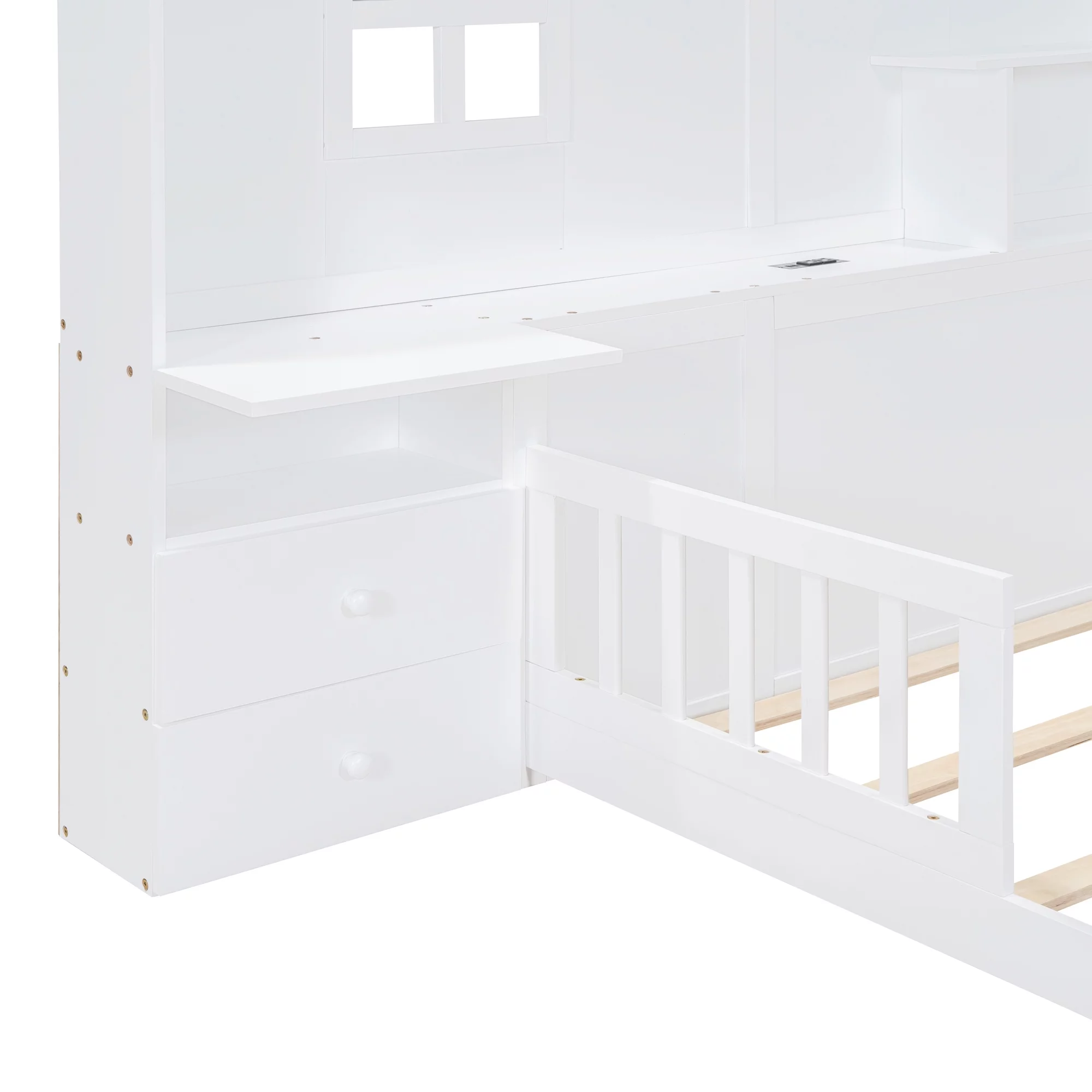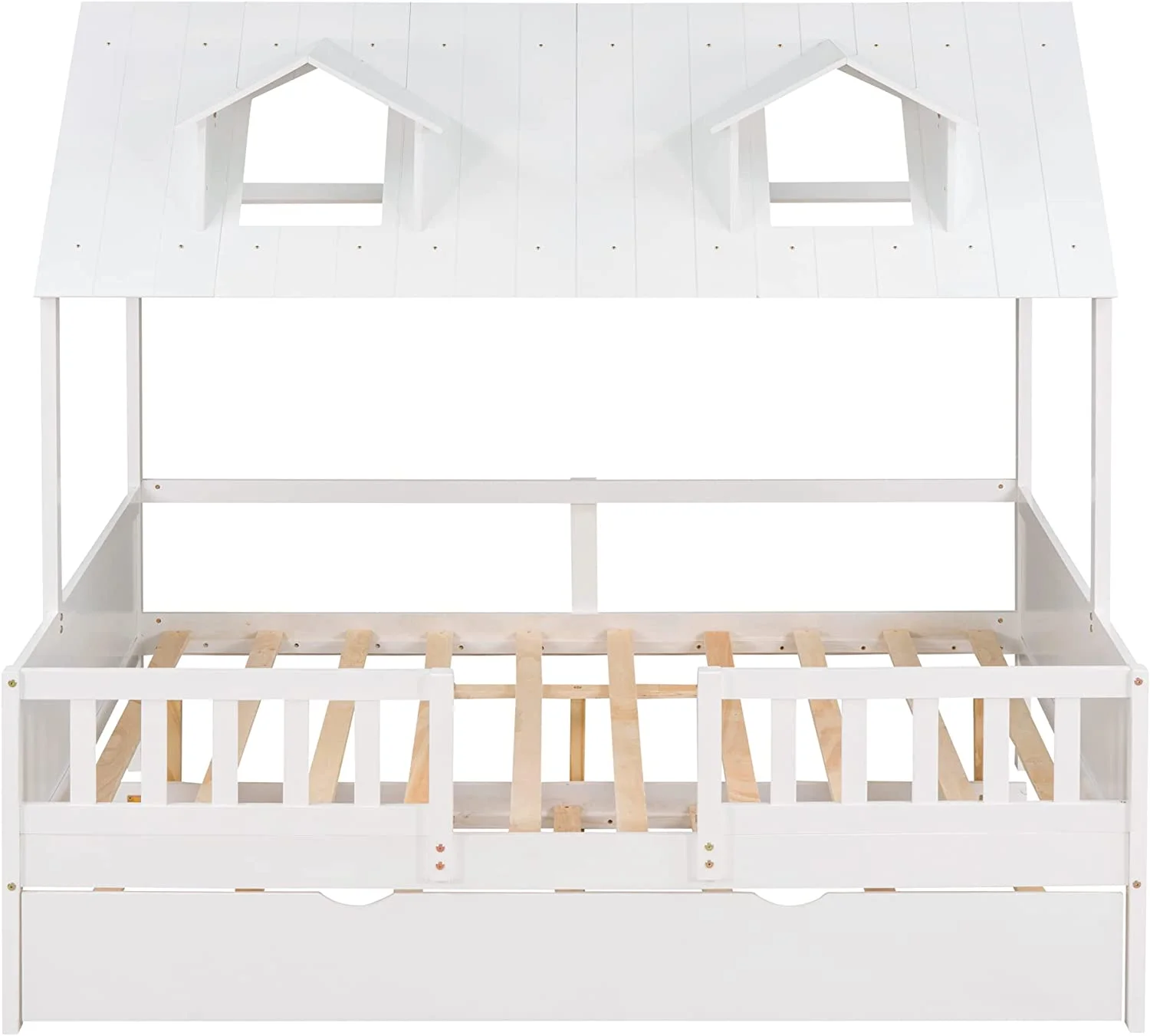 Noch Full Size Wooden Daybed with 2 Bedside Cabinets 4 Drawers - Browithn
