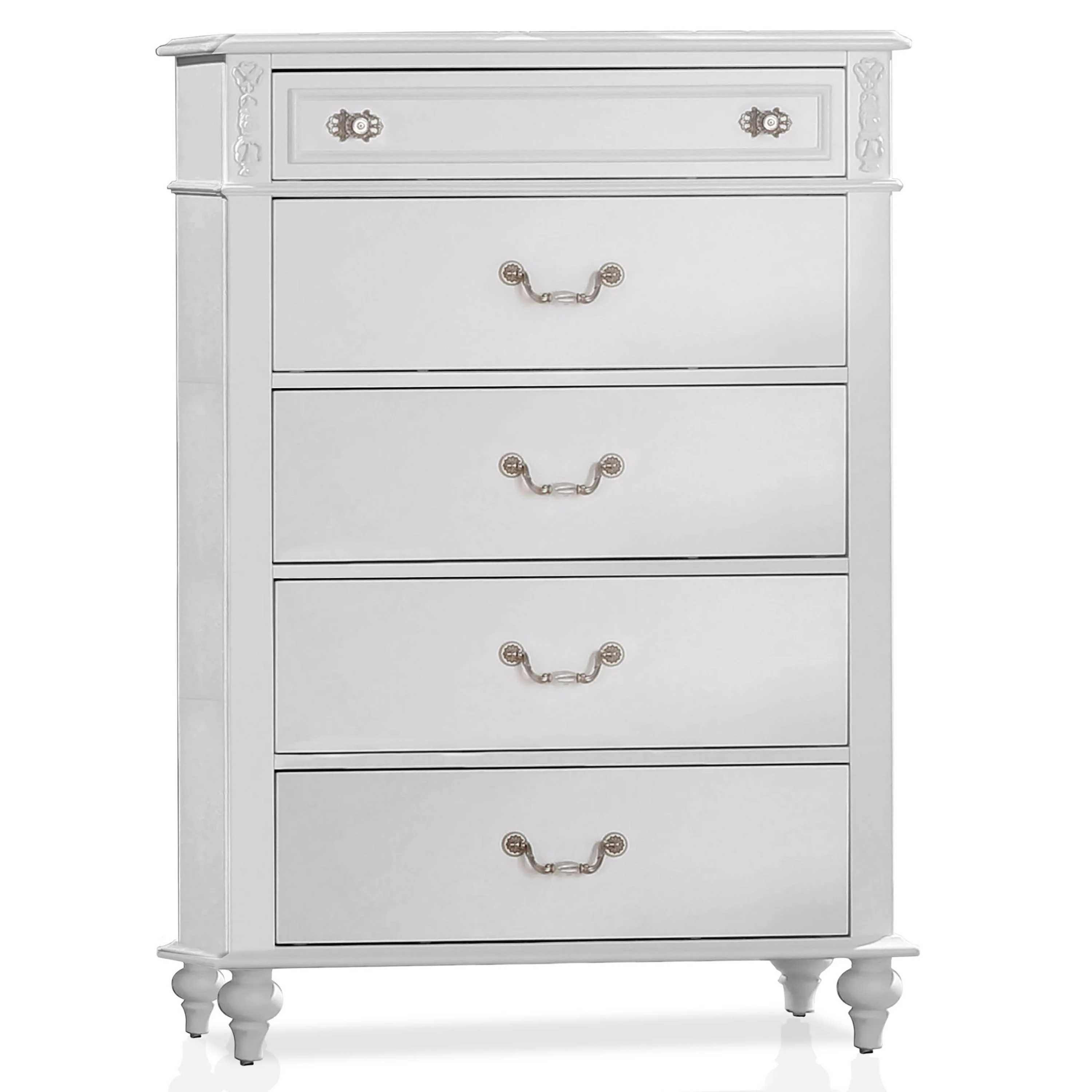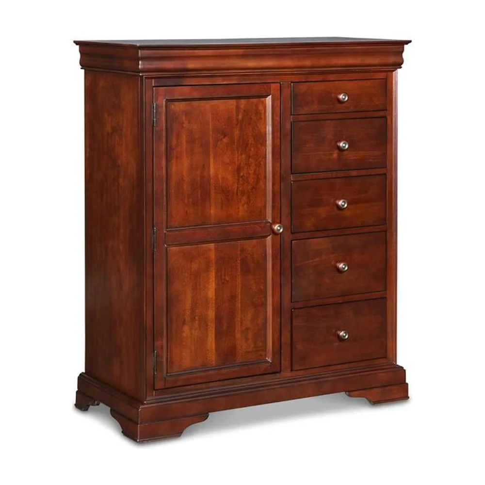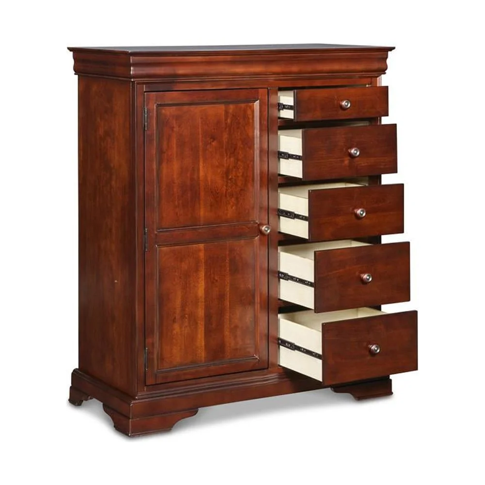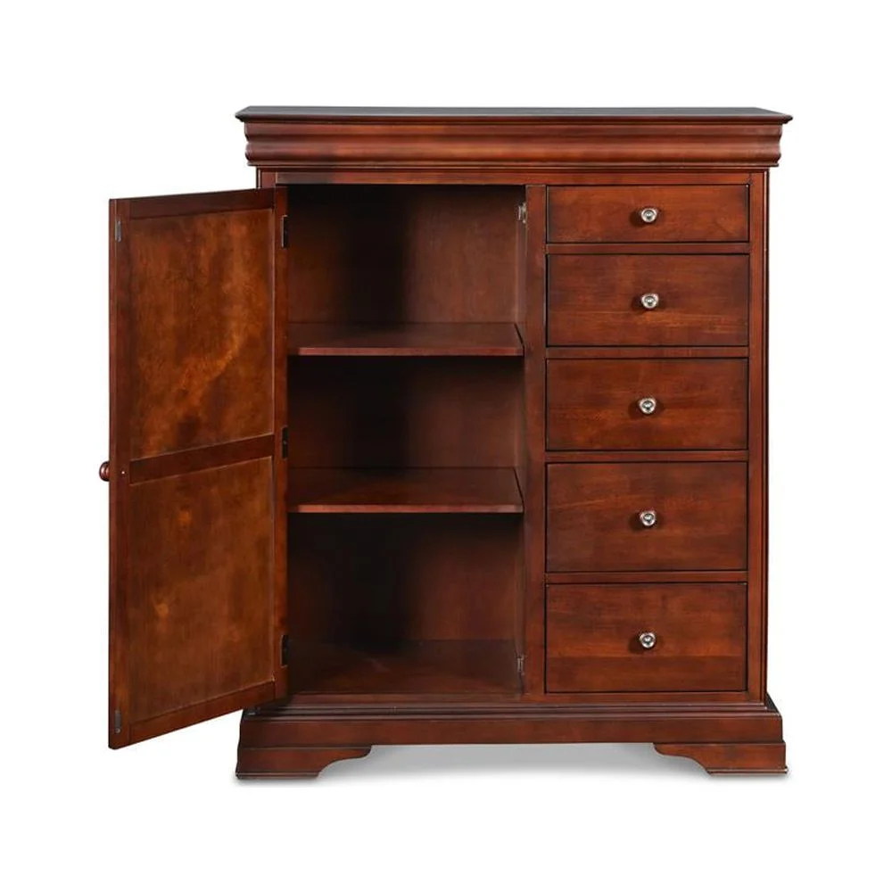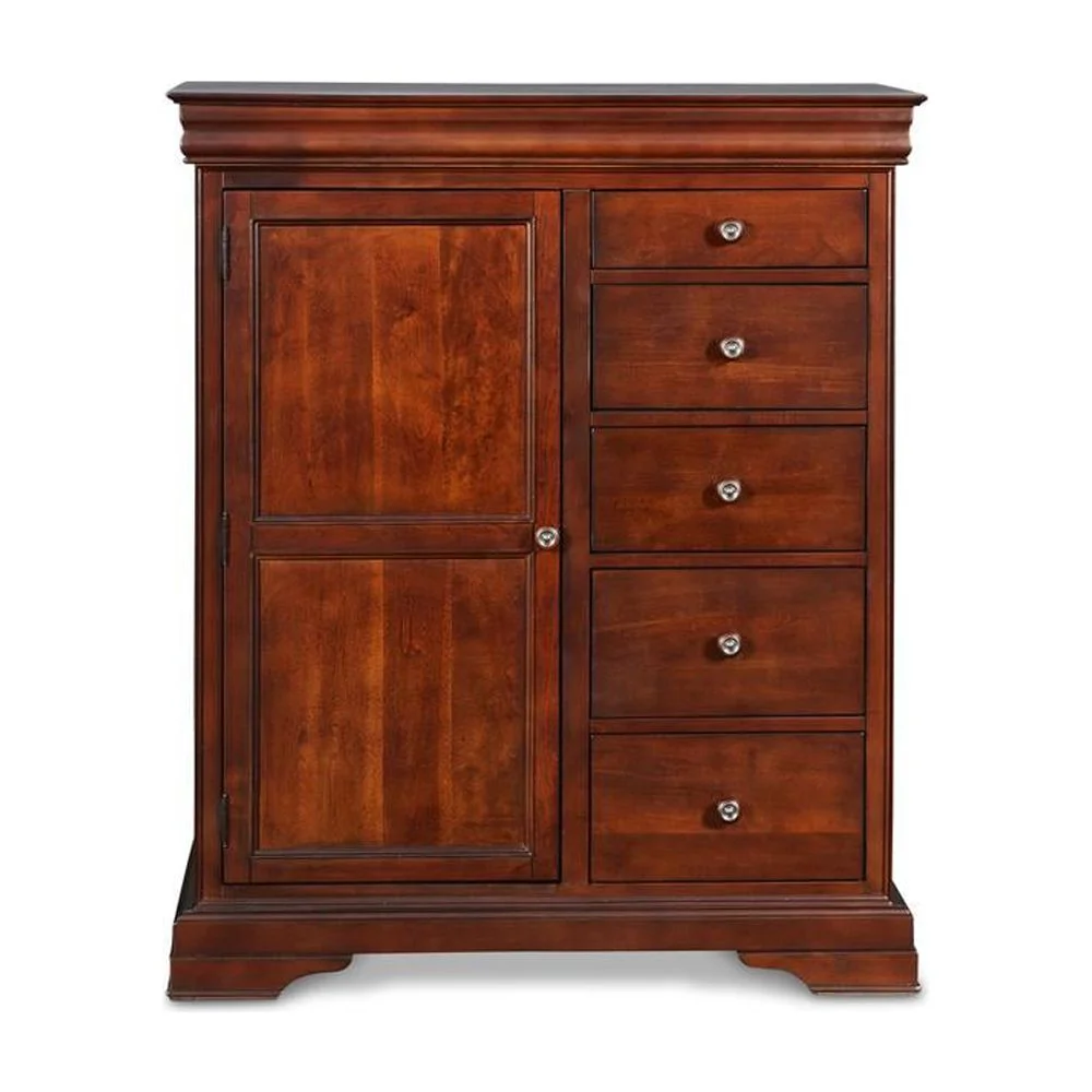 New Classic Furniture Versailles Solid Wood 5-Drawer Door Chest in Bordeaux Cherry