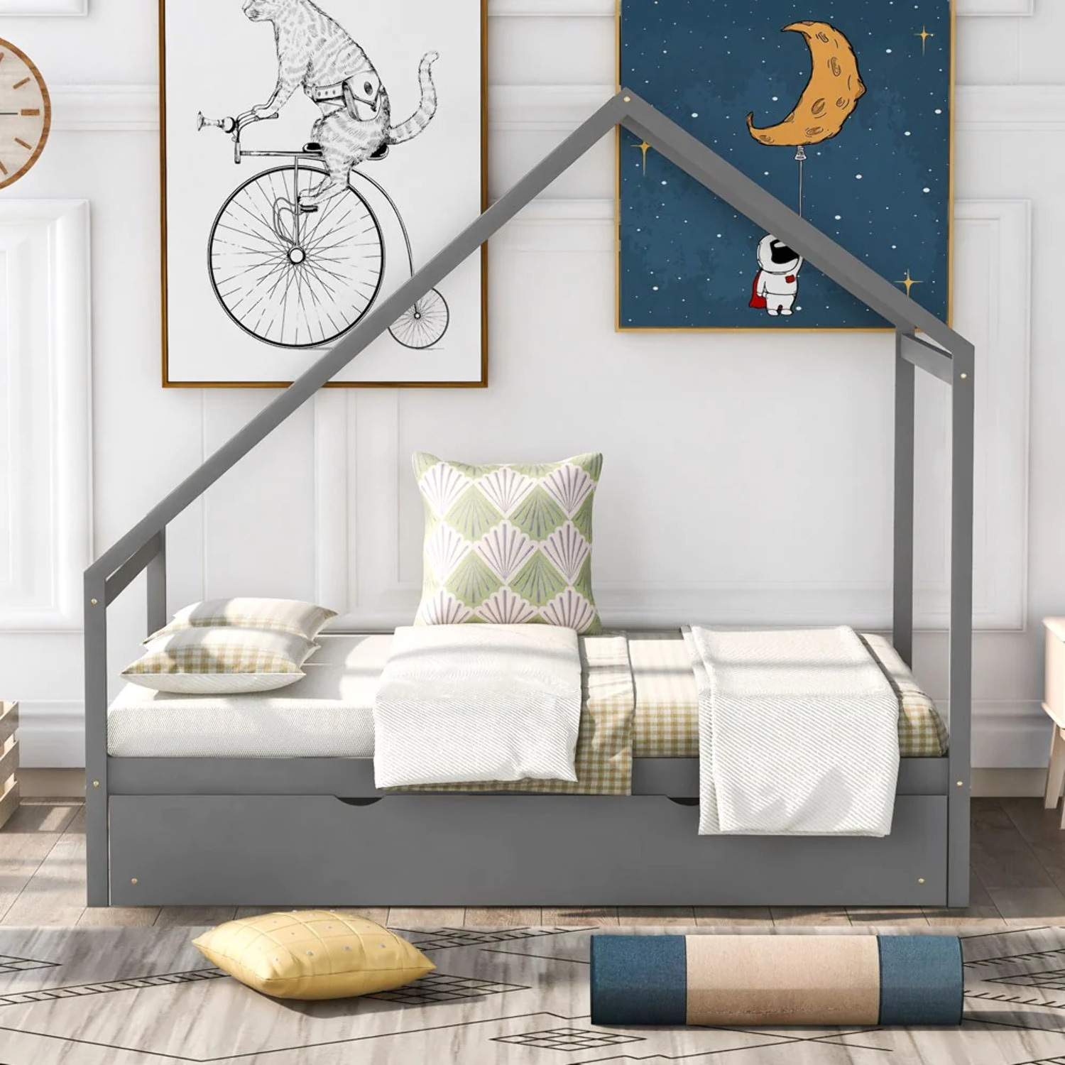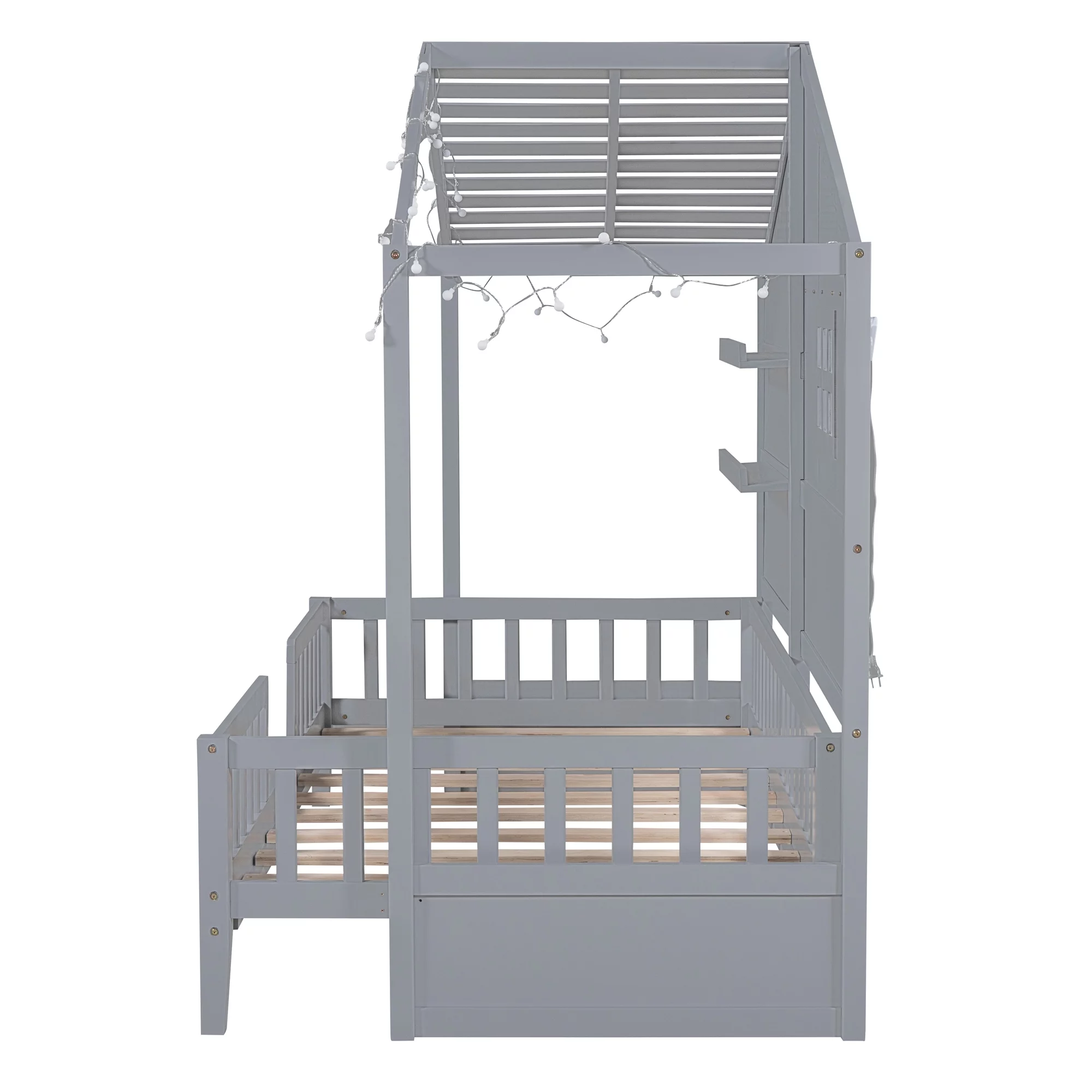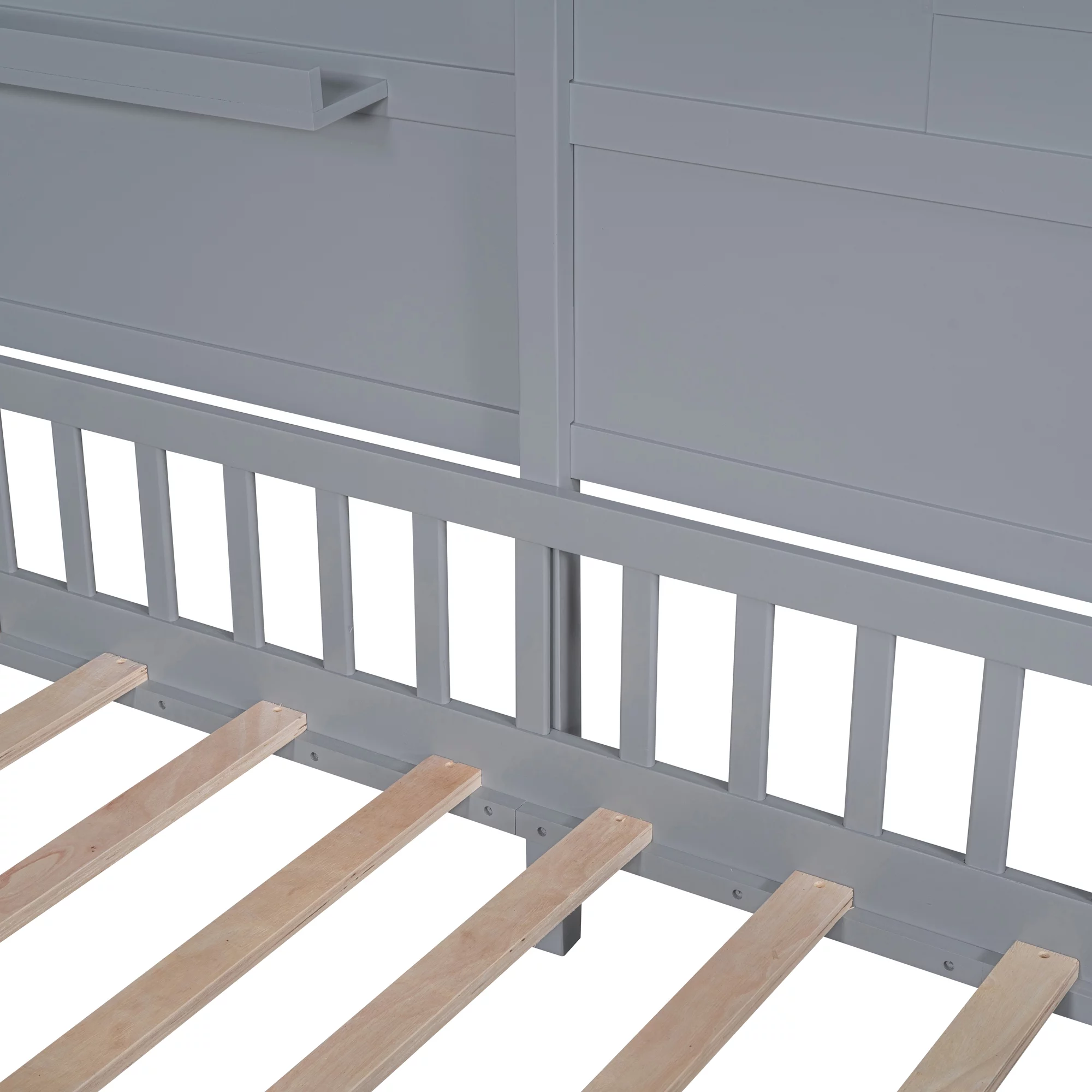 Noch Full Size Wooden Daybed with 2 Bedside Cabinets 4 Drawers - Gray