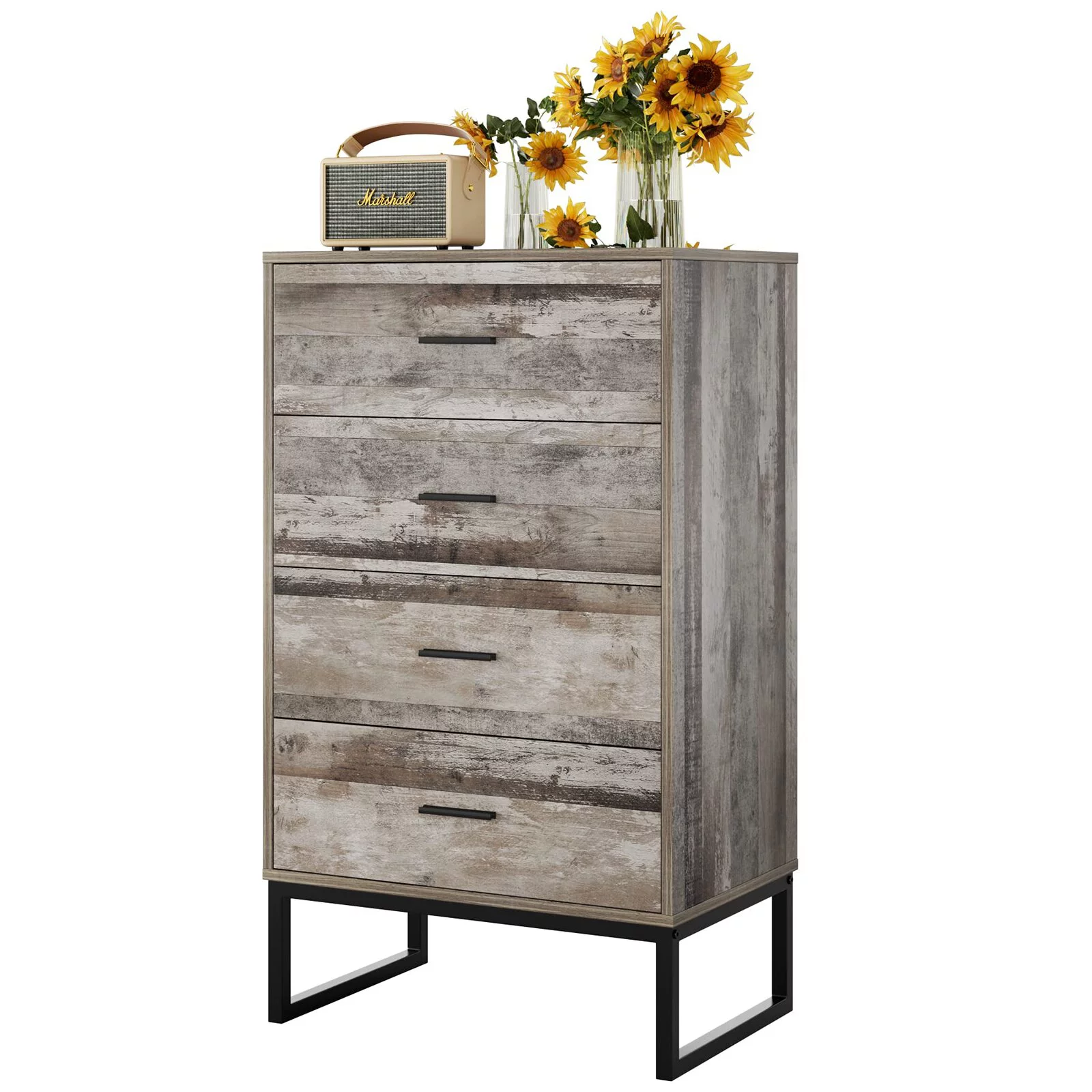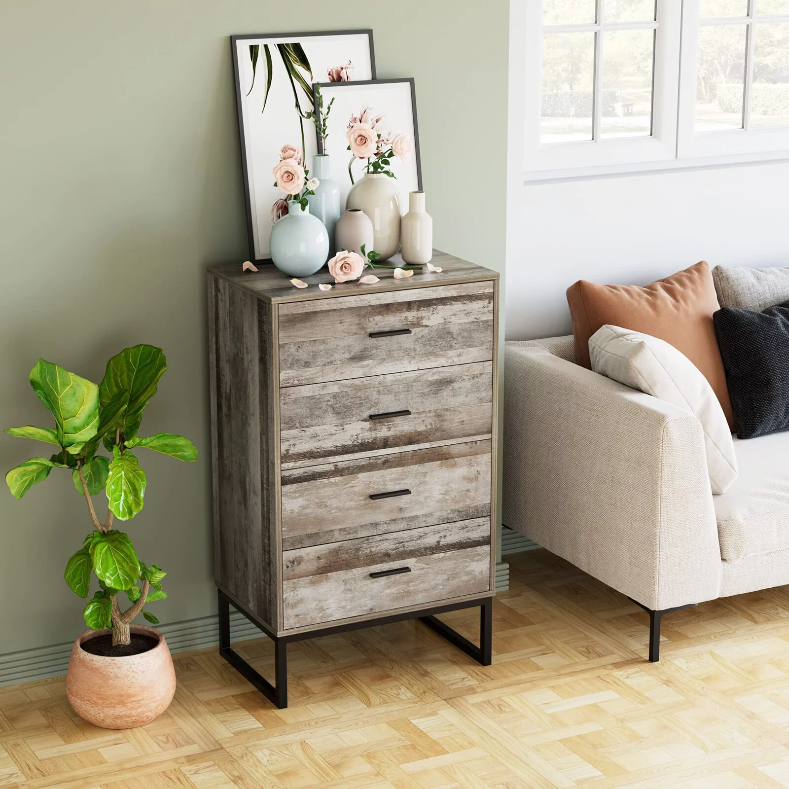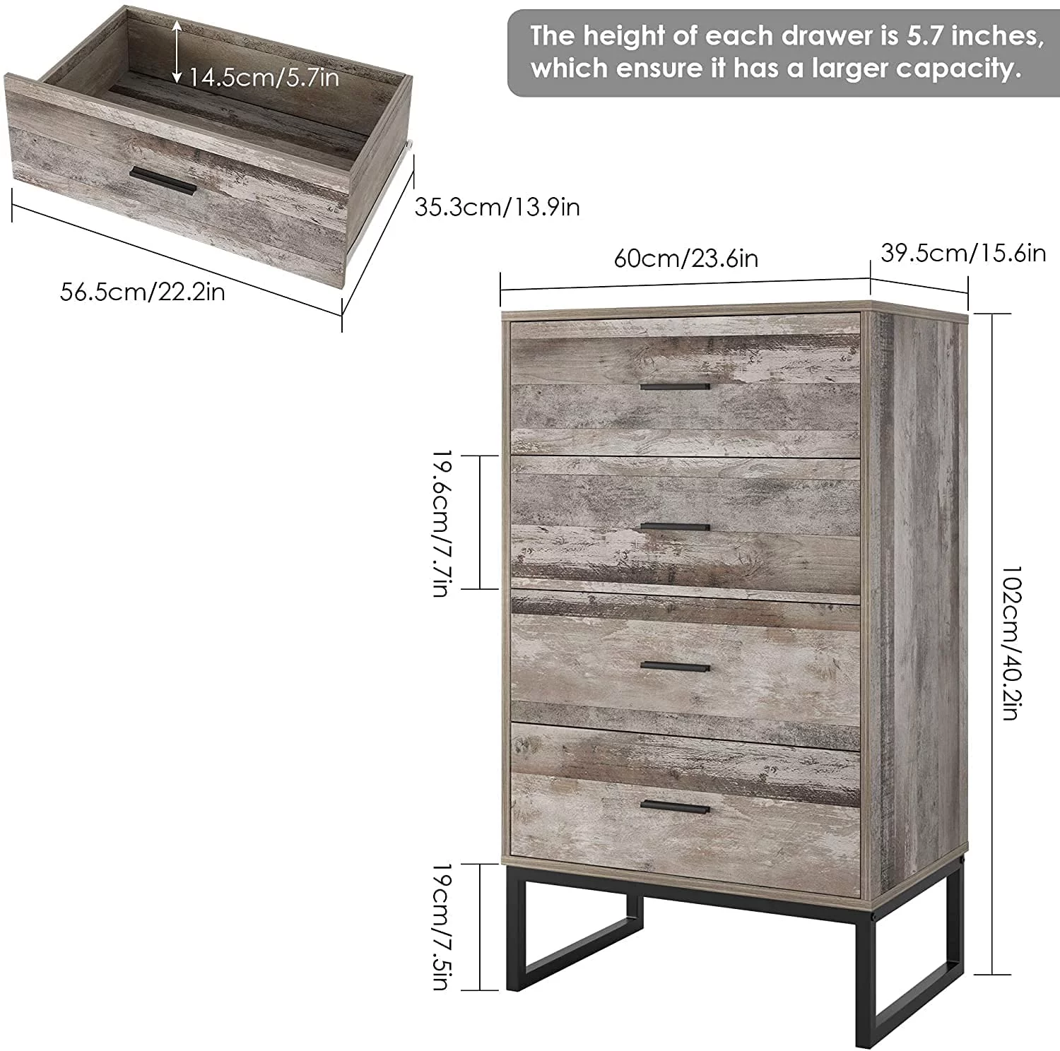 Homfa 4 Drawer Dresser, 23.6'' W Wide Chest of Drawers, Wood Storage Nightstand for Living Room, Classic Gray