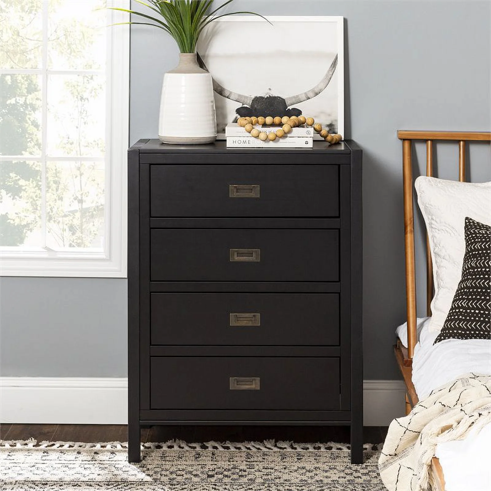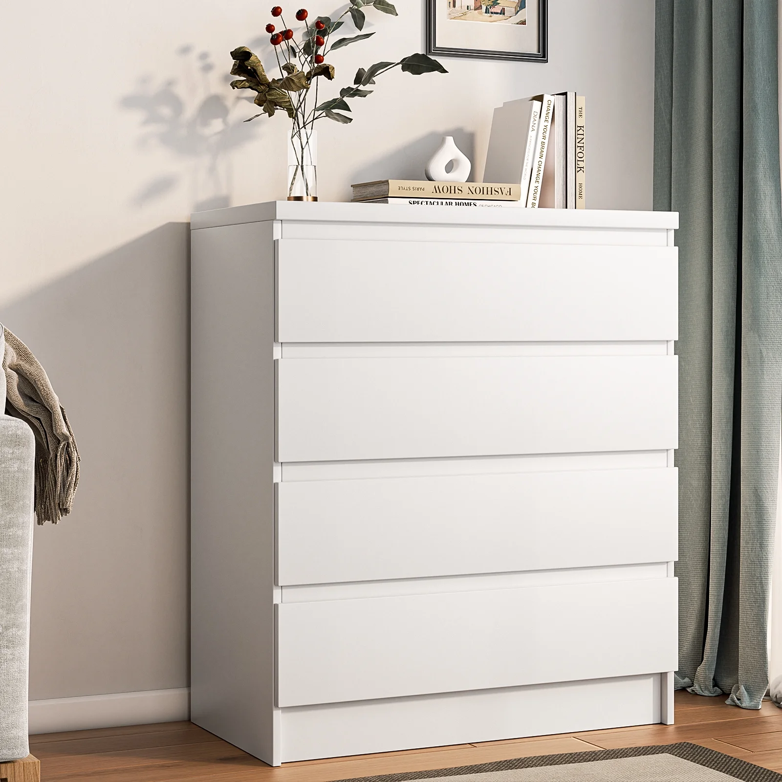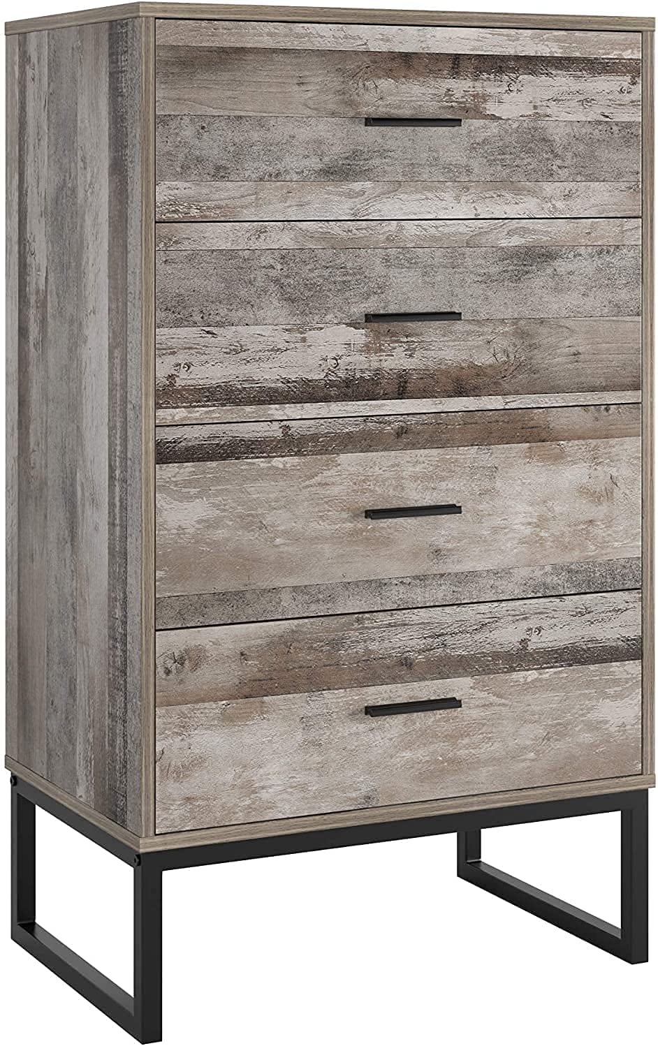 Homfa 4 Drawer Dresser, 23.6'' W Wide Chest of Drawers, Wood Storage Nightstand for Living Room, Classic Gray