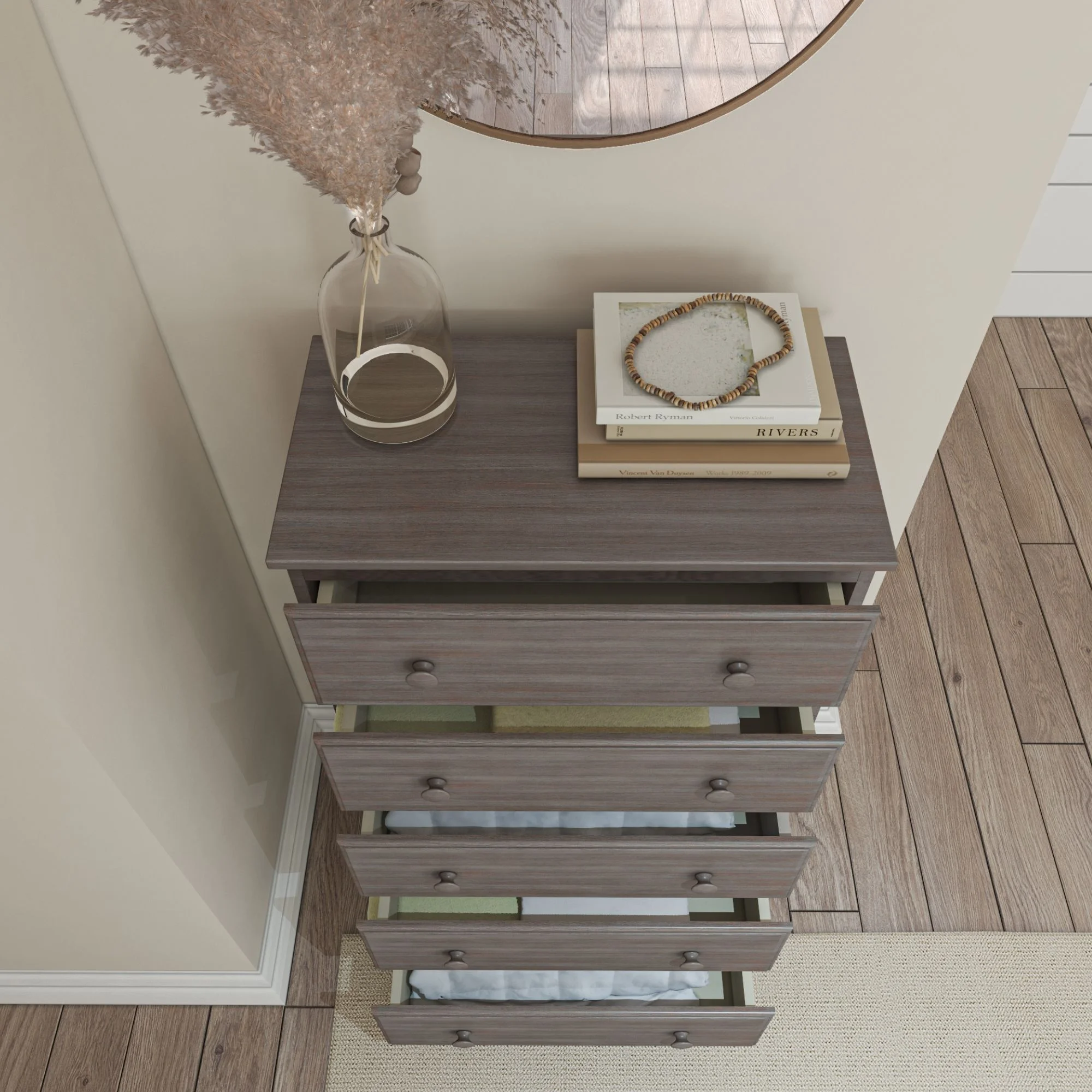 American Furniture Classics Model 82155 Solid Pine Five Drawer Chest in Warm Honey