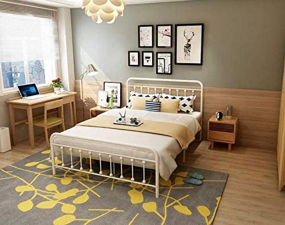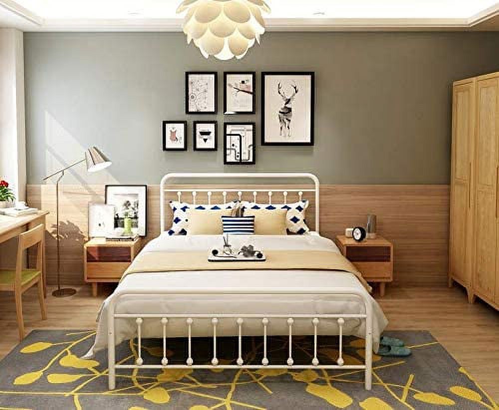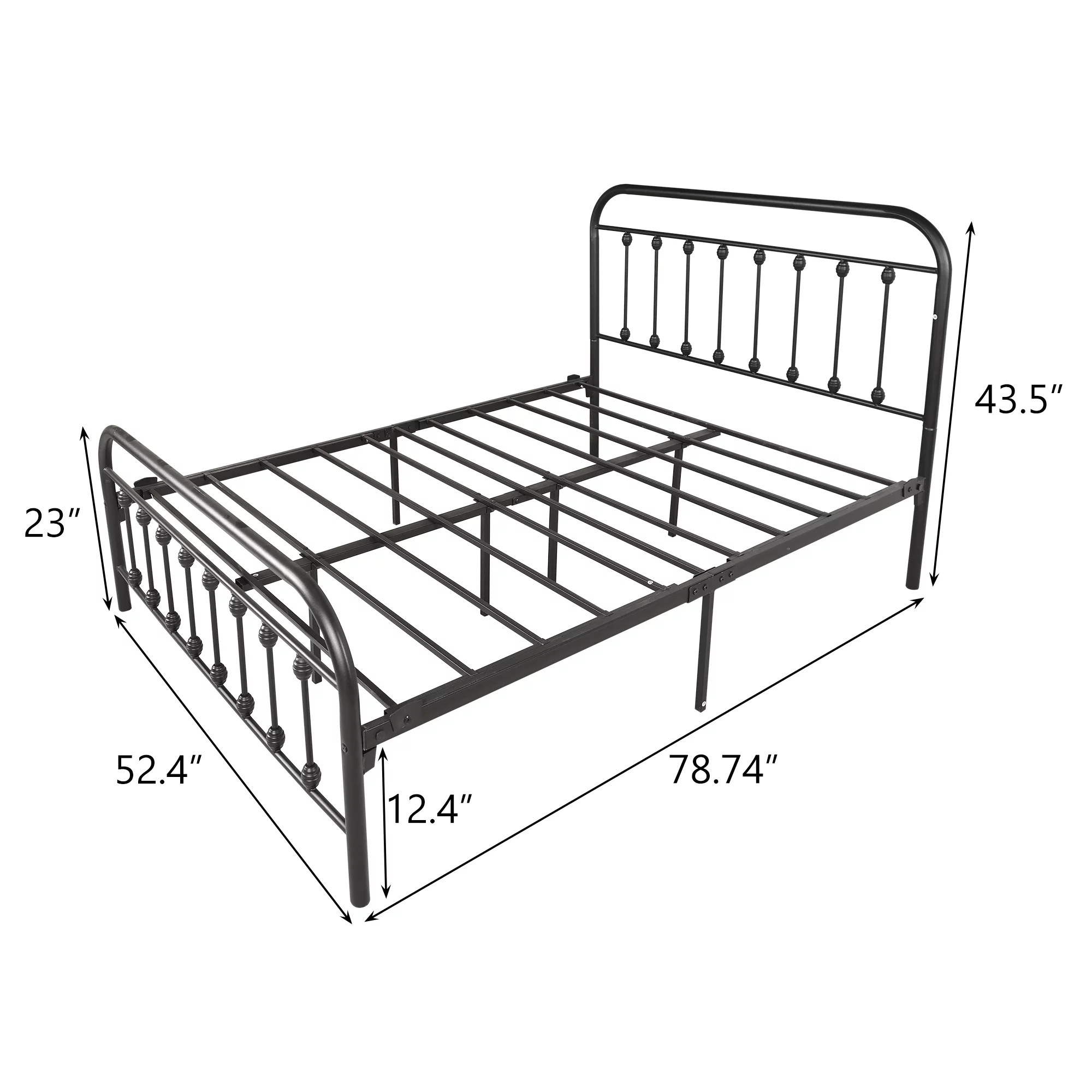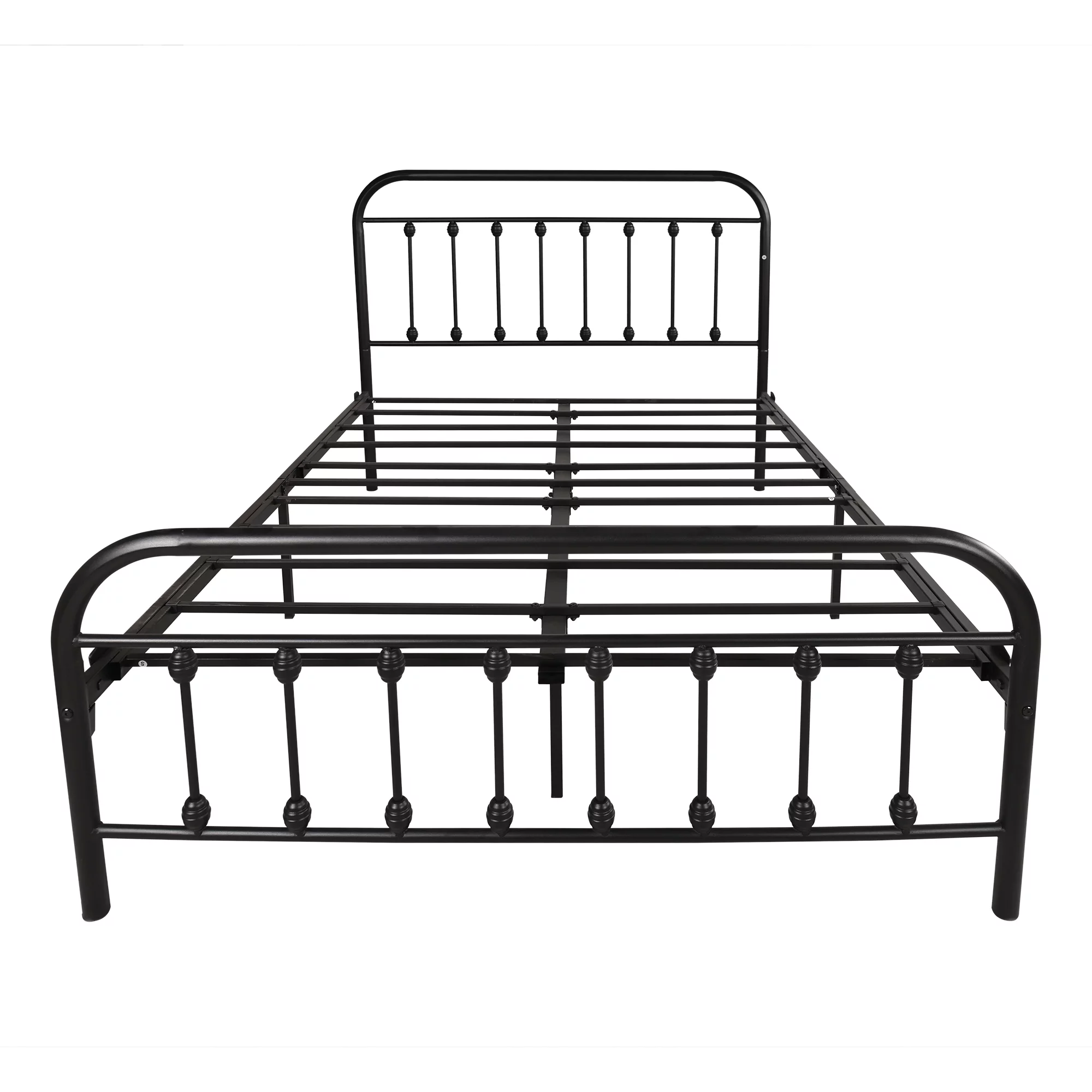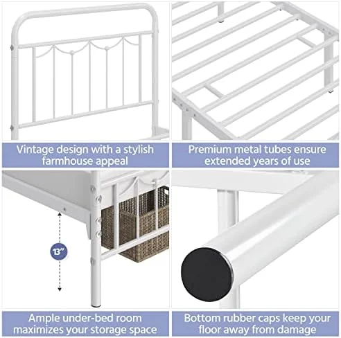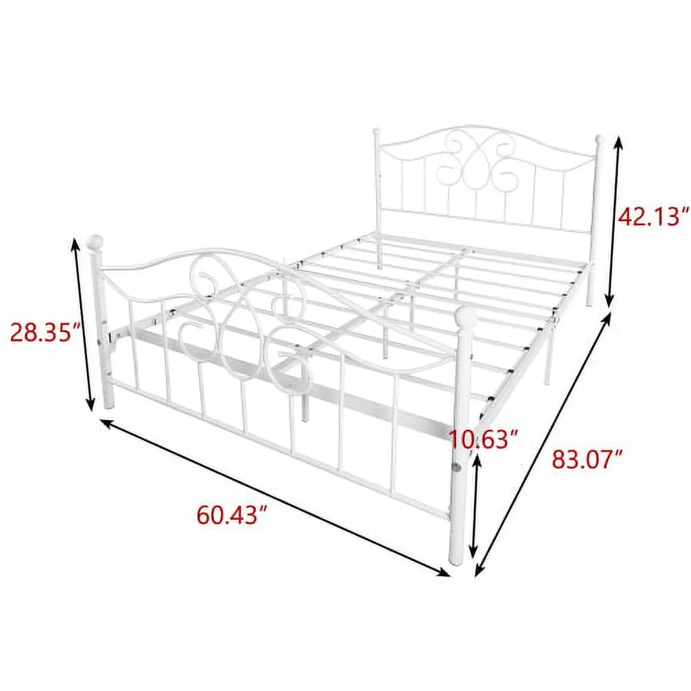 Victorian Vintage Style Platform Metal Bed Frame Foundation Headboard Footboard Heavy Duty Steel Slabs Full Black