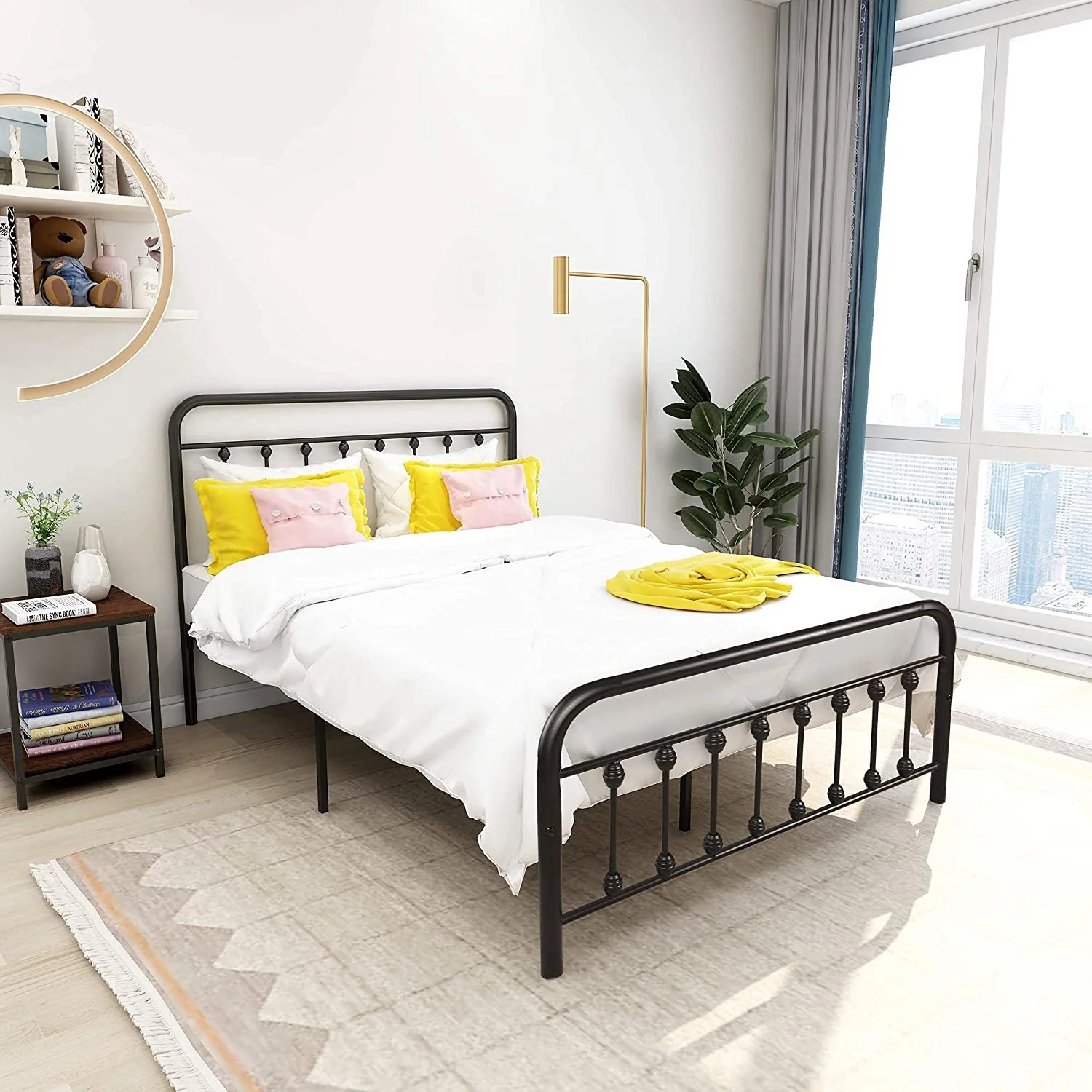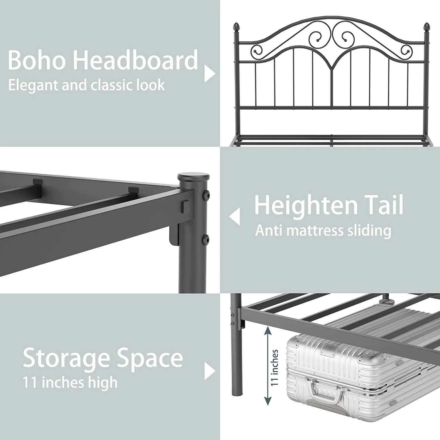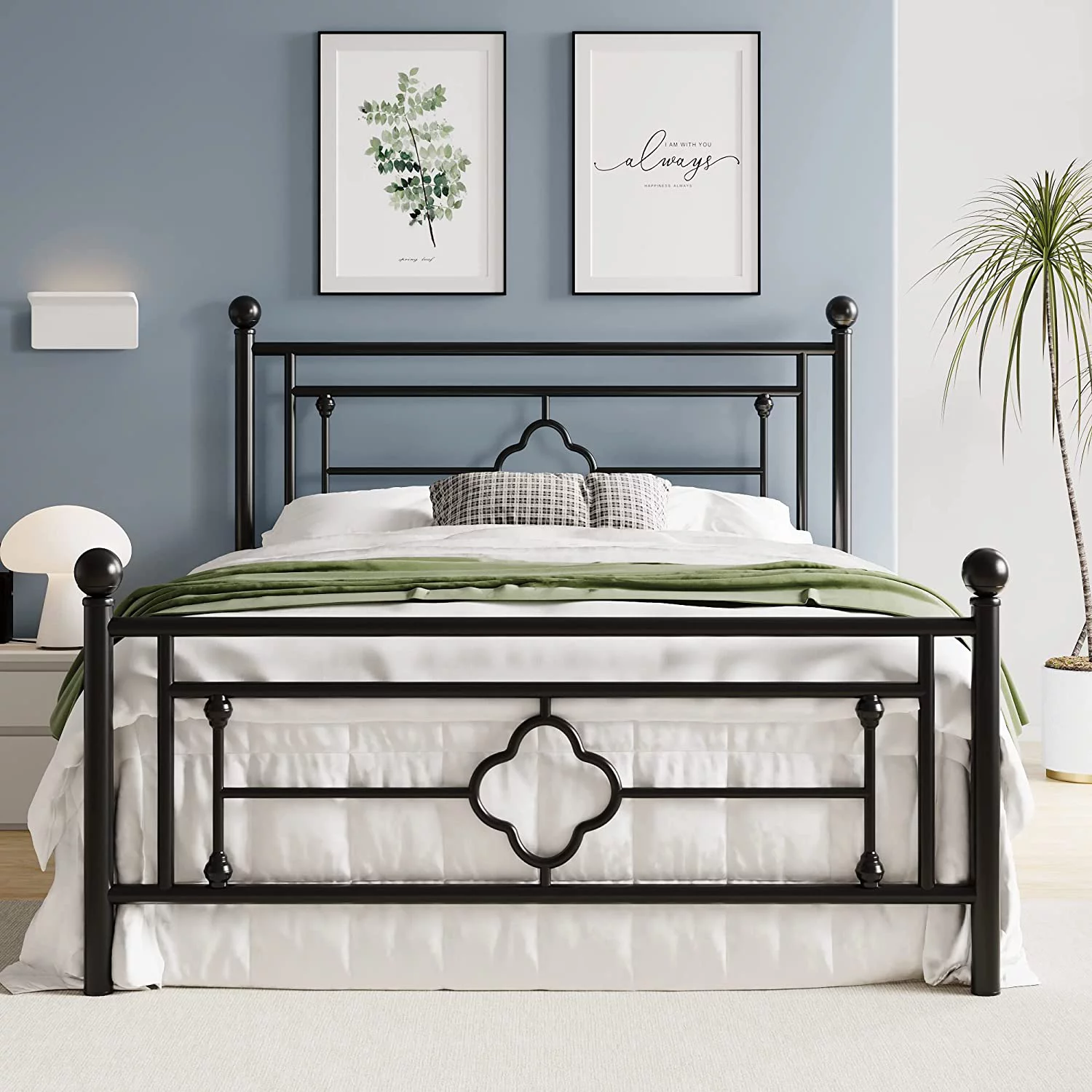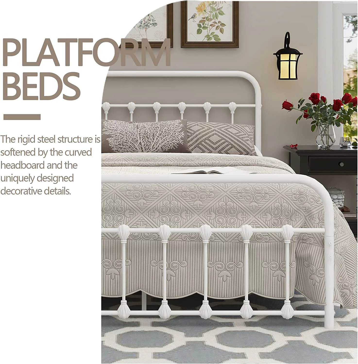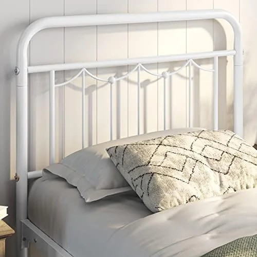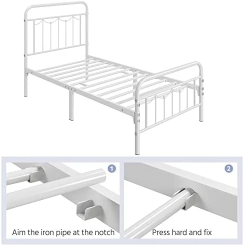 Victorian Vintage Style Platform Metal Bed Frame Foundation Headboard Footboard Heavy Duty Steel Slabs Full Black