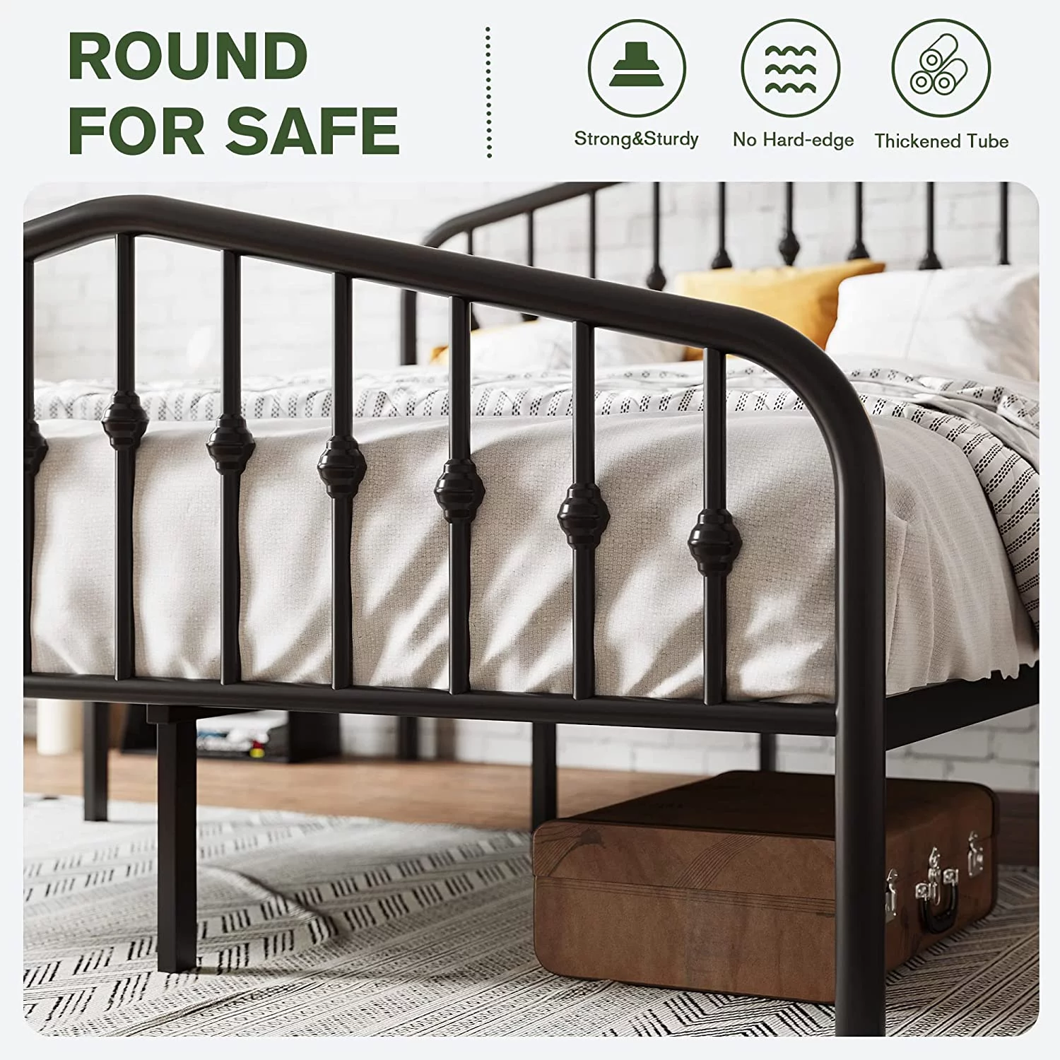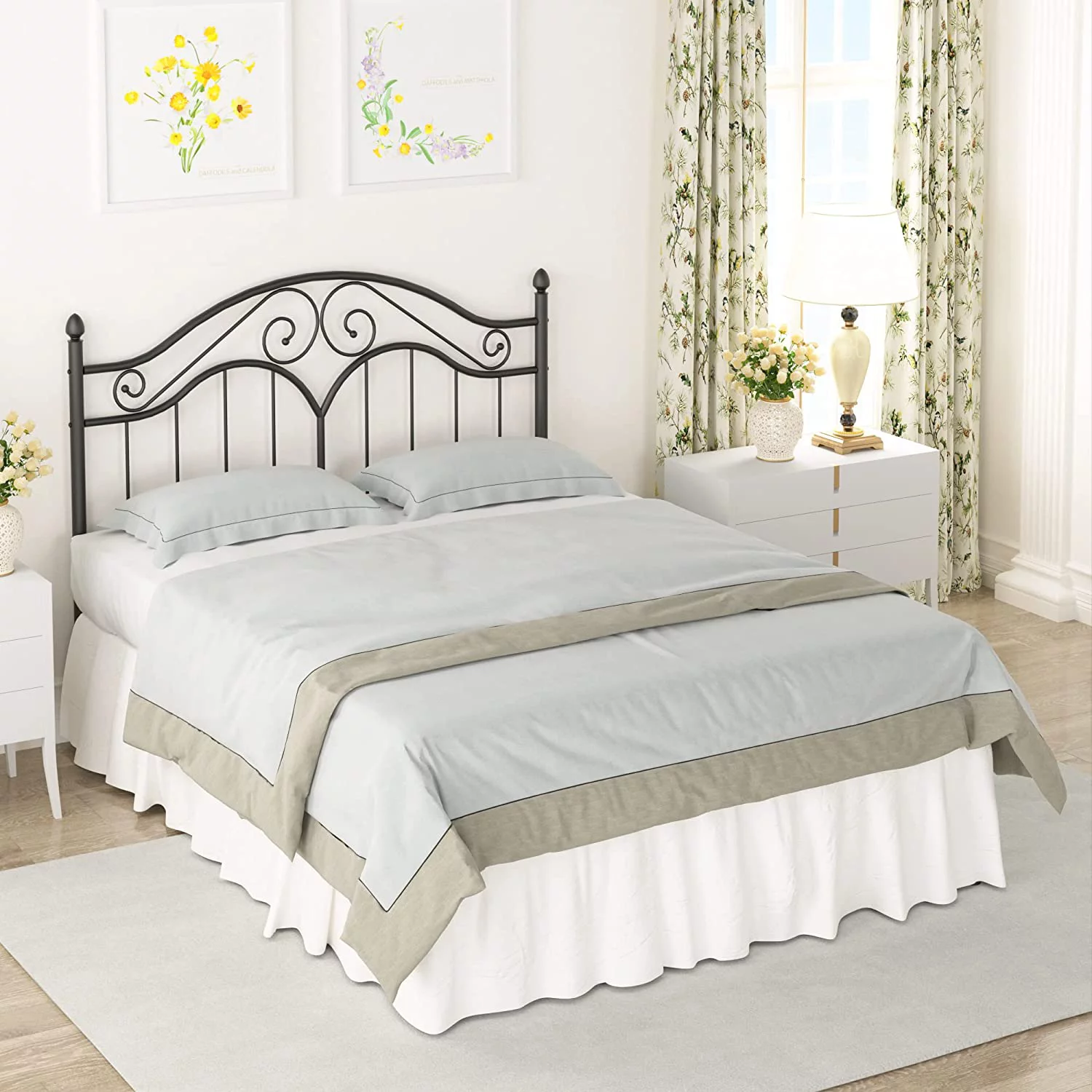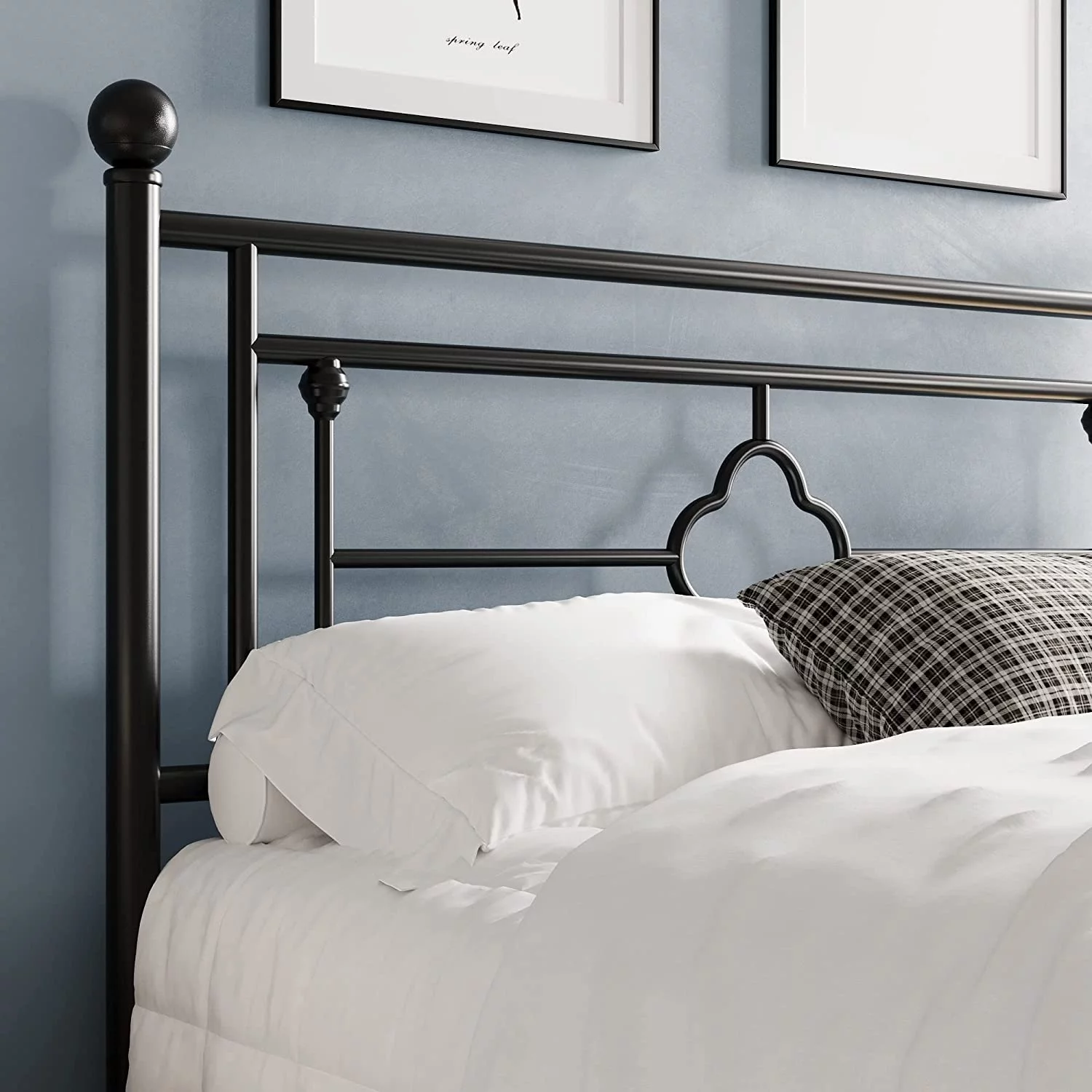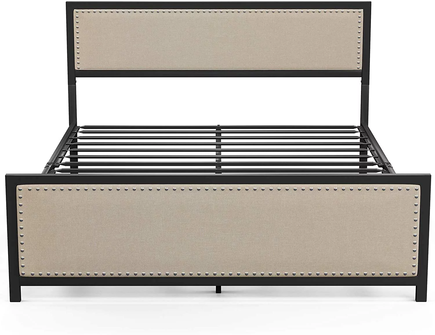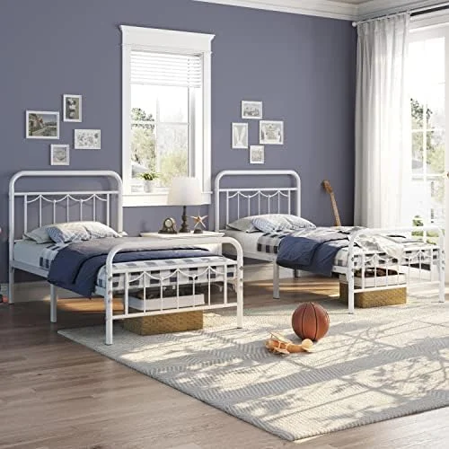 Victorian Vintage Style Platform Metal Bed Frame Foundation Headboard Footboard Heavy Duty Steel Slabs Full Black