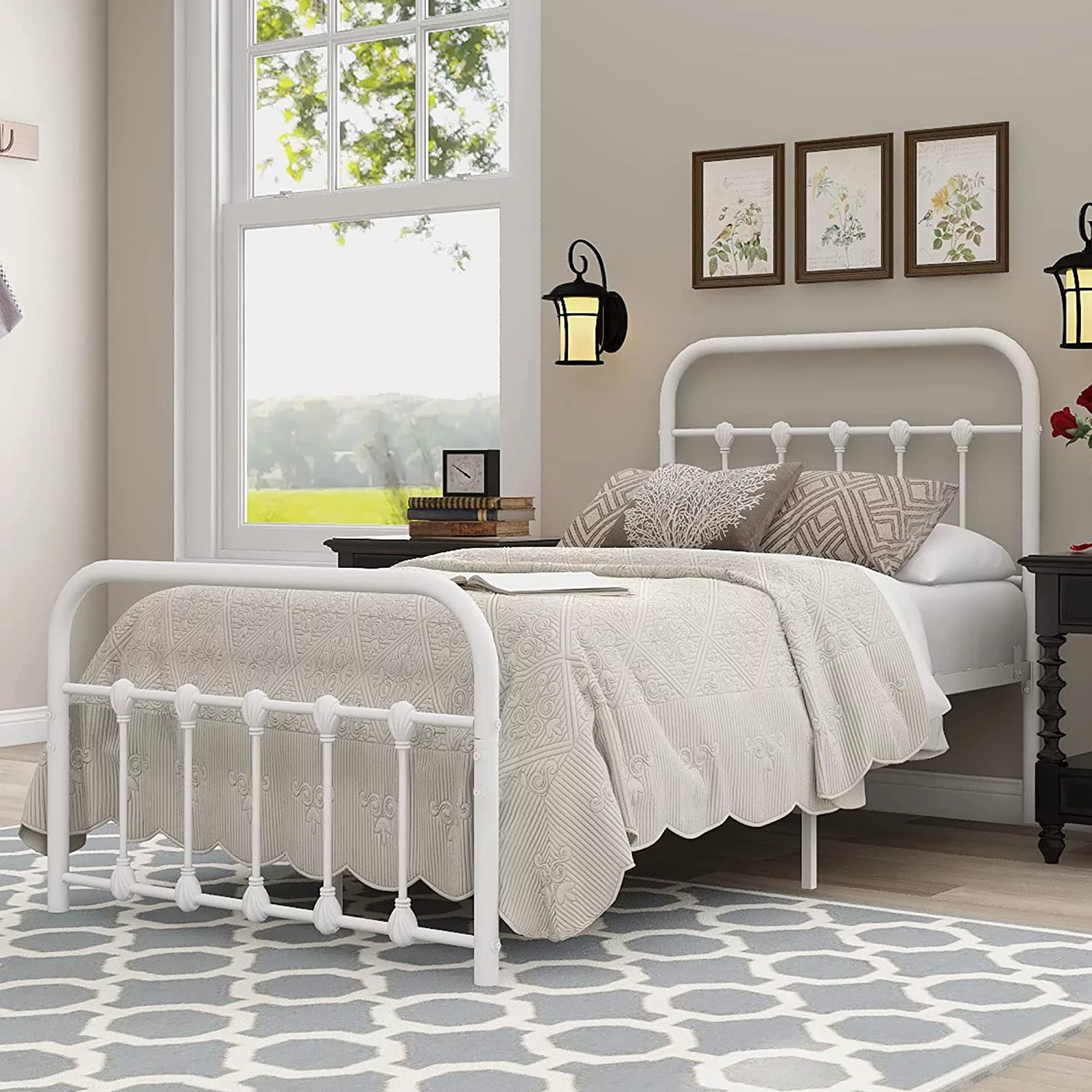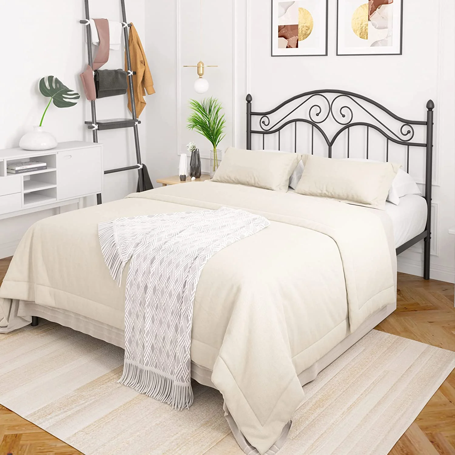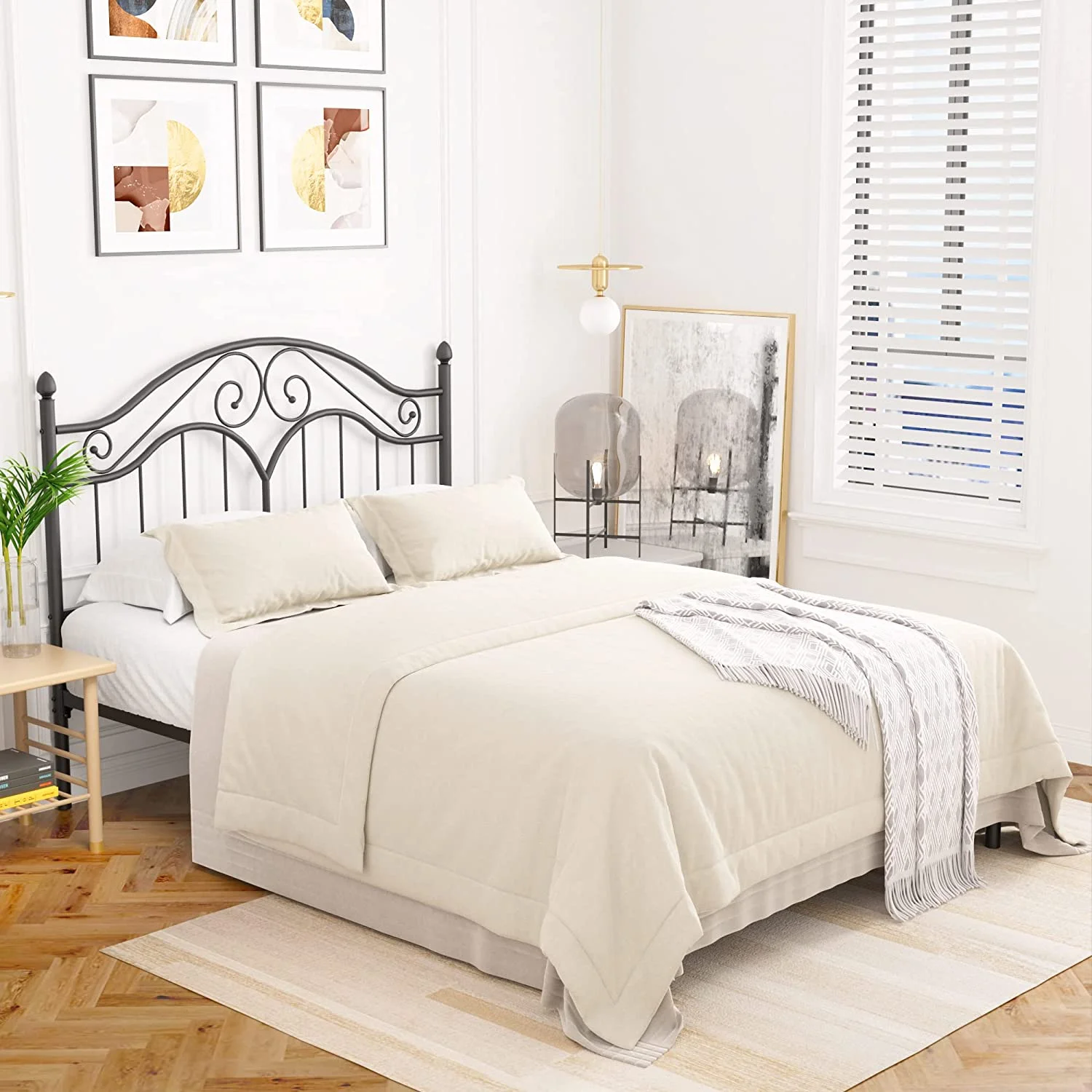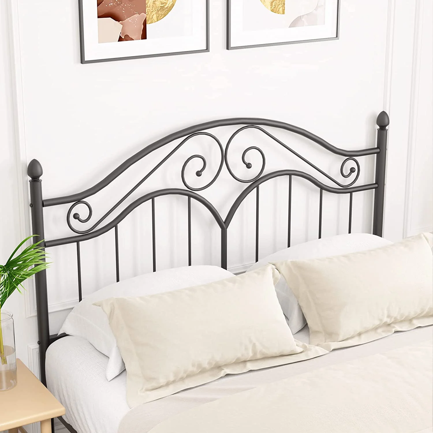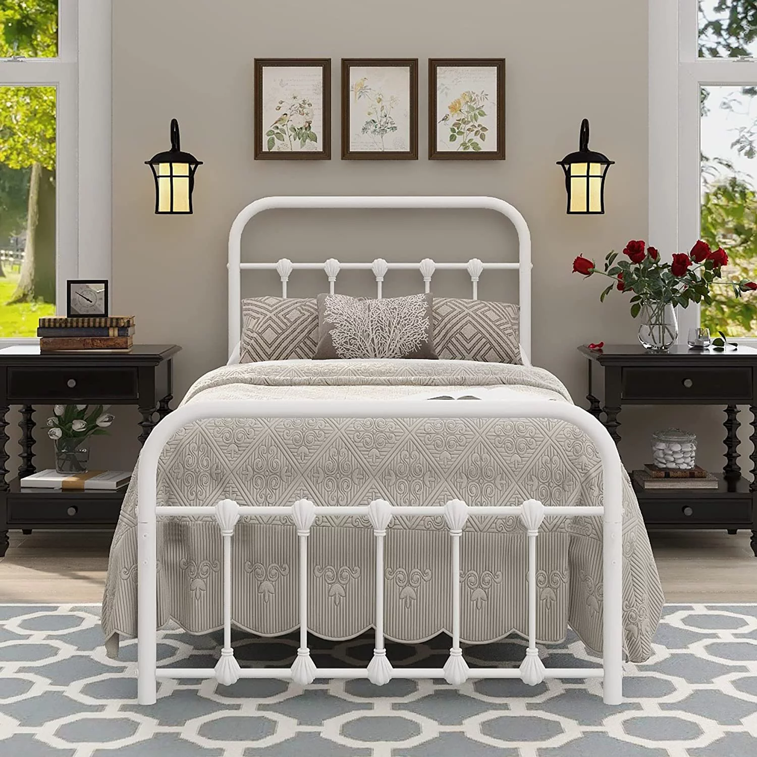 Victorian Vintage Style Platform Metal Bed Frame Foundation Headboard Footboard Heavy Duty Steel Slabs Full Black