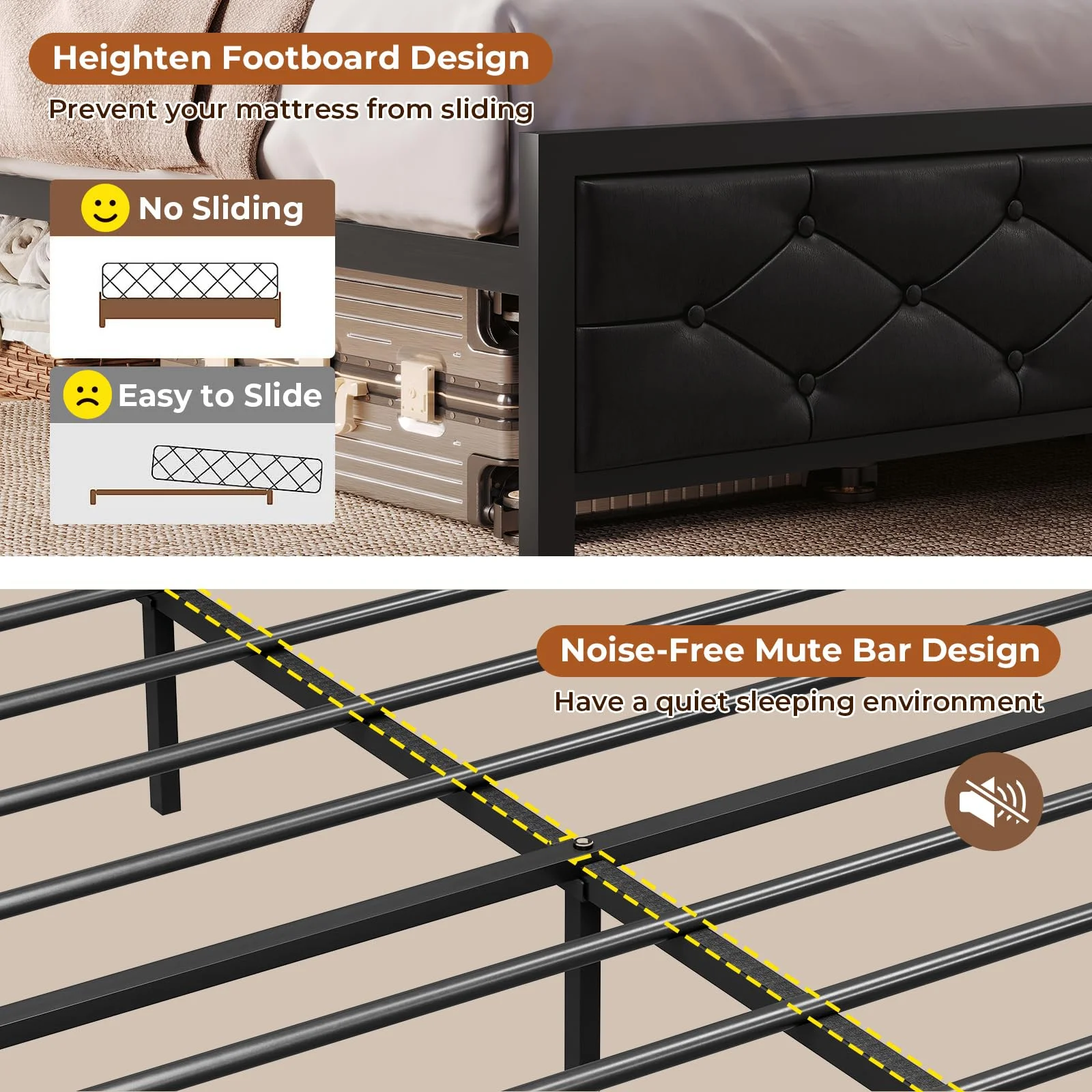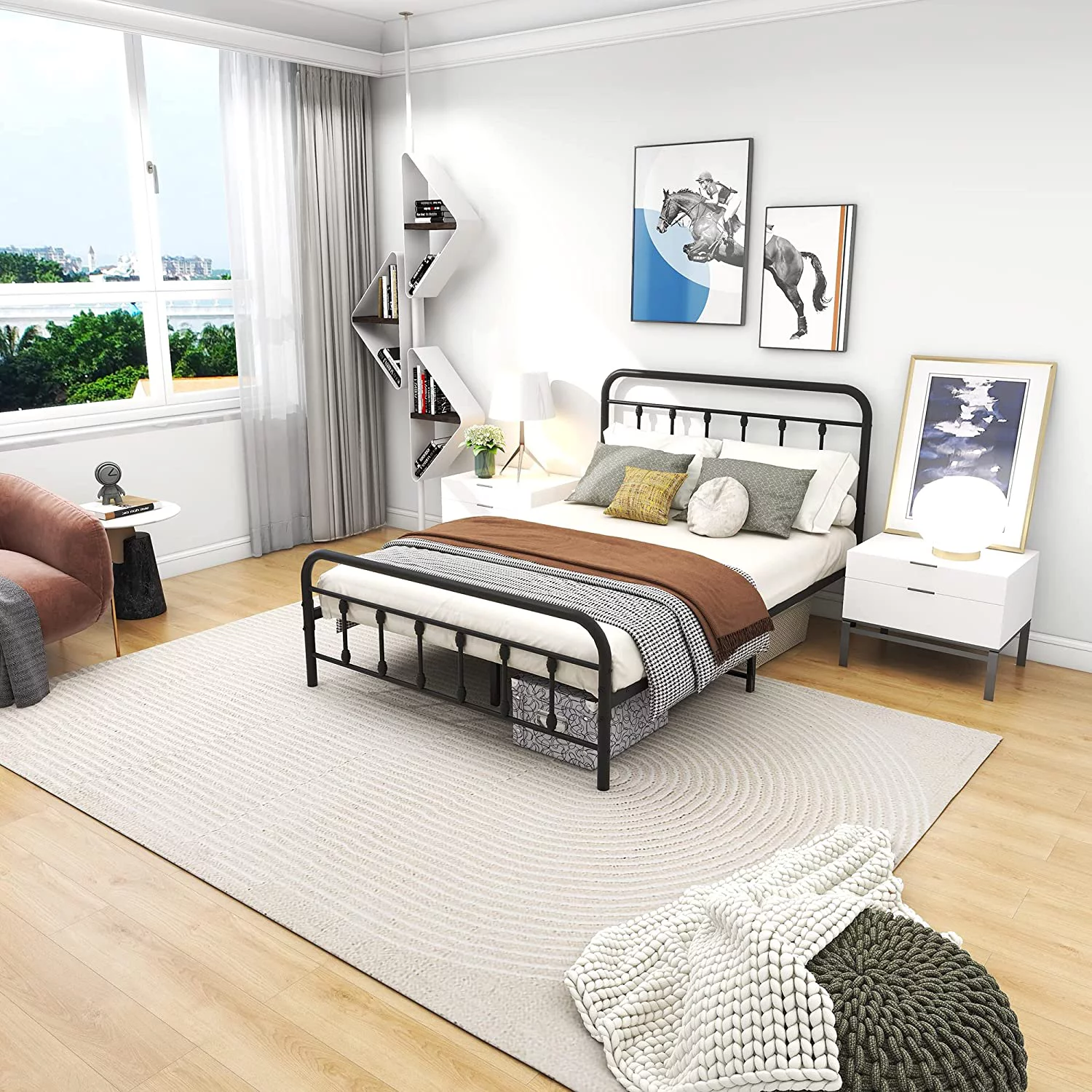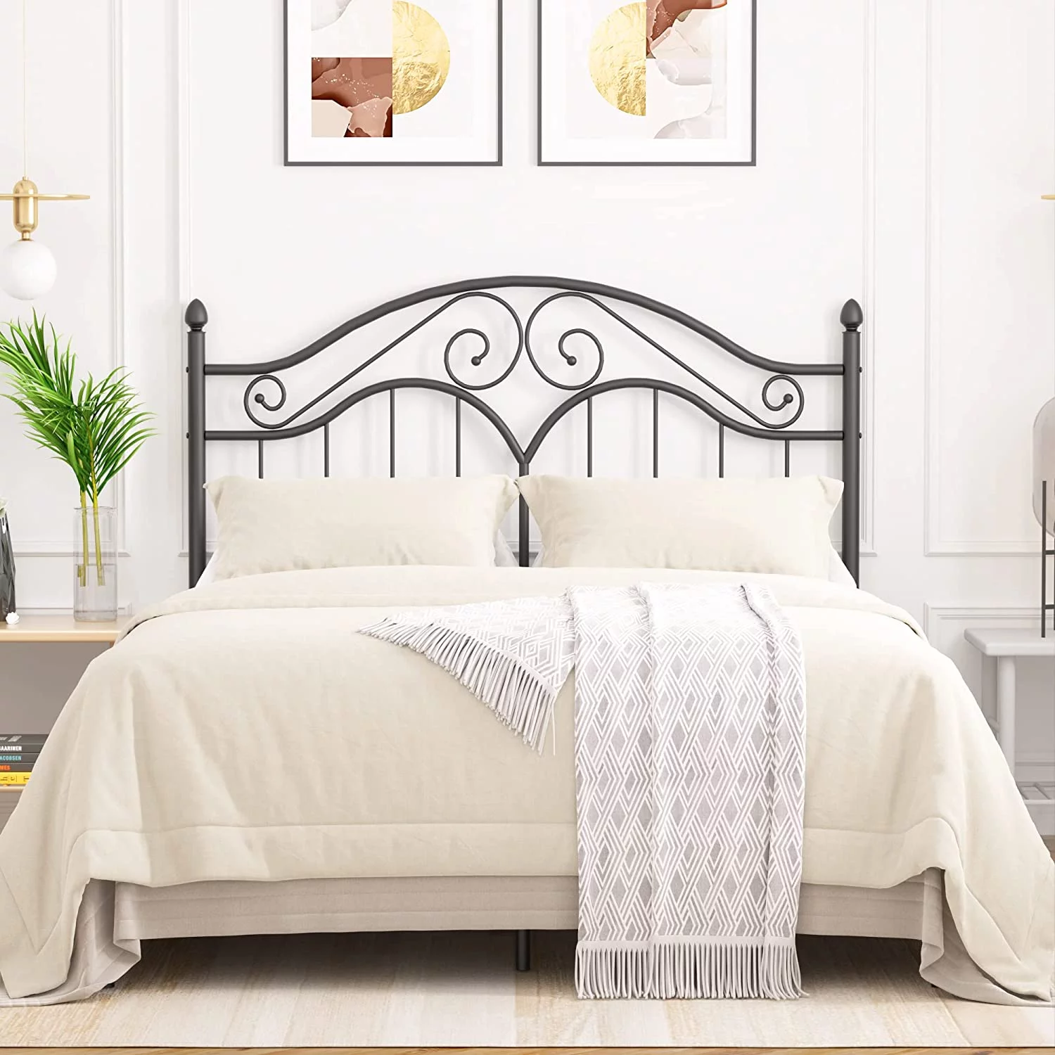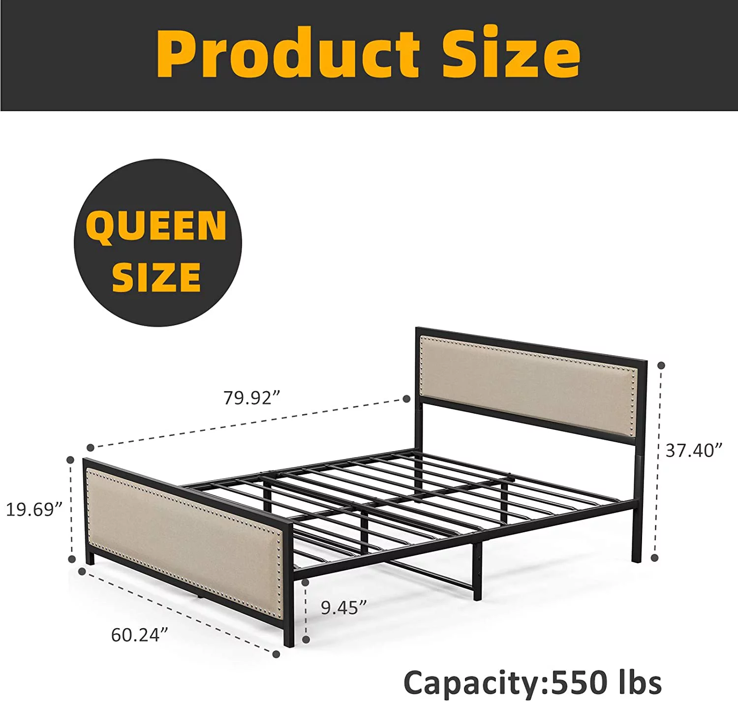 Victorian Vintage Style Platform Metal Bed Frame Foundation Headboard Footboard Heavy Duty Steel Slabs Full Black