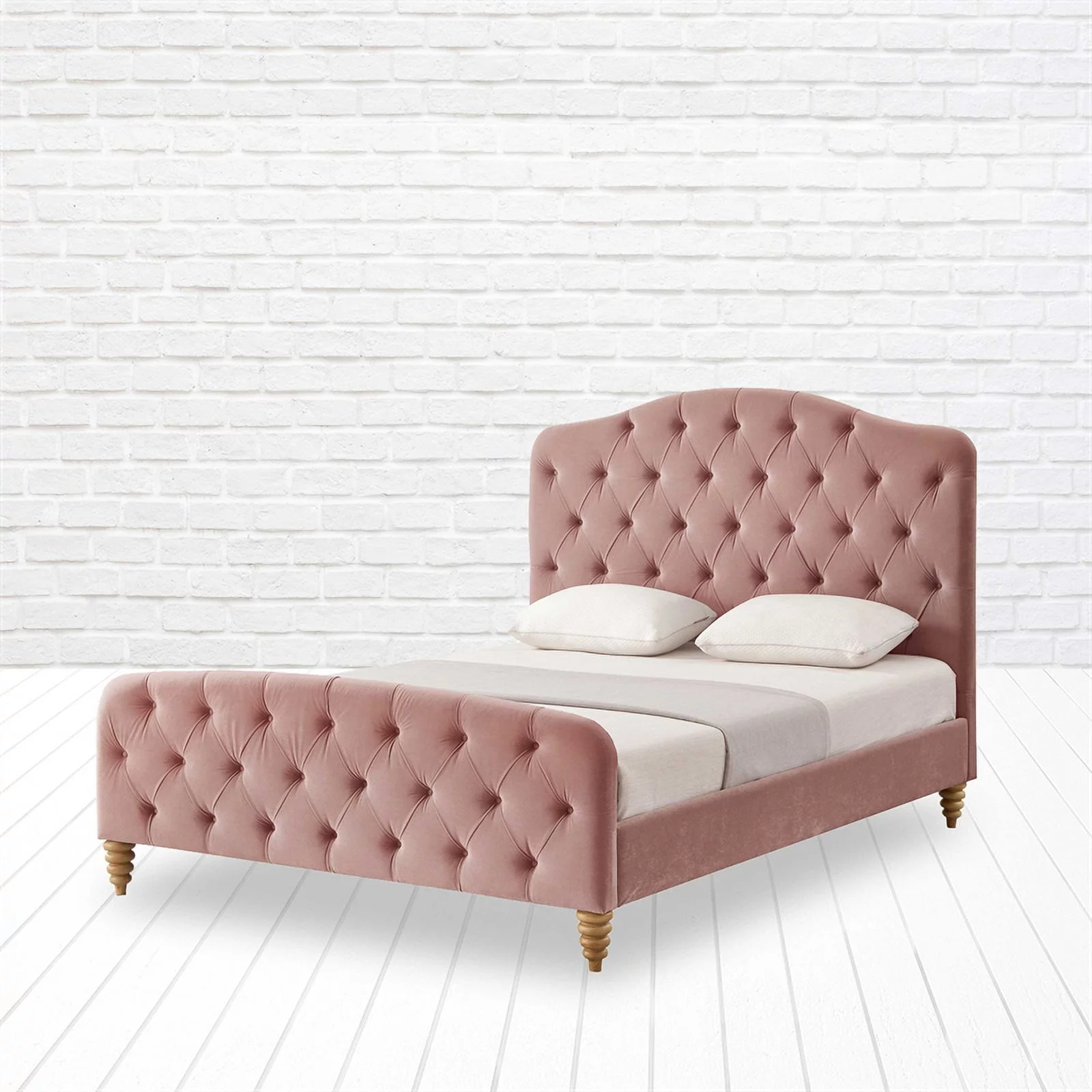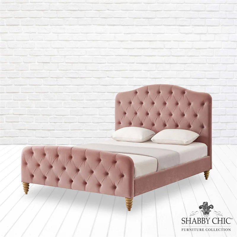 Rustic Manor SBD255-03BHK-UE Boucher Velvet King Bedframe with Tufted Headboard and Footboard - Blush