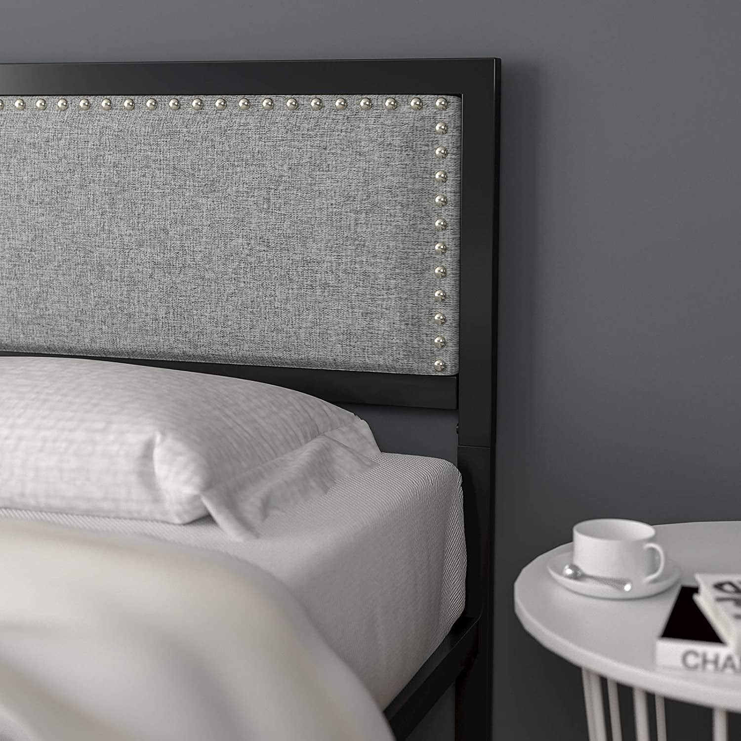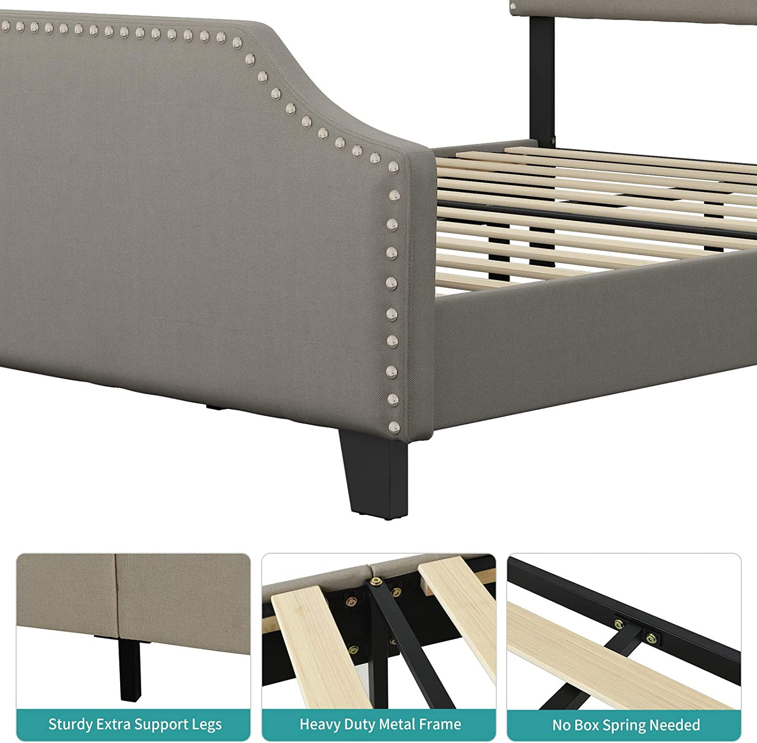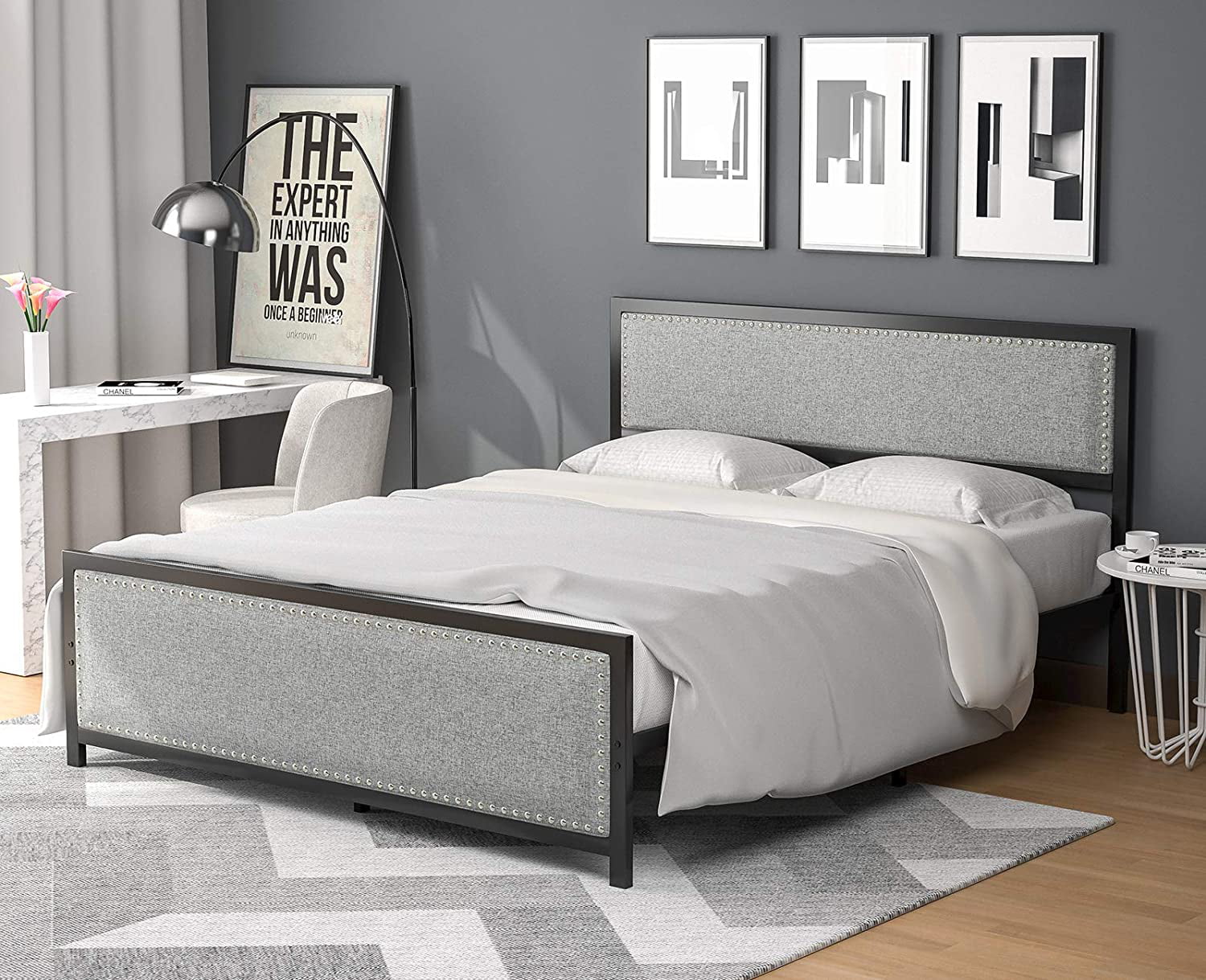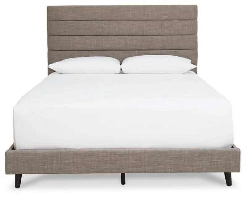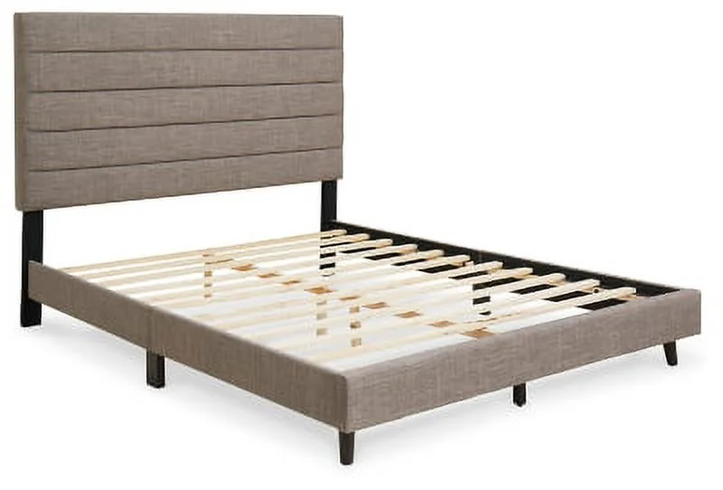 Signature Design by Ashley Vintasso Modern Upholstered Headboard, Footboard, & Roll Slats Bed, Queen, Gray