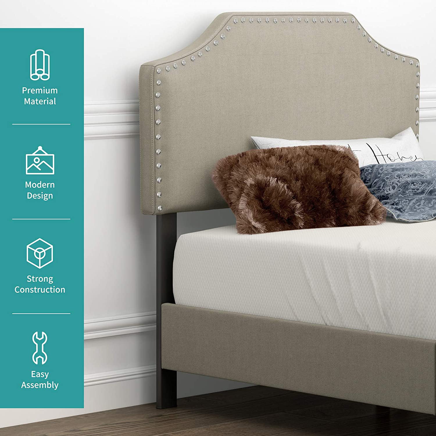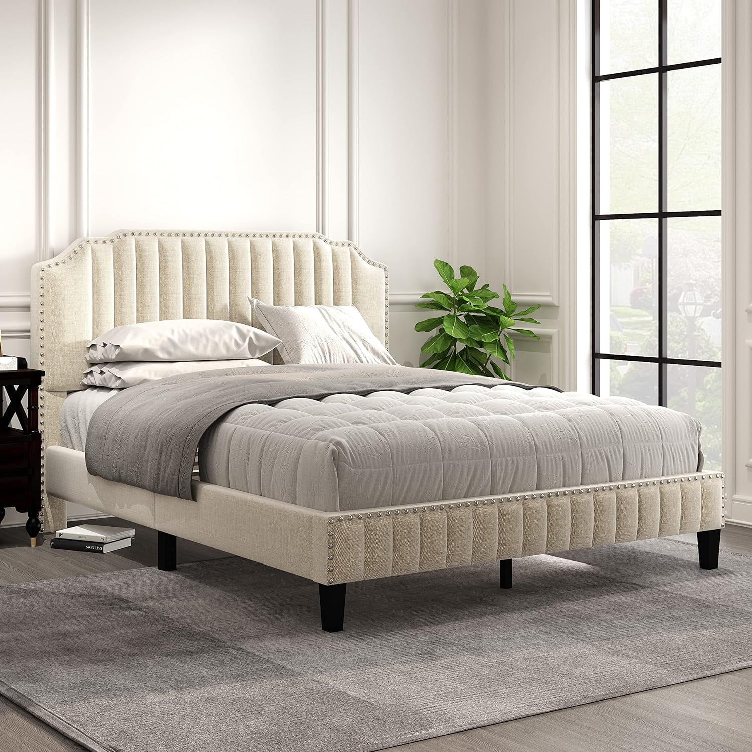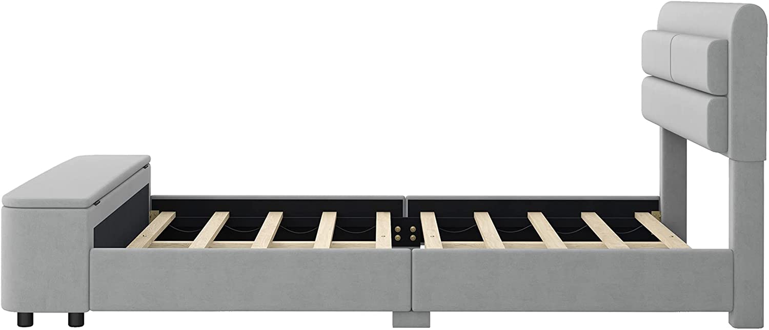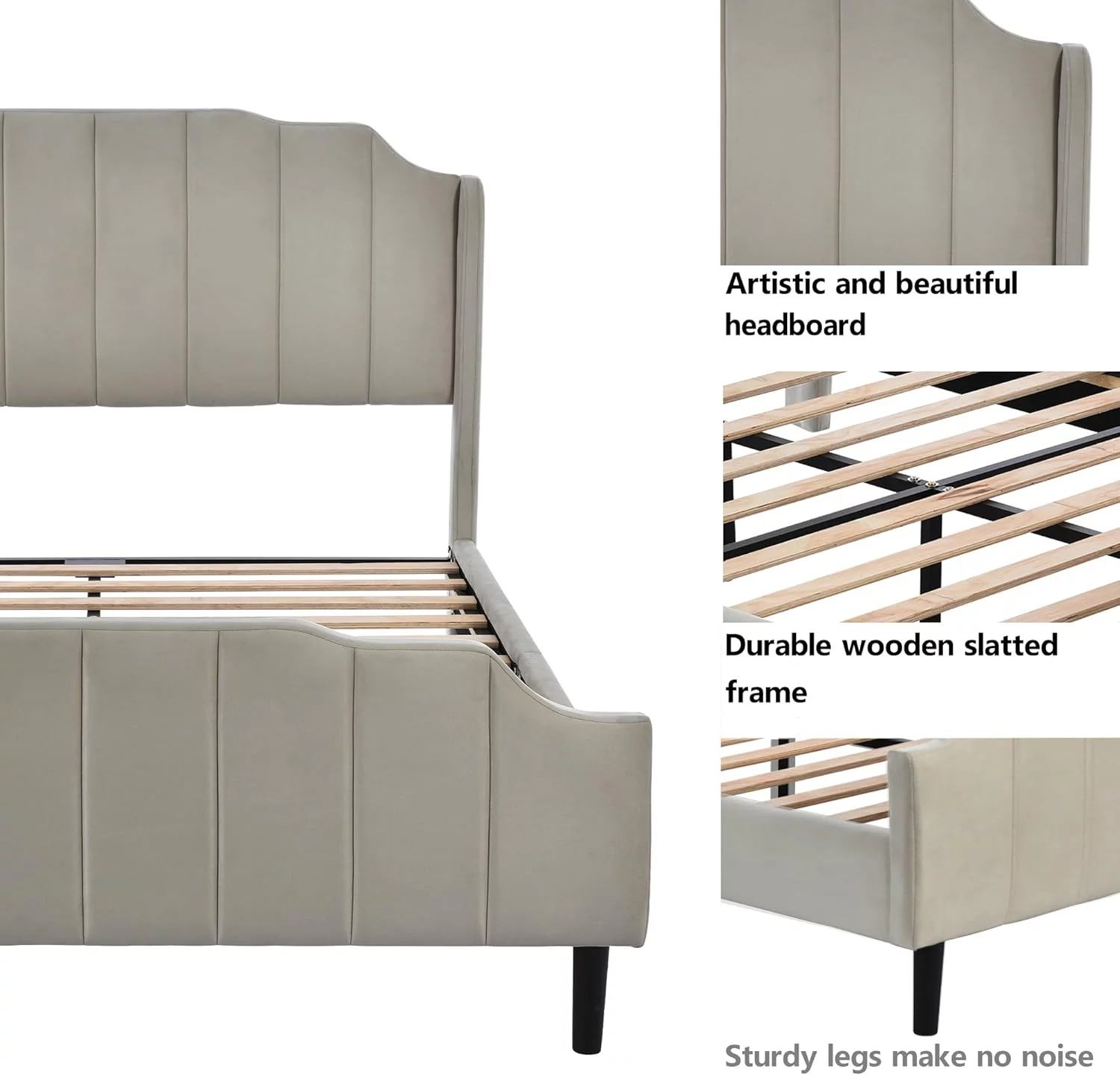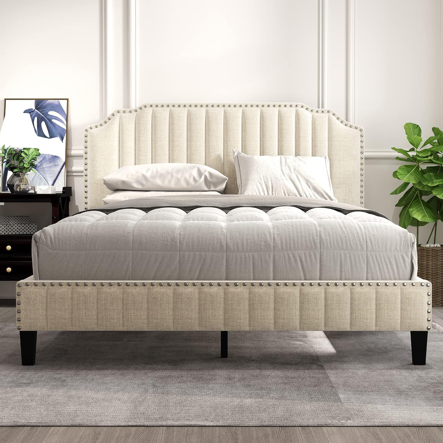 Signature Design by Ashley Vintasso Modern Upholstered Headboard, Footboard, & Roll Slats Bed, Queen, Gray
