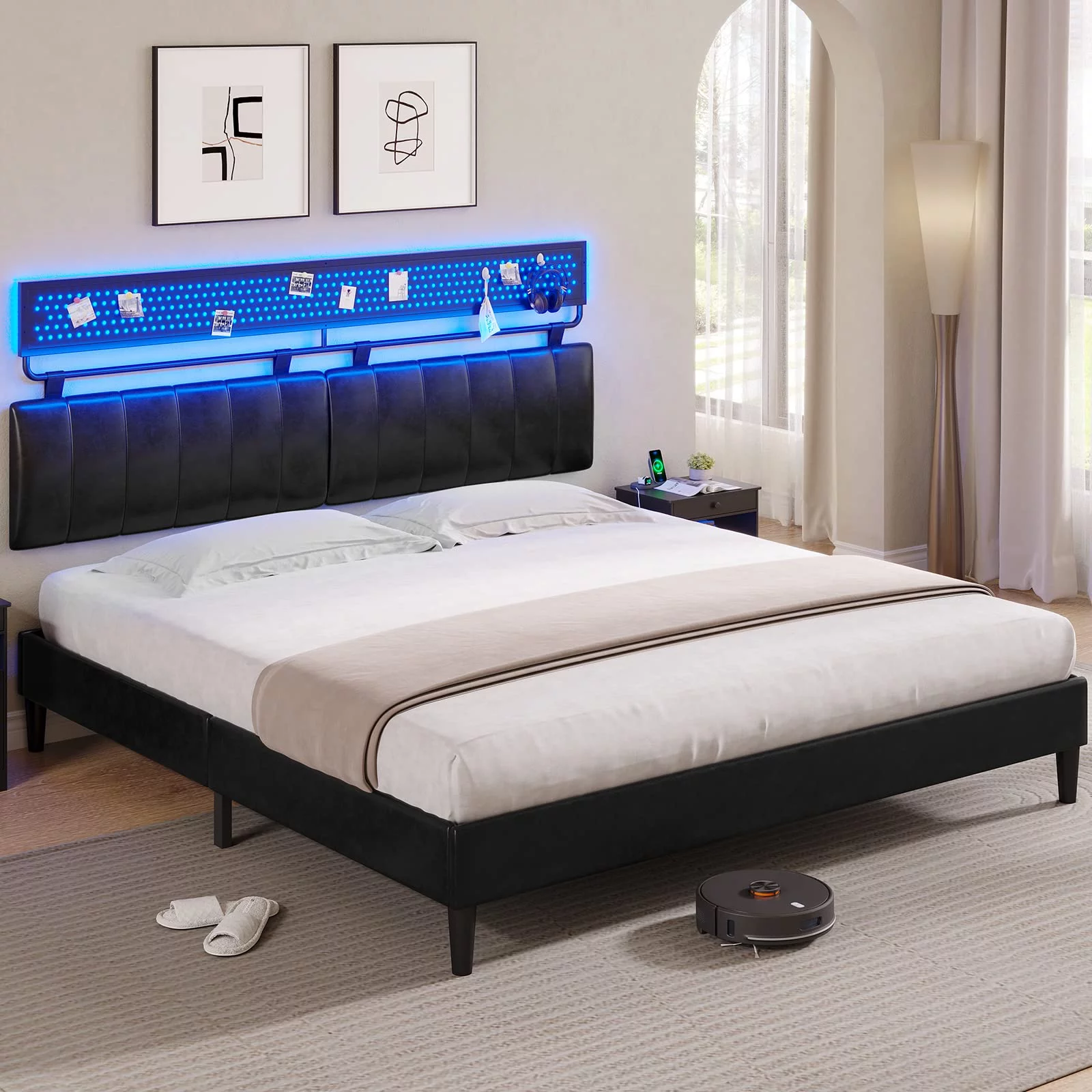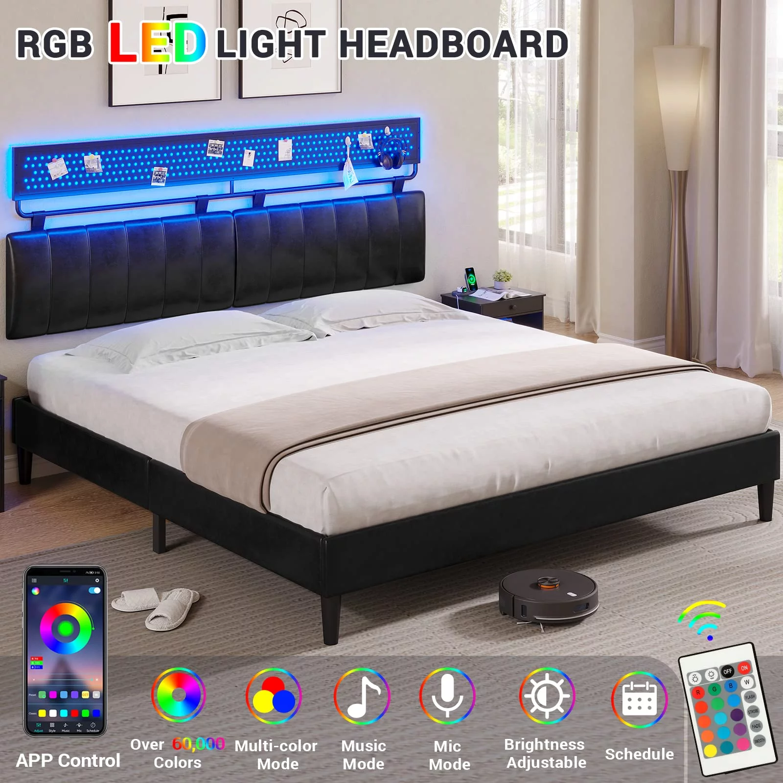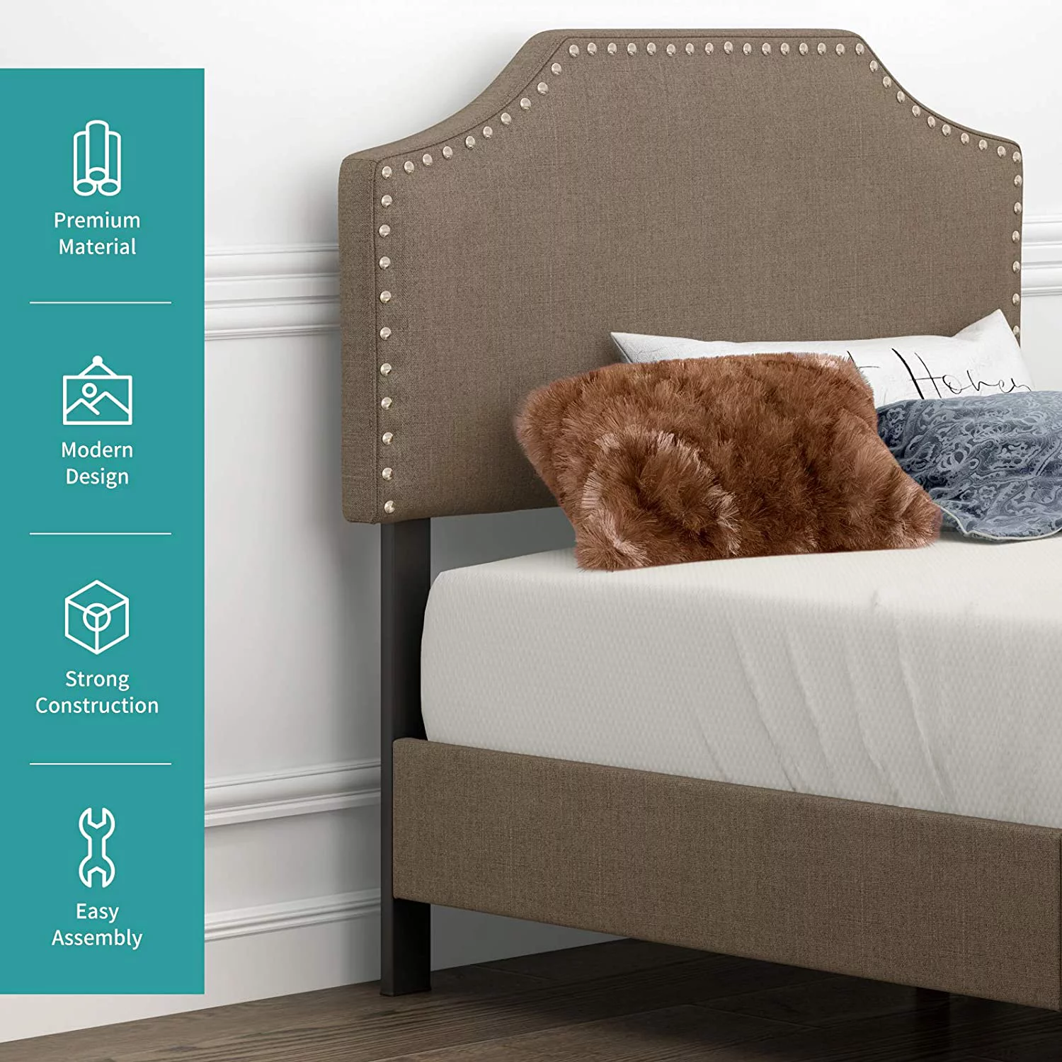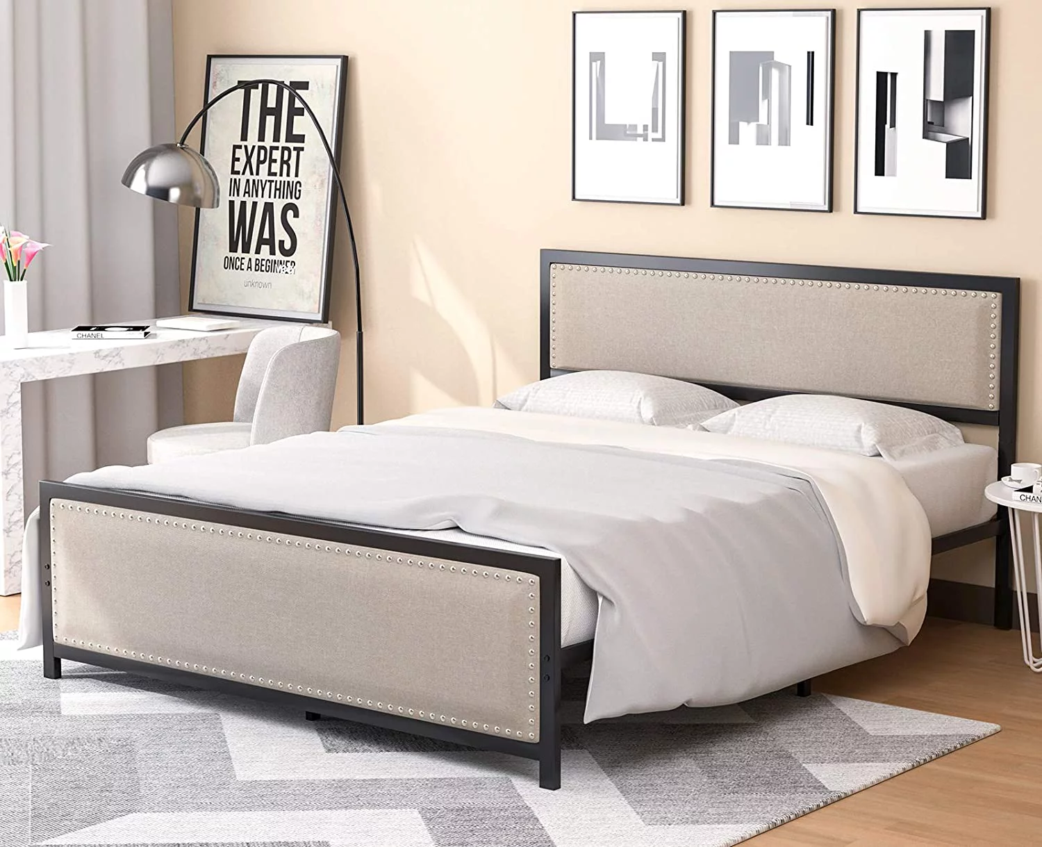 Signature Design by Ashley Vintasso Modern Upholstered Headboard, Footboard, & Roll Slats Bed, Queen, Gray