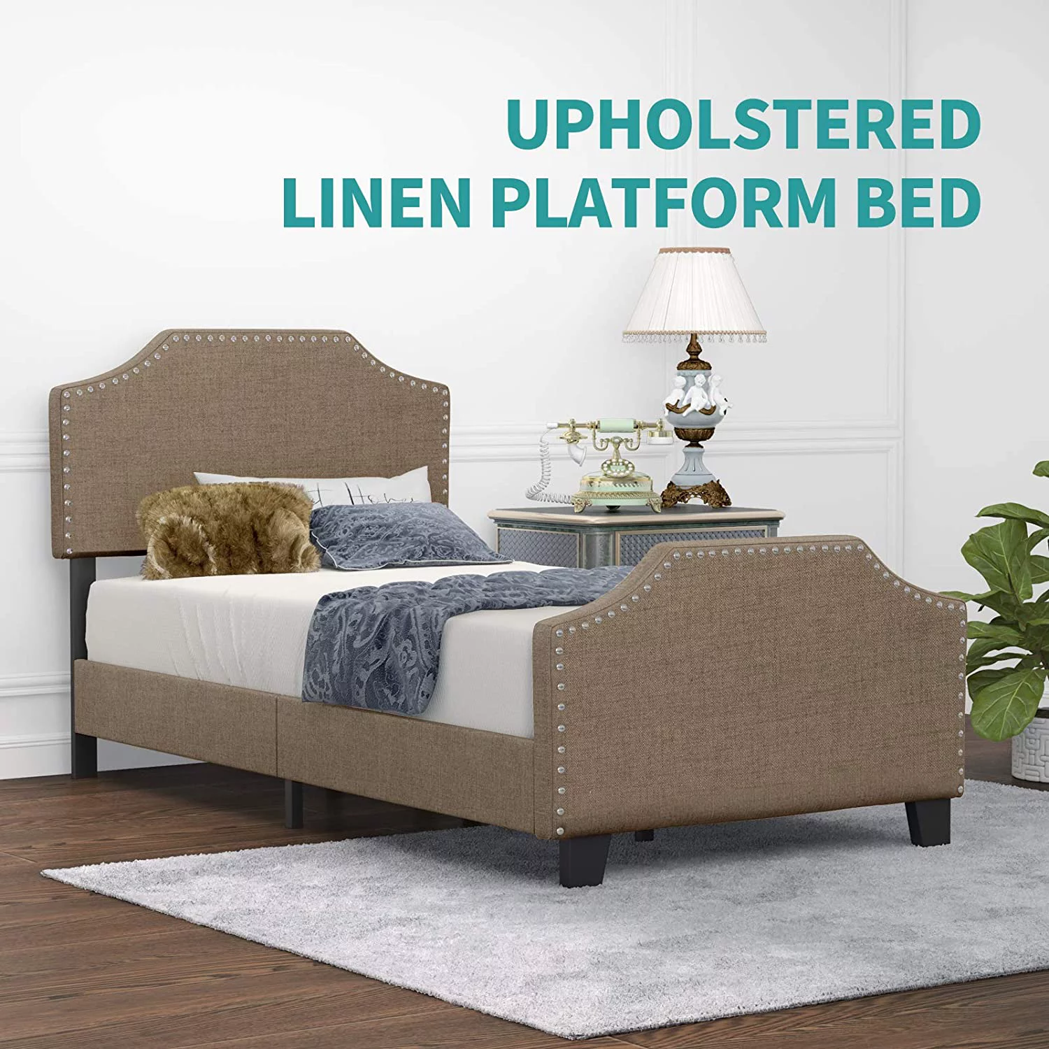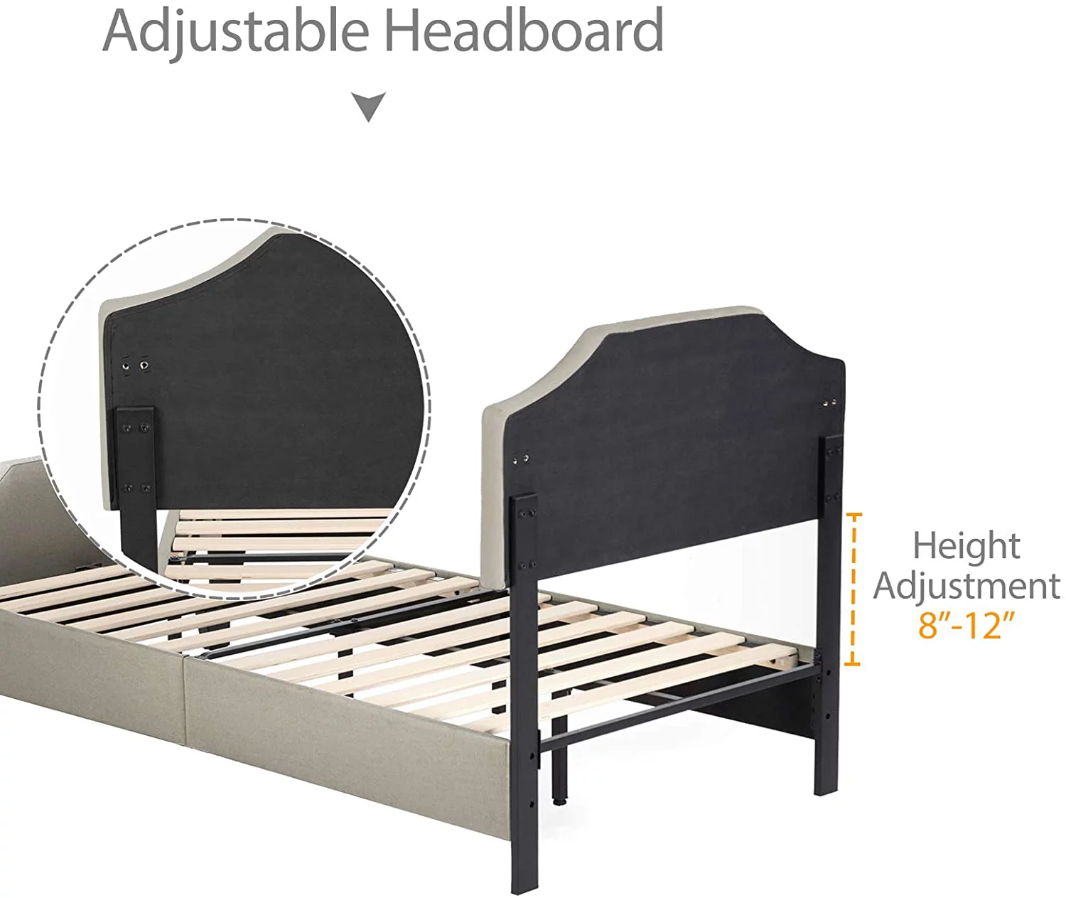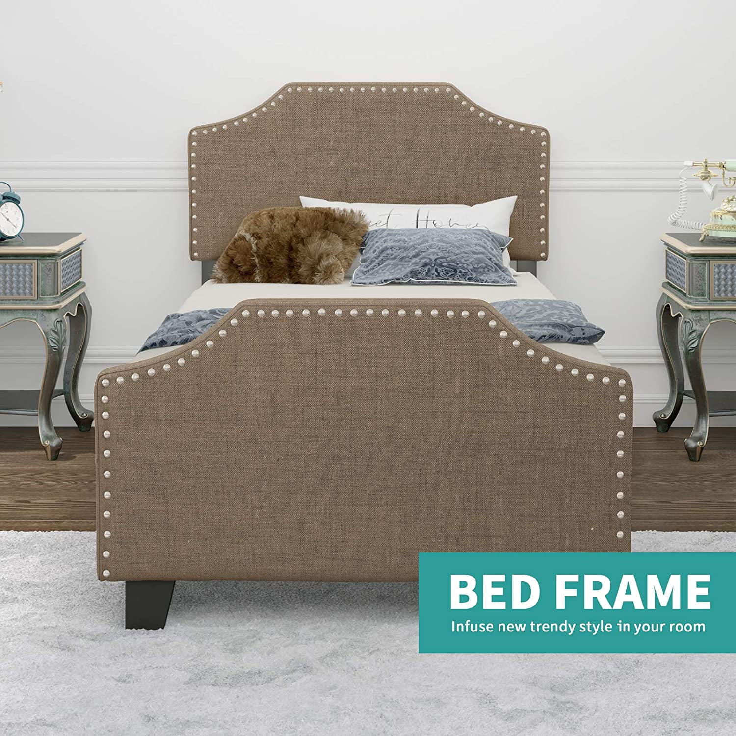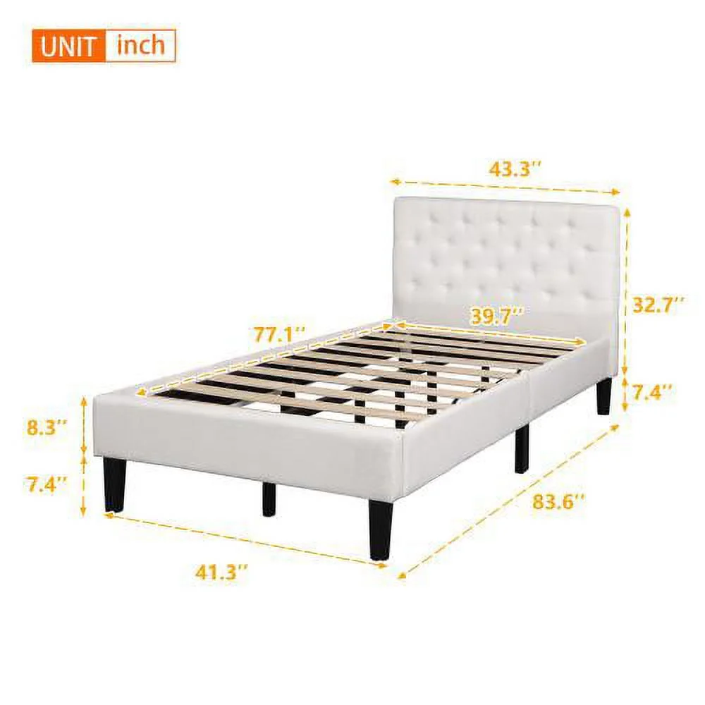 Cosymart Twin Size Upholstered Platform Bed with Bear-shaped Headboard and Footboard, Brown+White