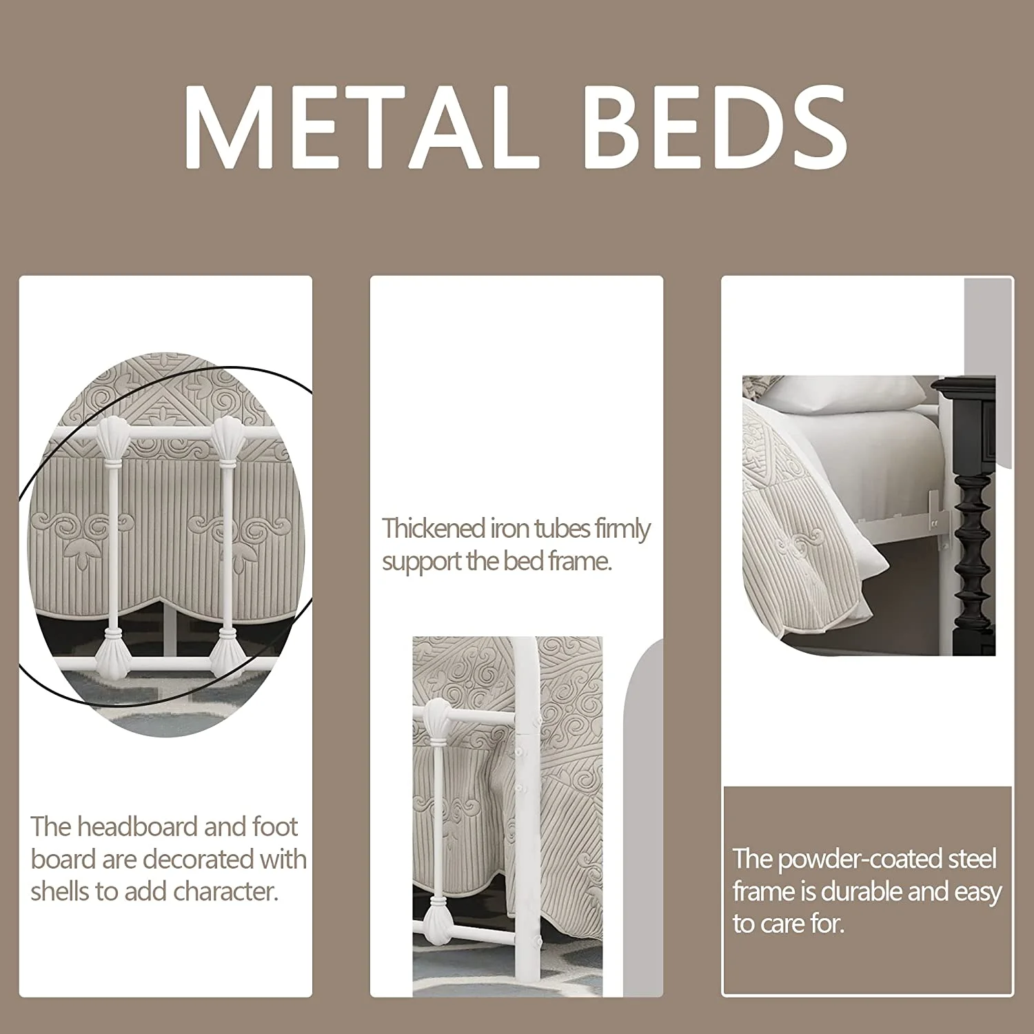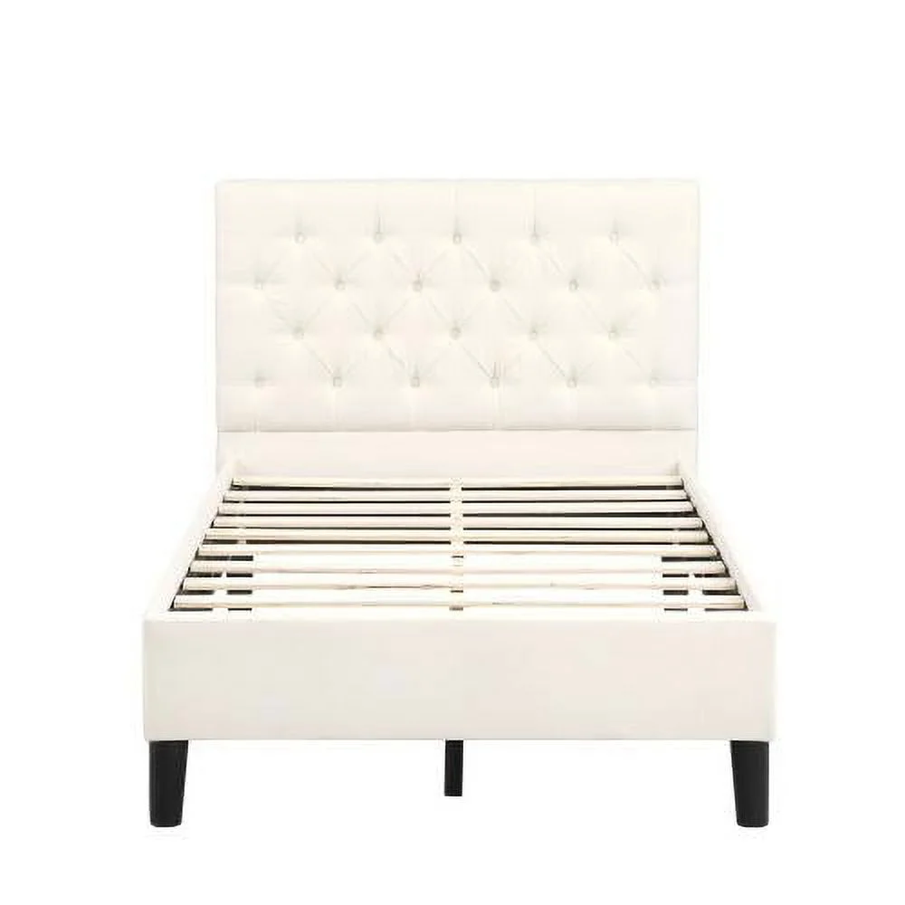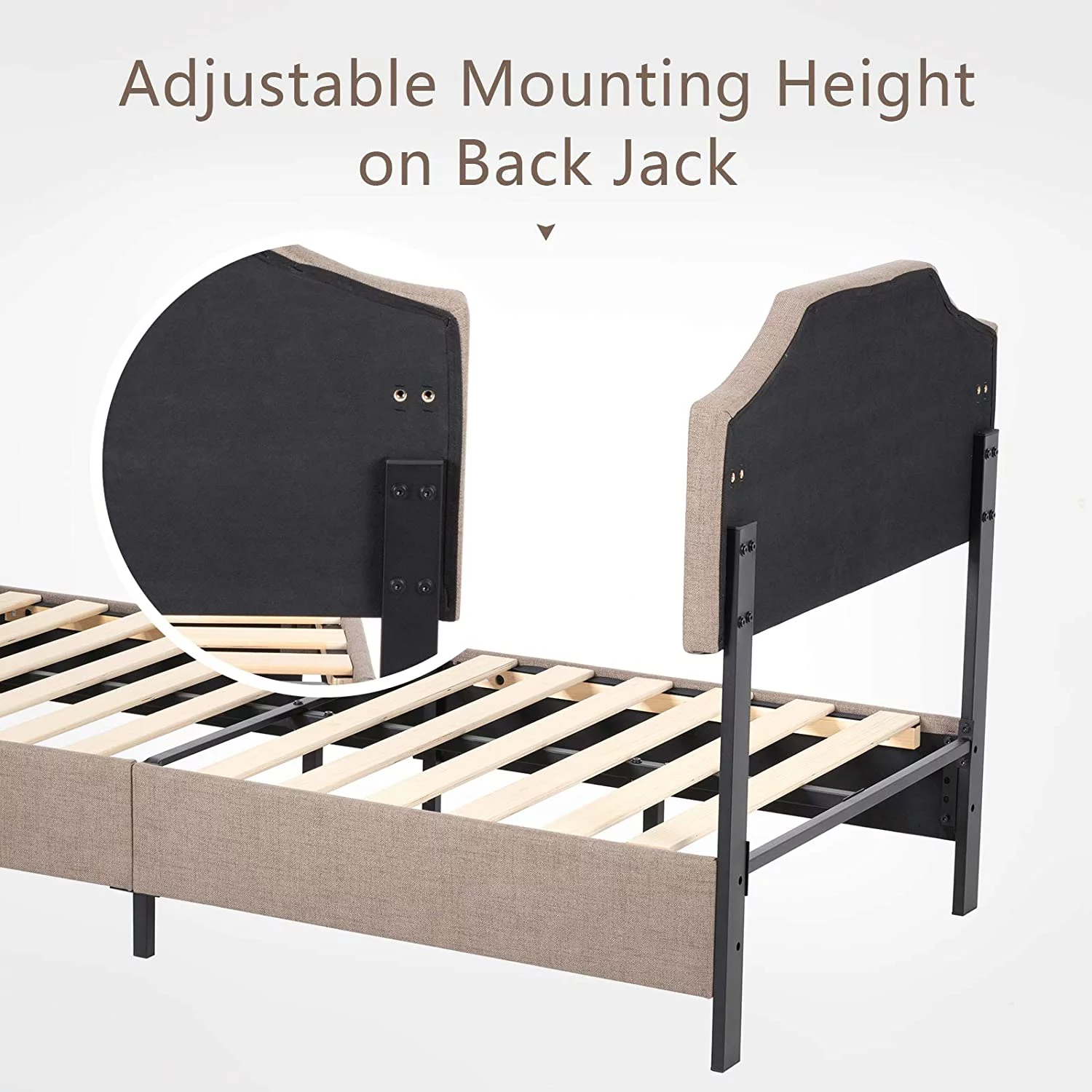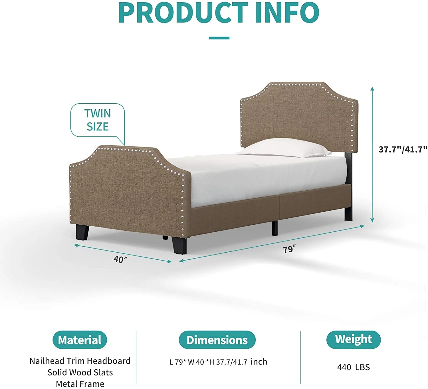 Cosymart Twin Size Upholstered Platform Bed with Bear-shaped Headboard and Footboard, Brown+White