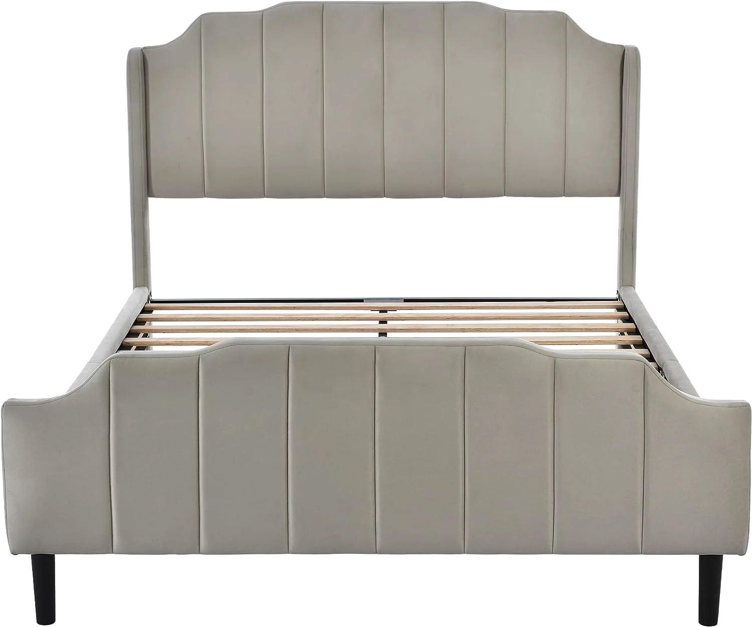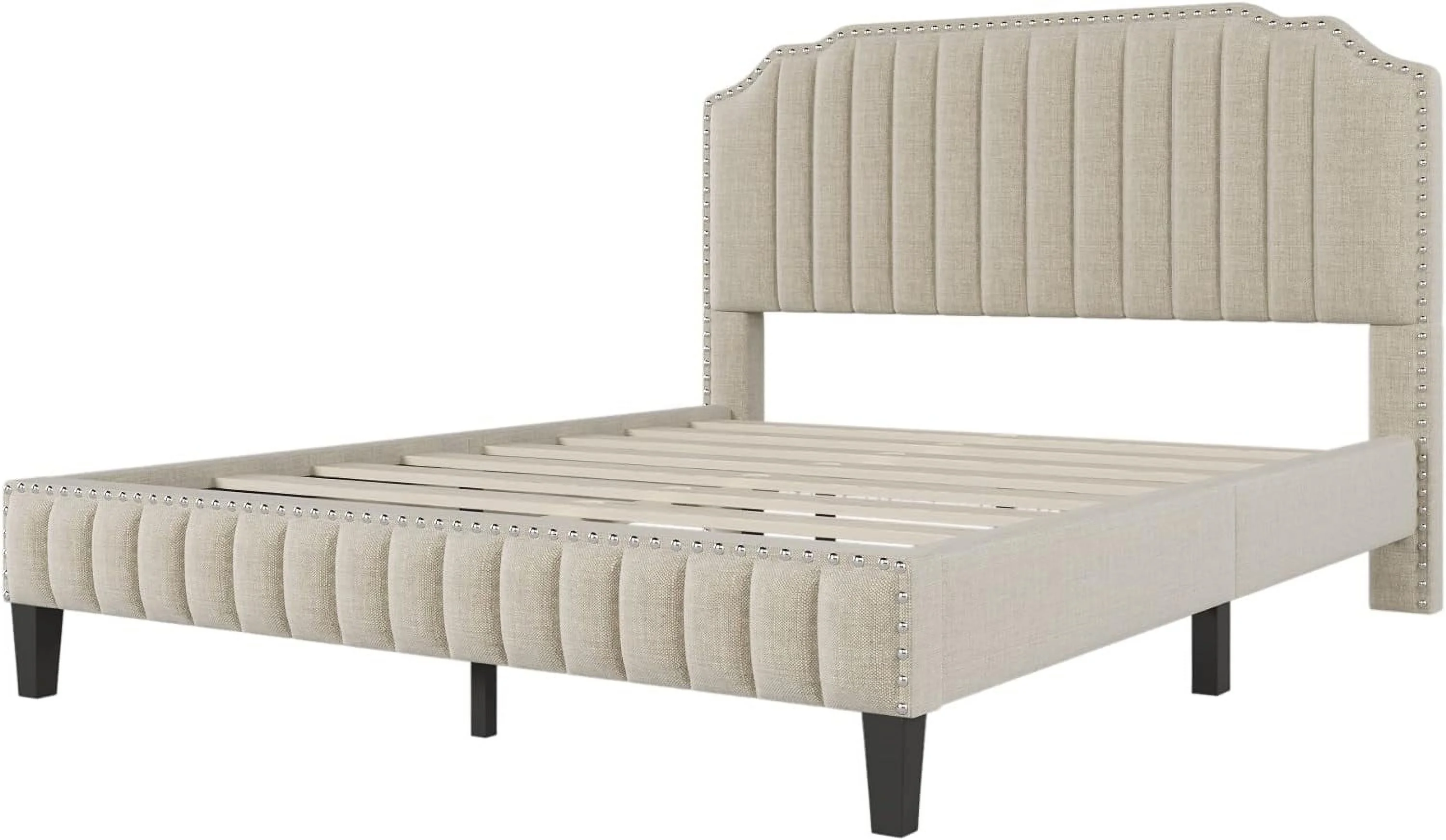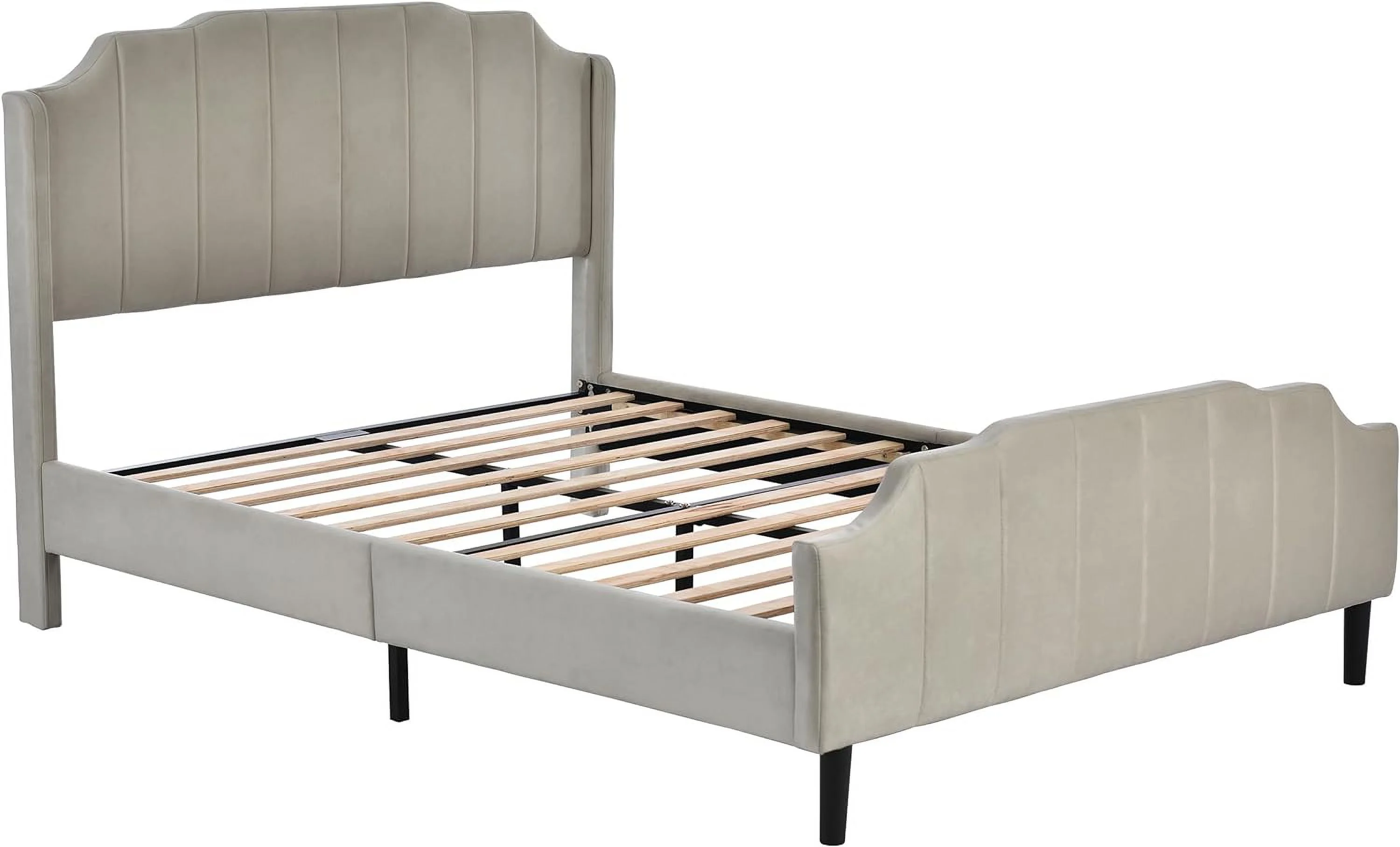 Mid-Century All-in-One King Bed with Channeled Headboard & Footboard in Dupree Steel