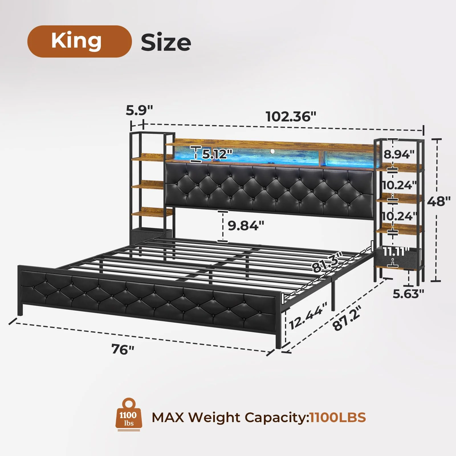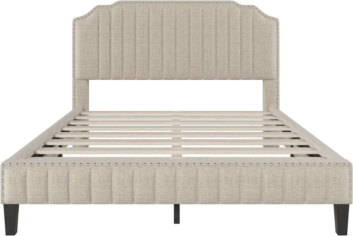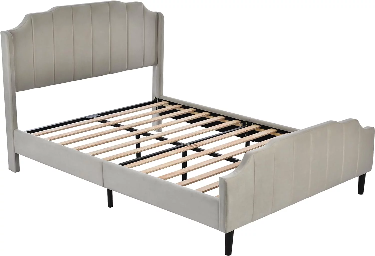 Mid-Century All-in-One King Bed with Channeled Headboard & Footboard in Dupree Steel