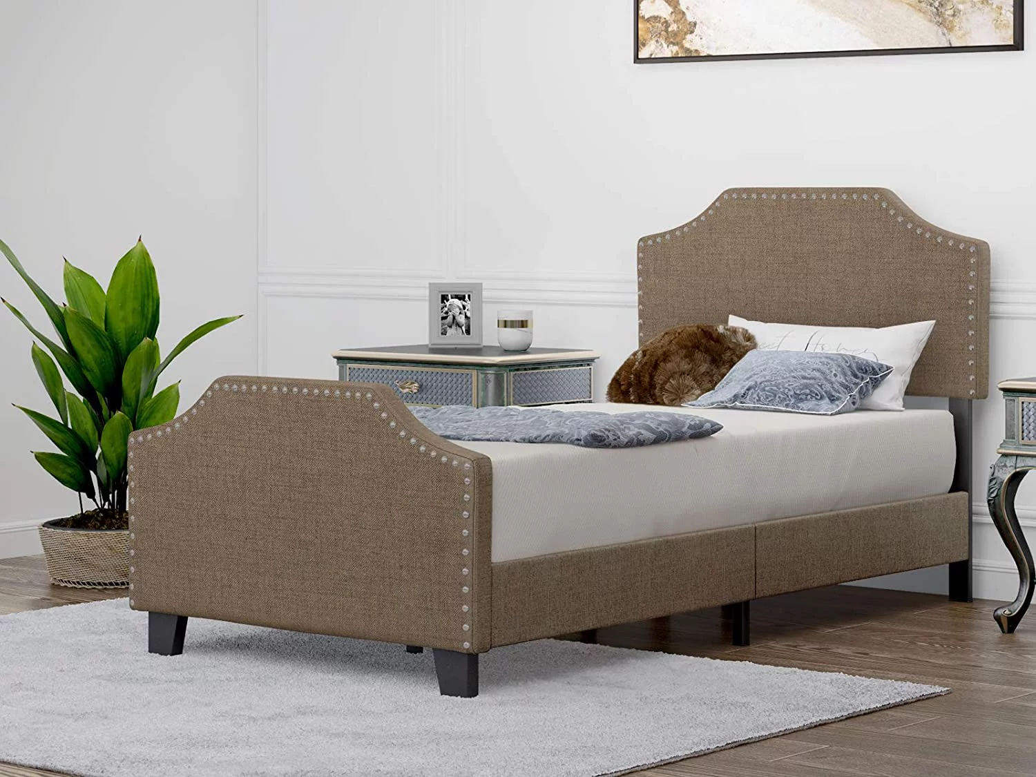 ACME Furniture Rosanna Light Brown Fabric King Bed with Headboard and Footboard (Box 1 of 2)