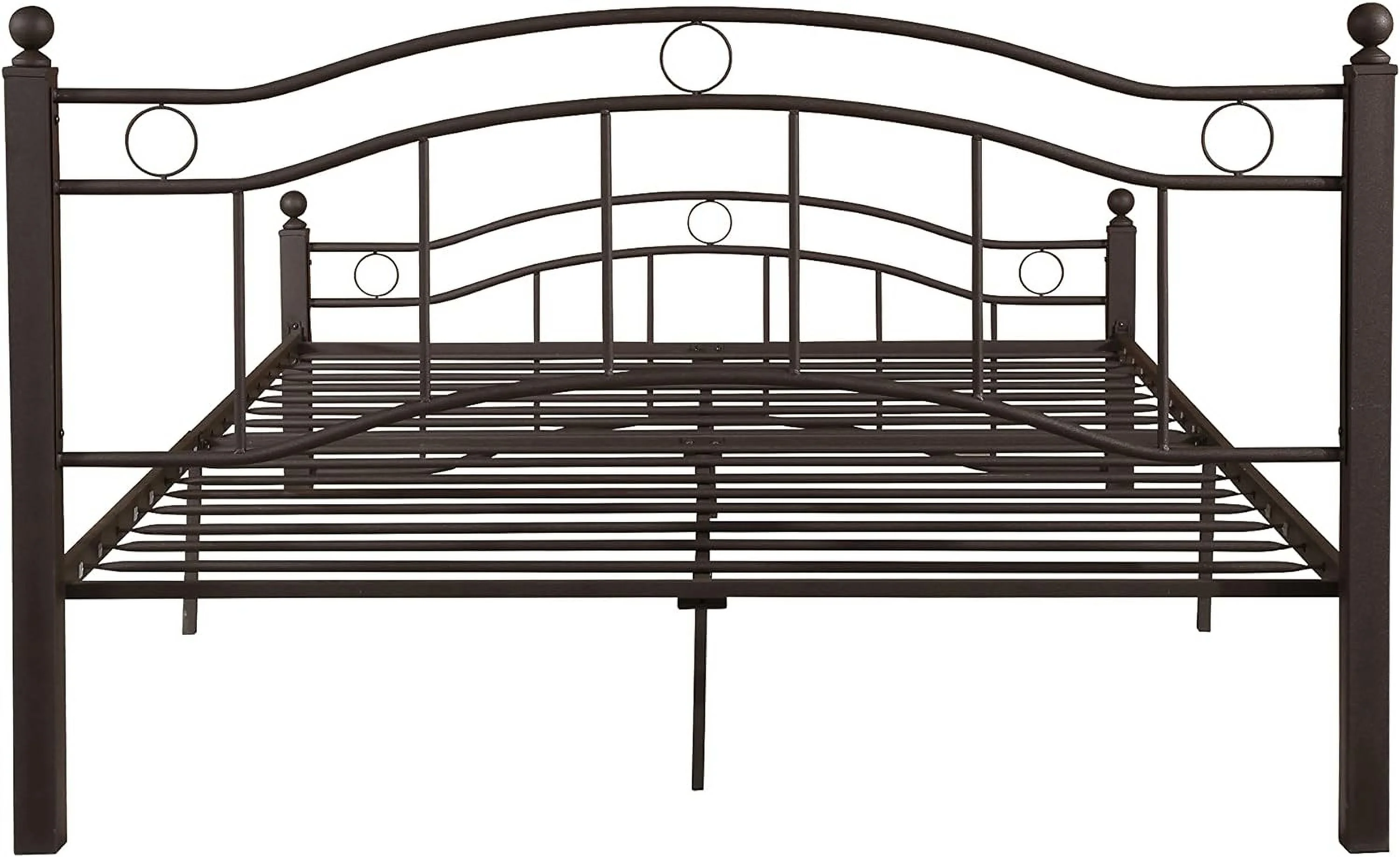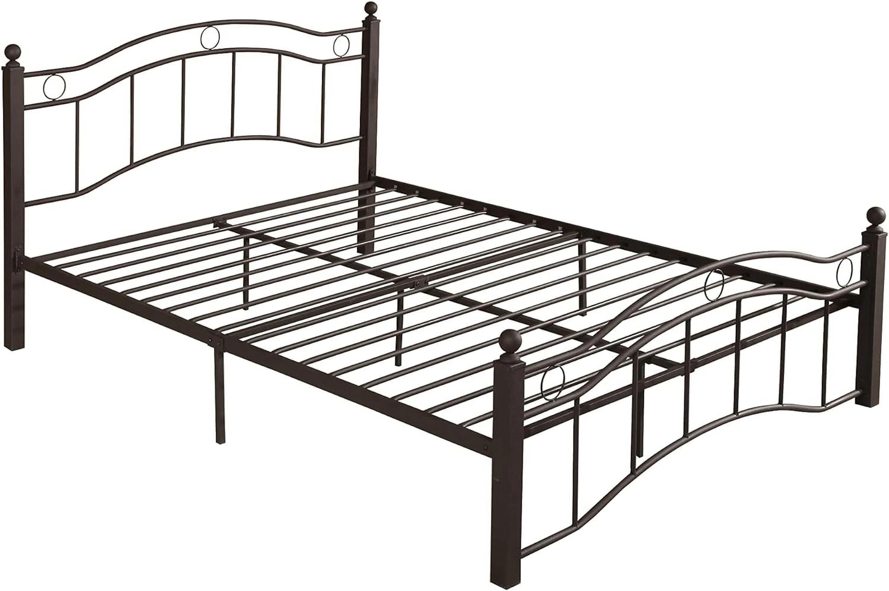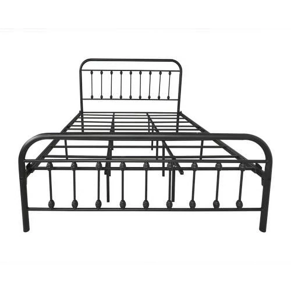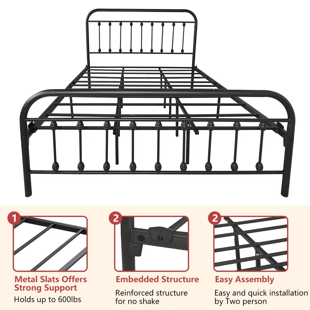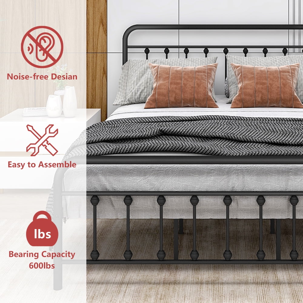 Smile Mart Metal Platform Bed with Vintage Headboard and Footboard, King, White