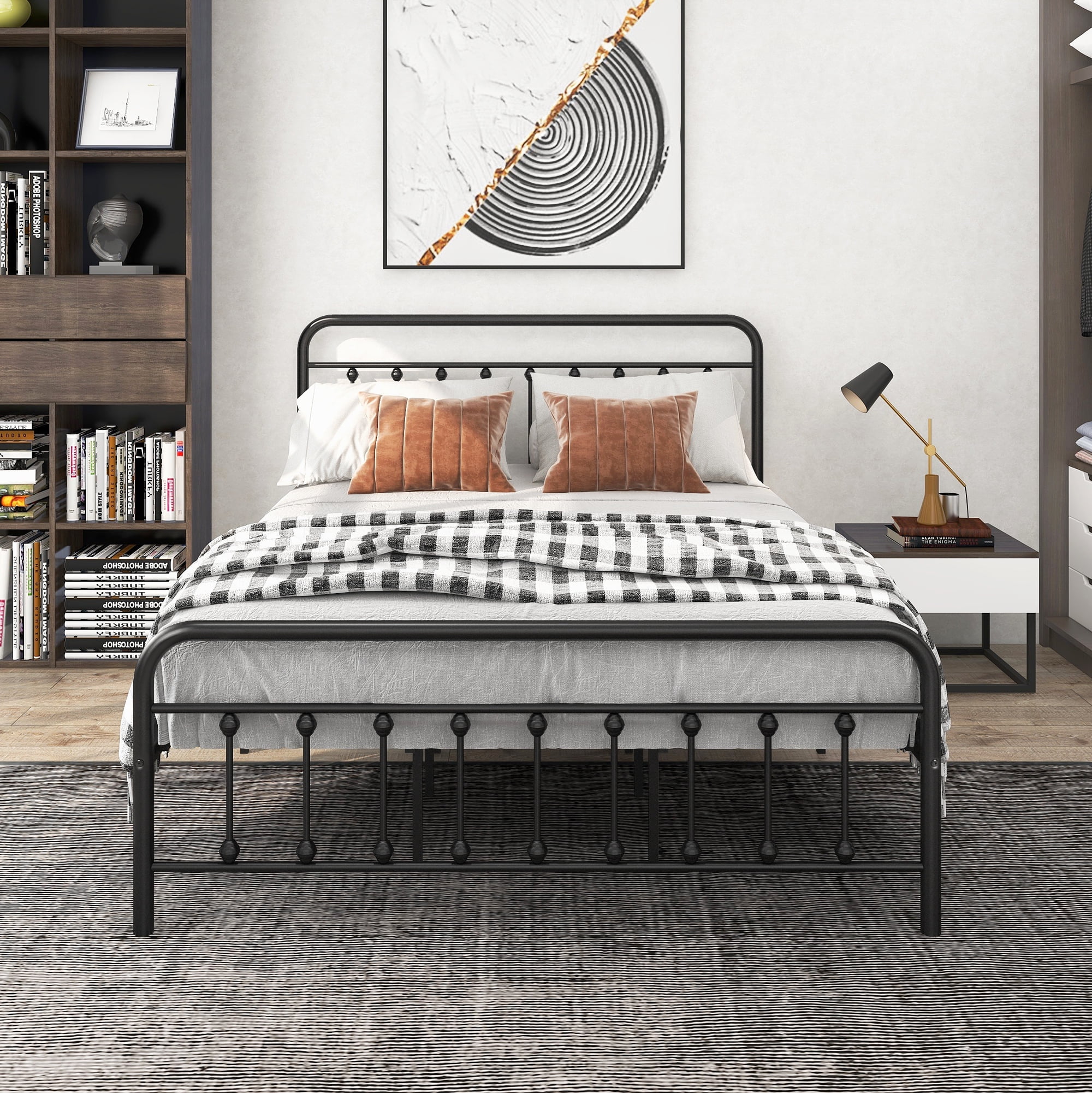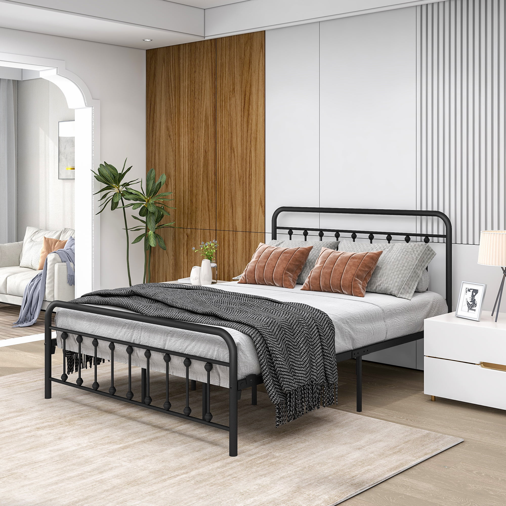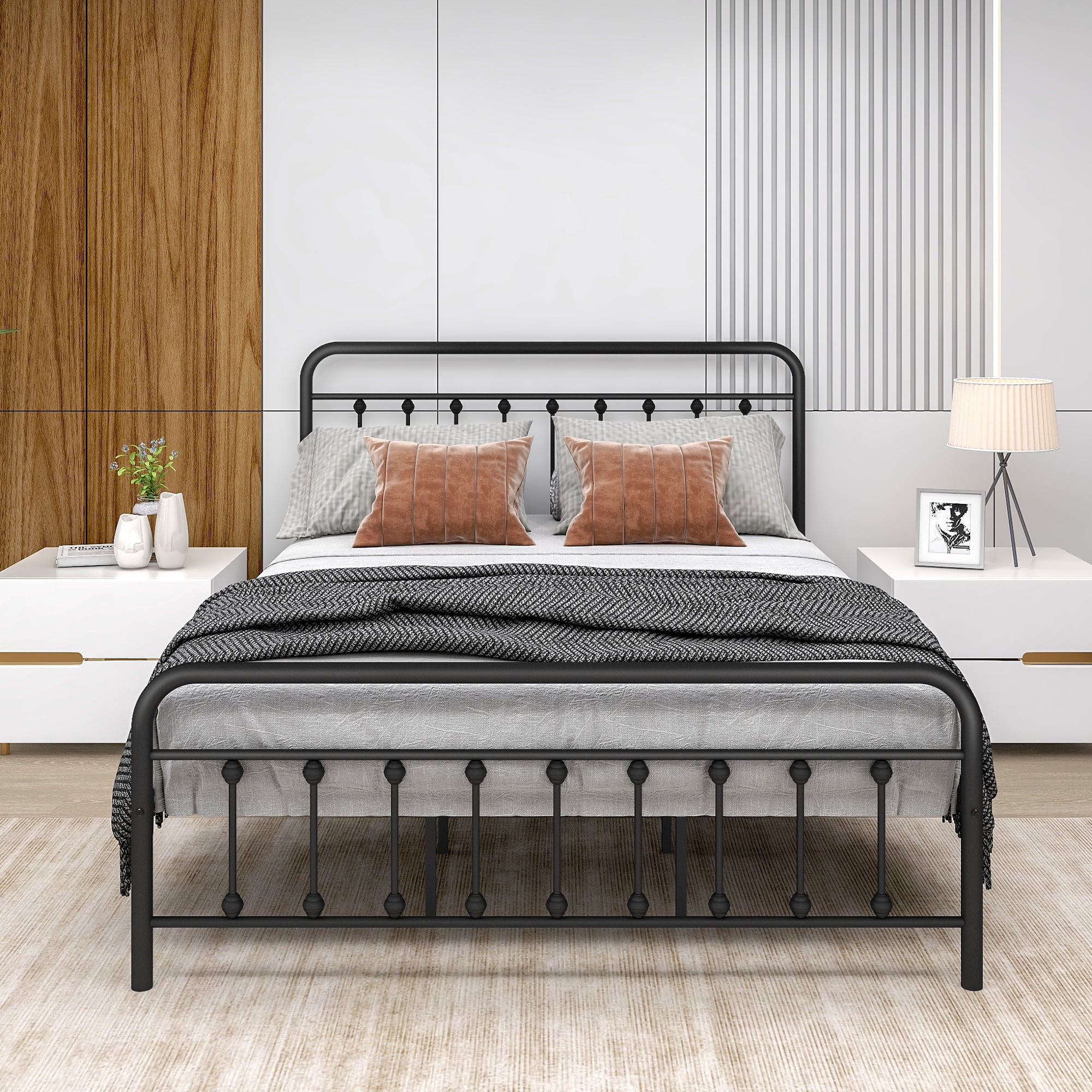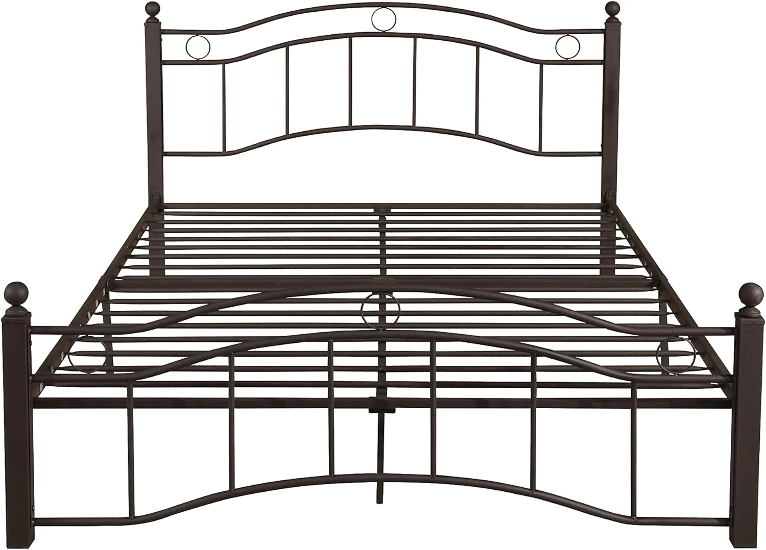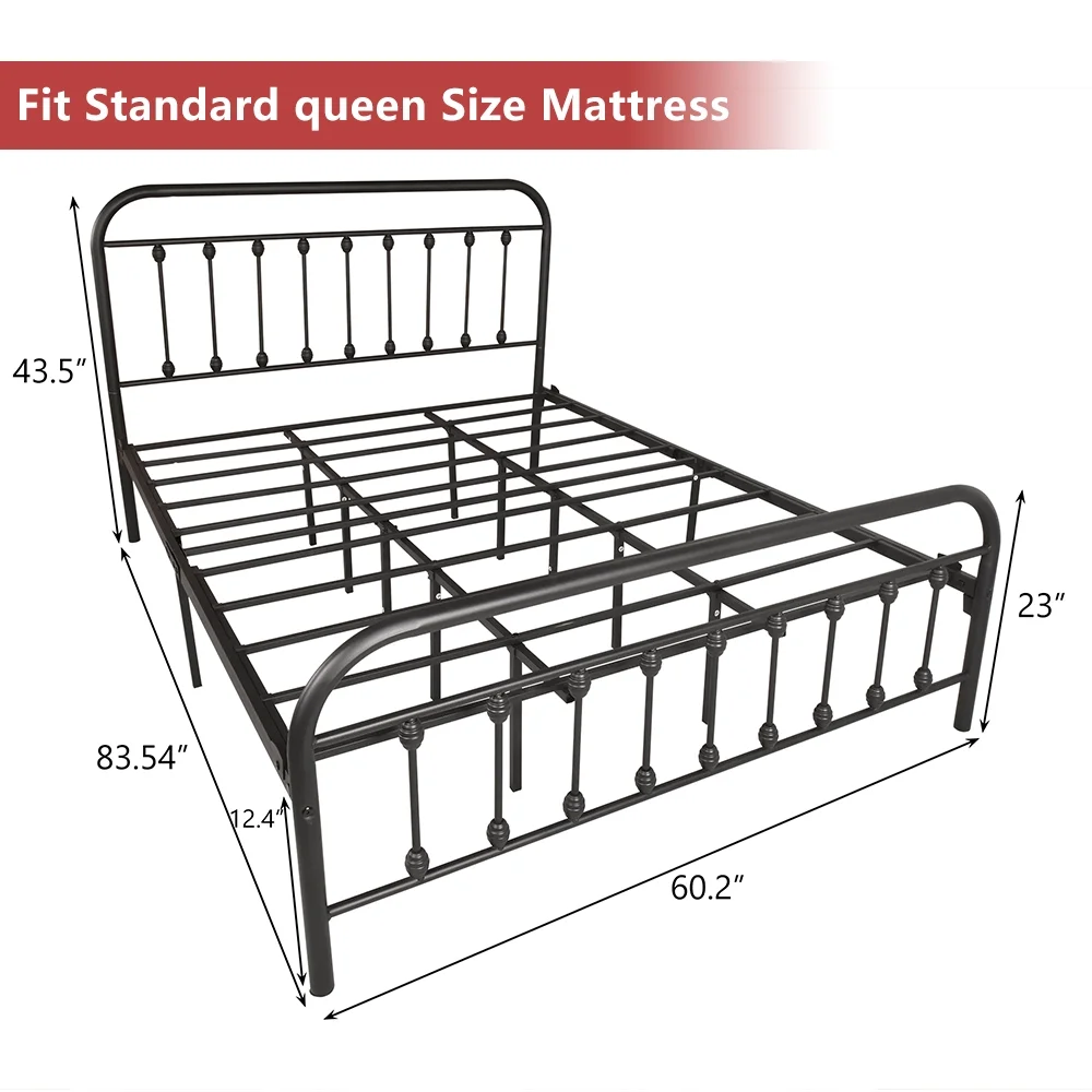 Smile Mart Metal Platform Bed with Vintage Headboard and Footboard, King, White