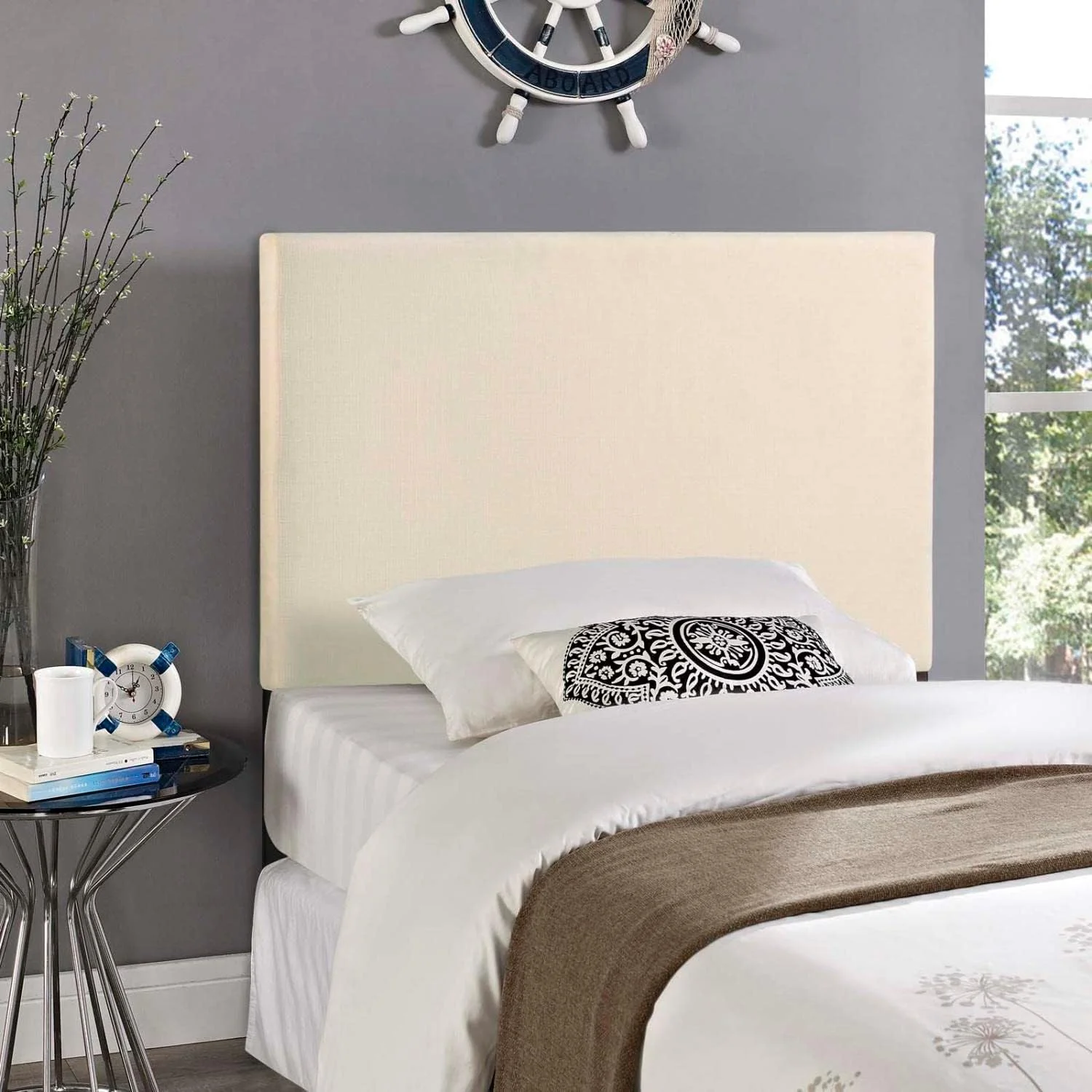 Jessamine Upholstered Fabric Headboard Size With Nailhead Trim In Azure,