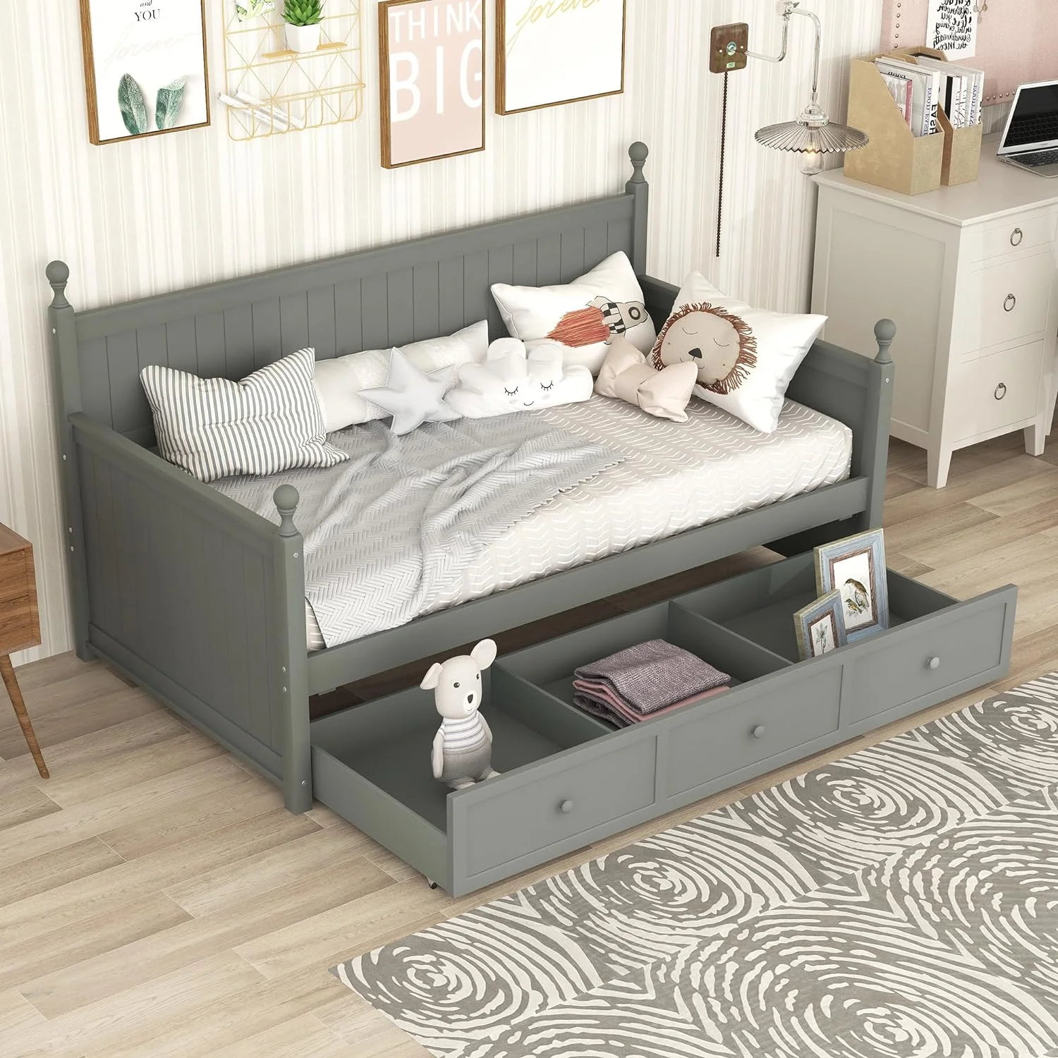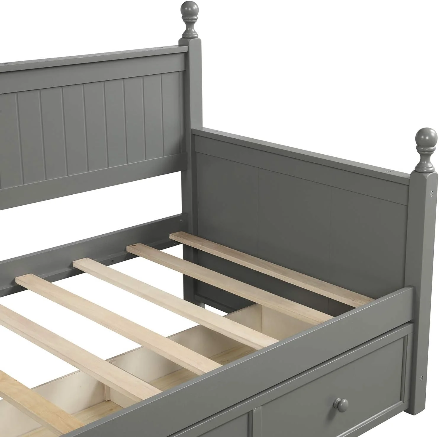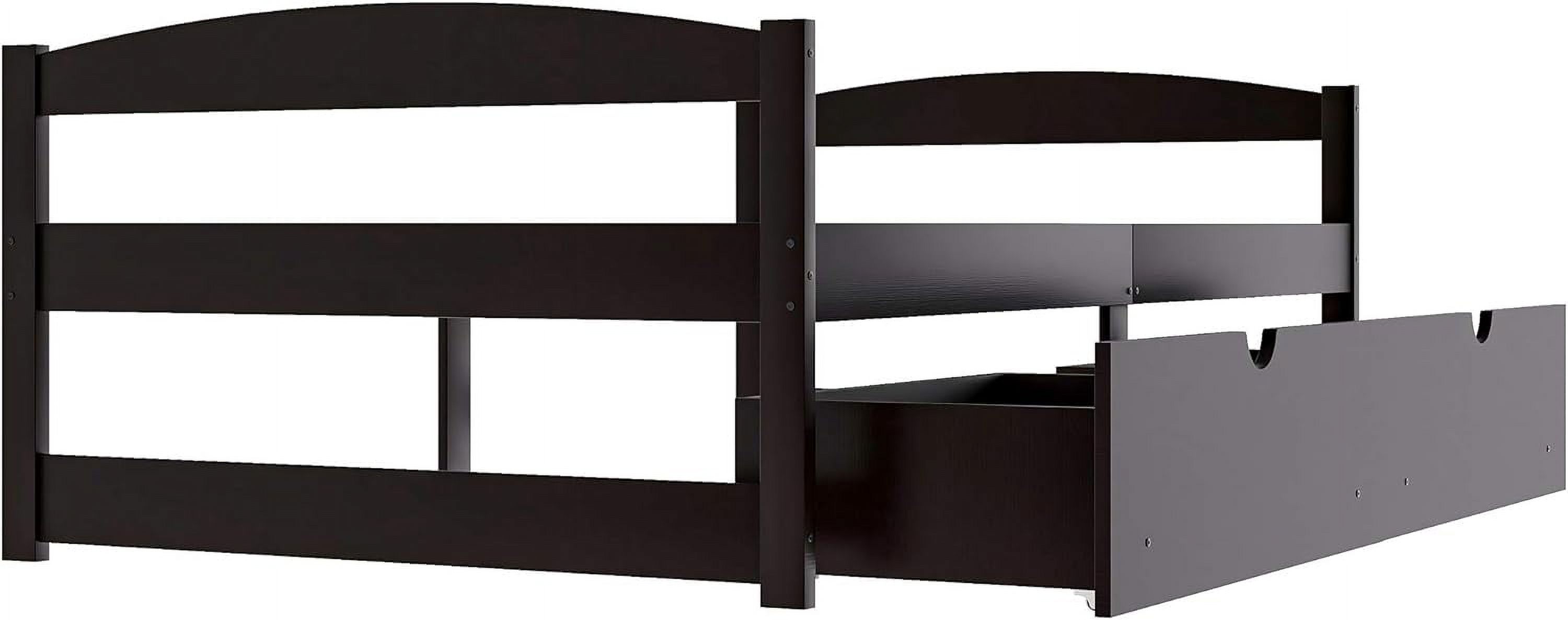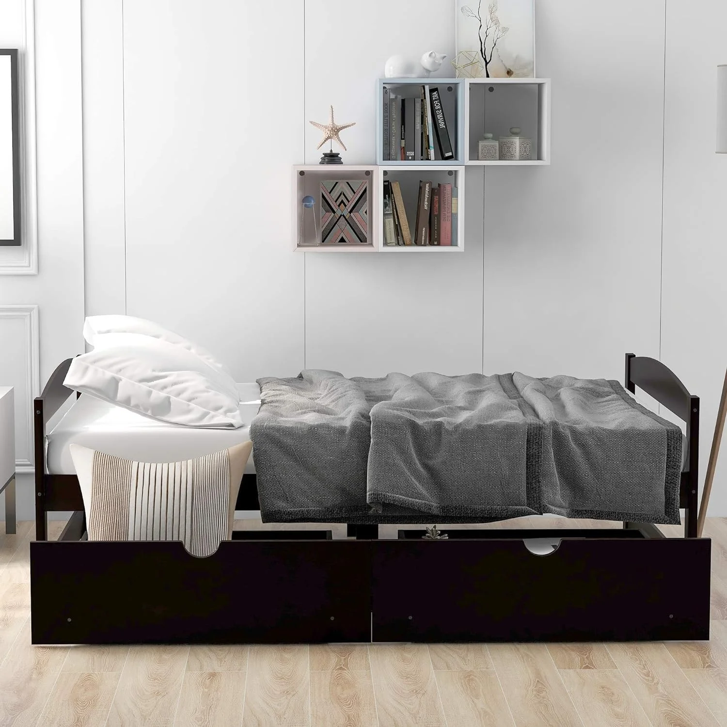 Size Platform Bed With Two Drawers, Solid Wood Daybed Frame For Bedroom Guest Room, No Box Spring Needed (Espresso)