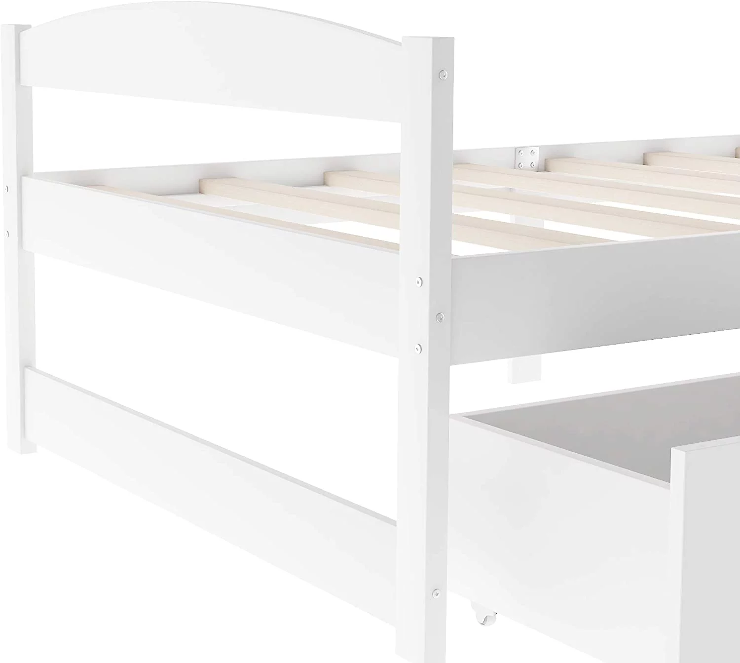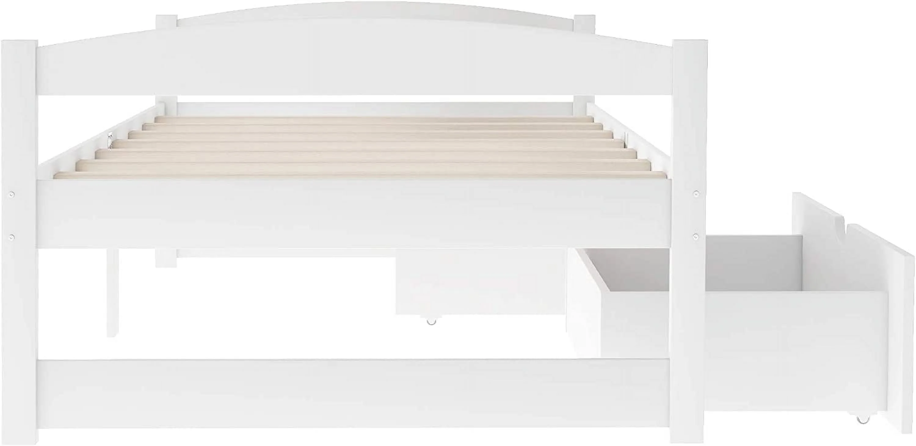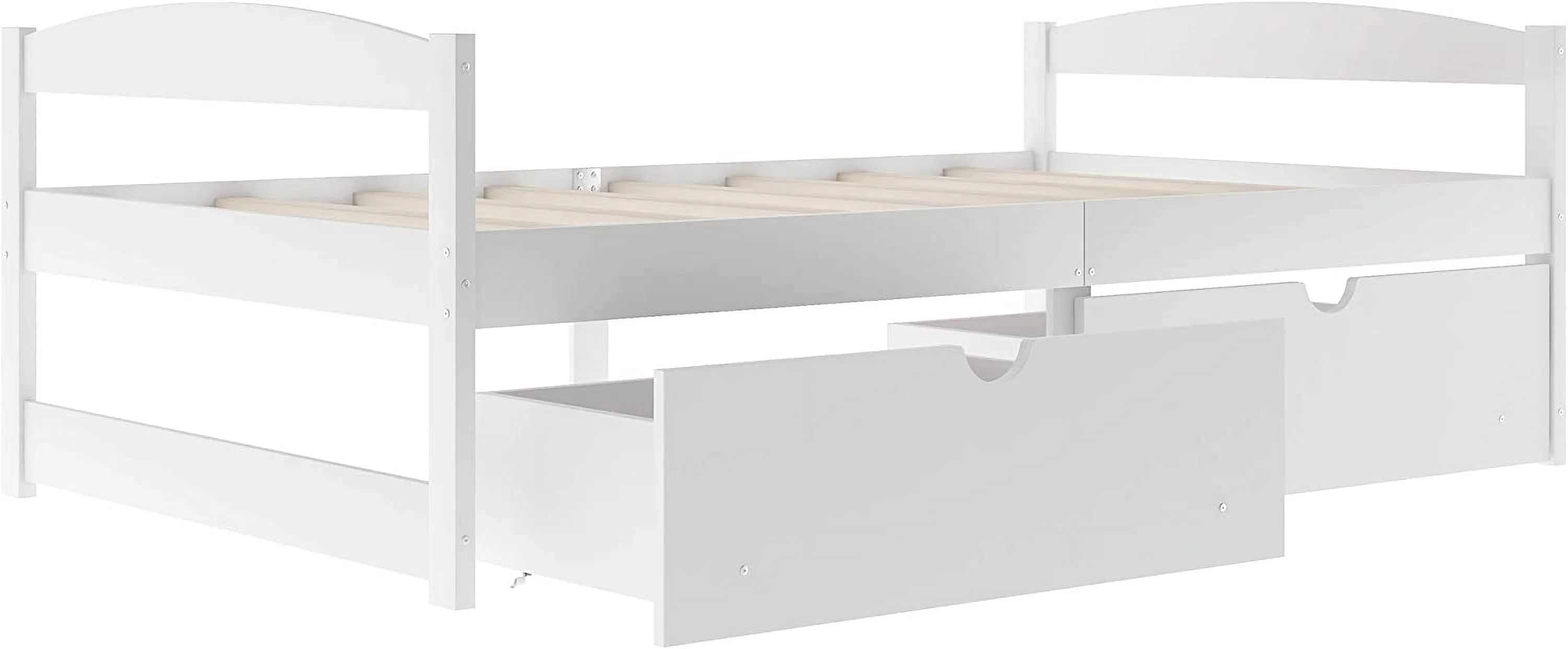 Size Platform Bed With Two Drawers, Solid Wood Daybed Frame For Bedroom Guest Room, No Box Spring Needed (White)
