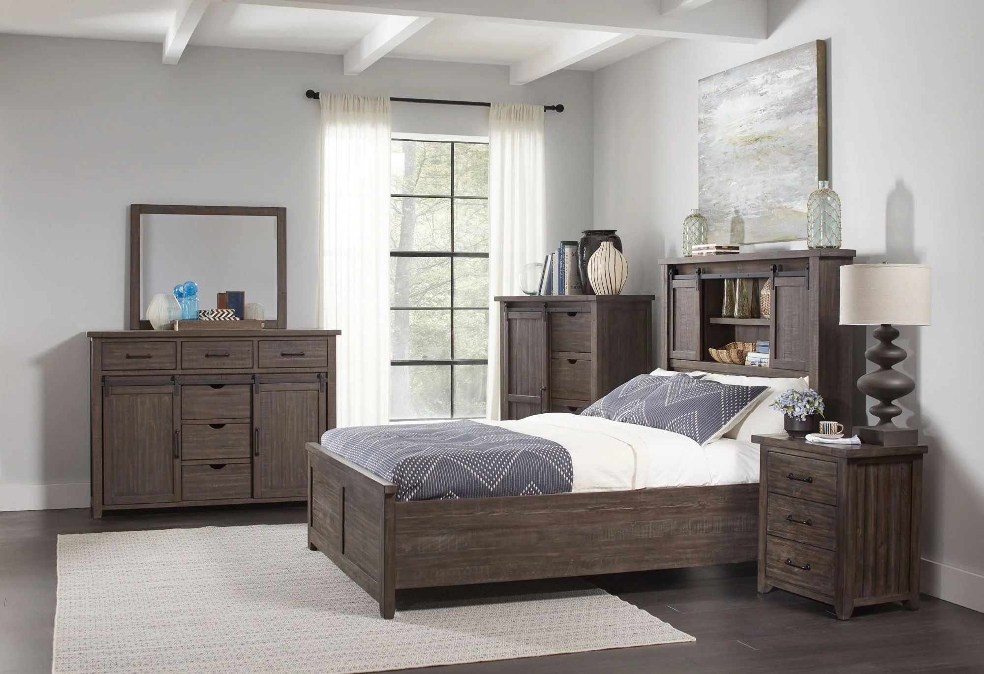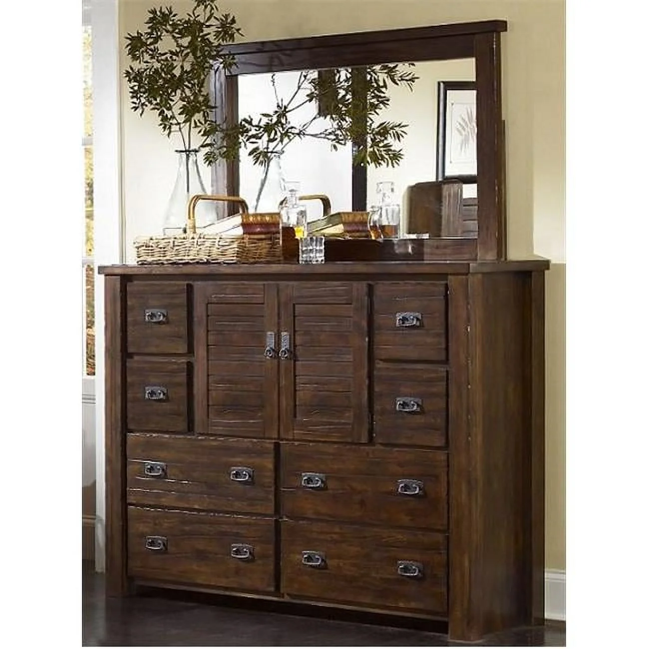 P611-24-50 Trestlewood Dresser & Mirror - Mesquite Pine - 79in. H x 60in. W x 19in. D