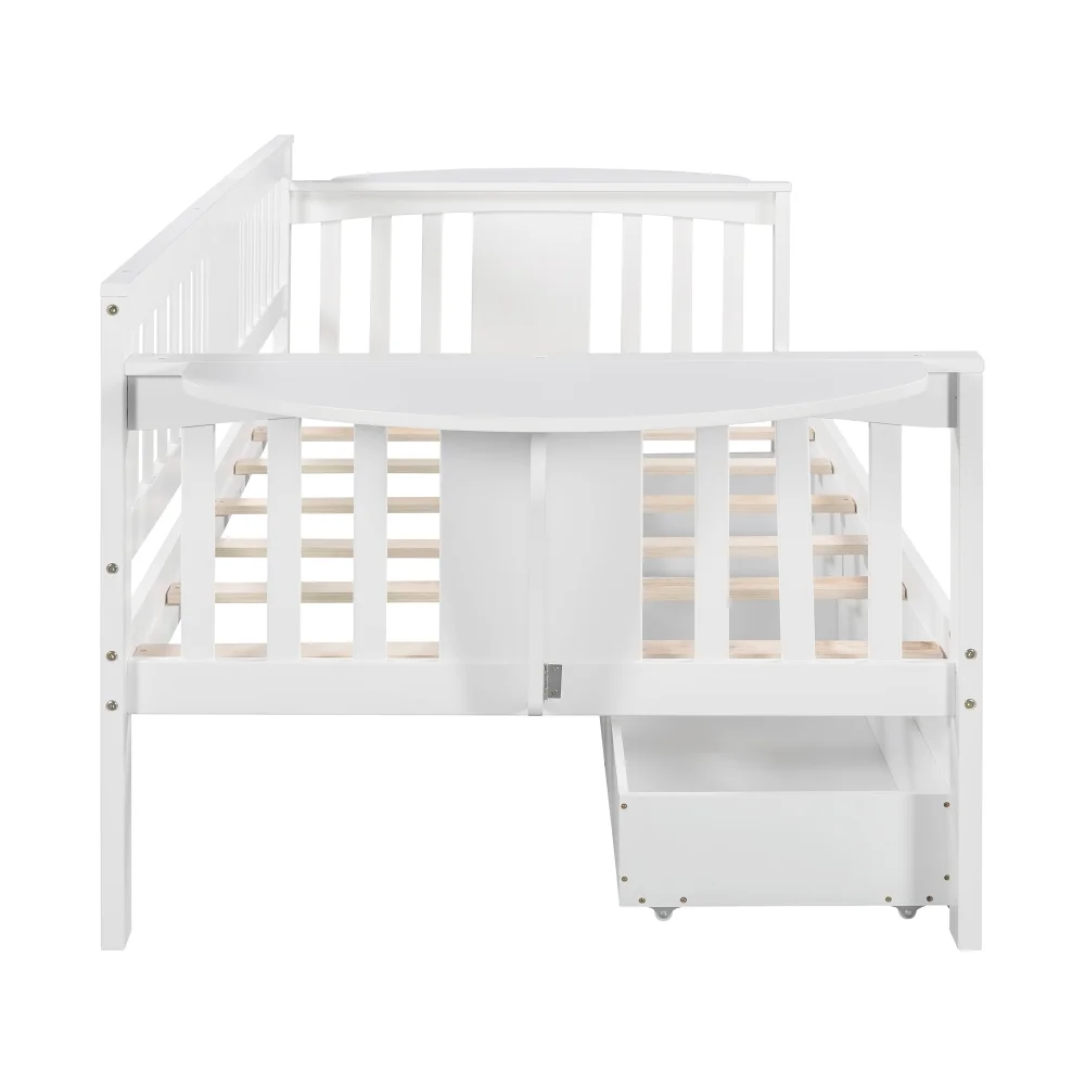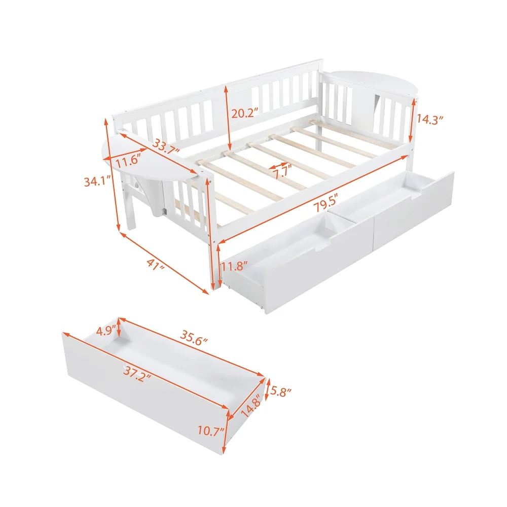Teledu Twin Size Daybed With Two Drawers, Wood Slat Support, White 2-Number Of Package