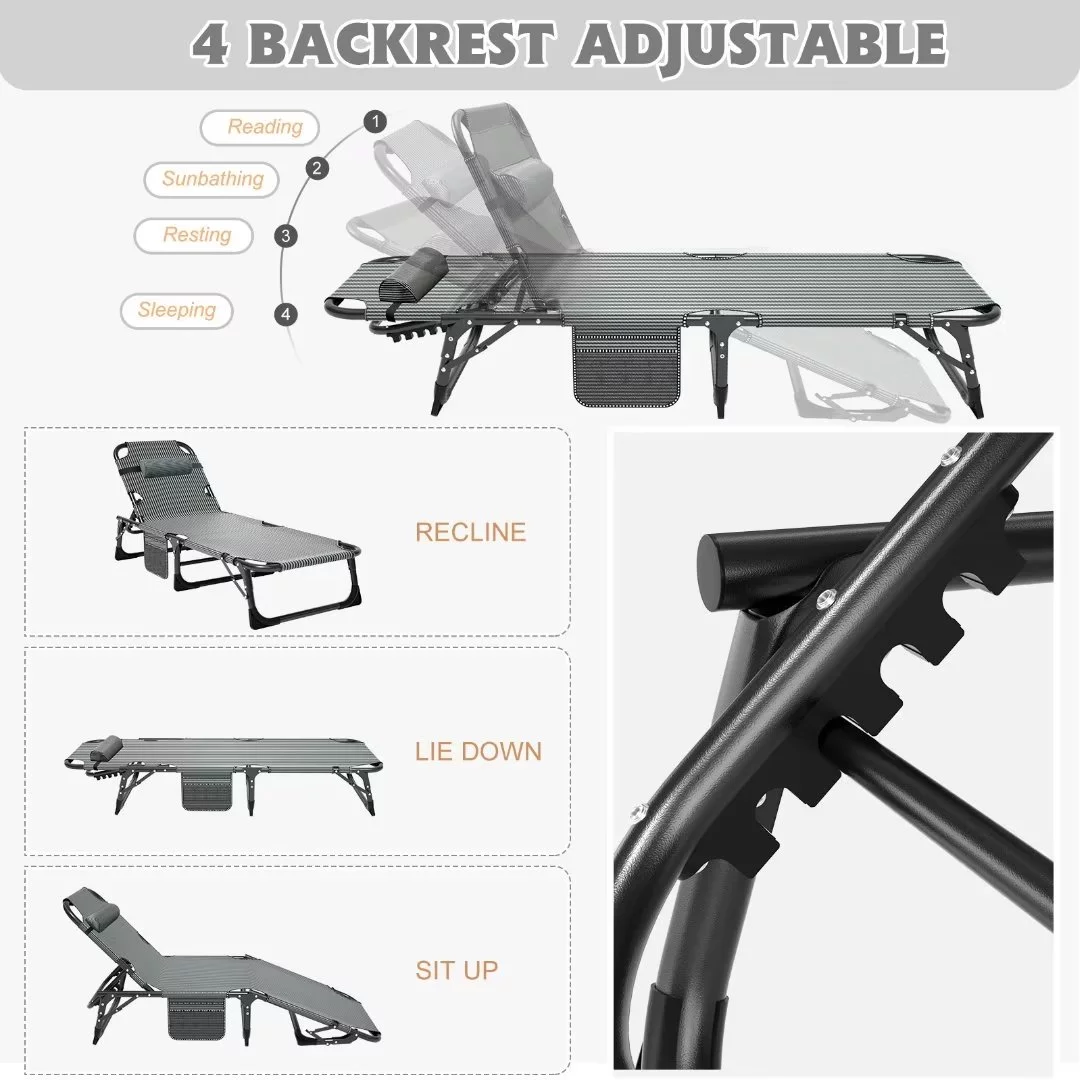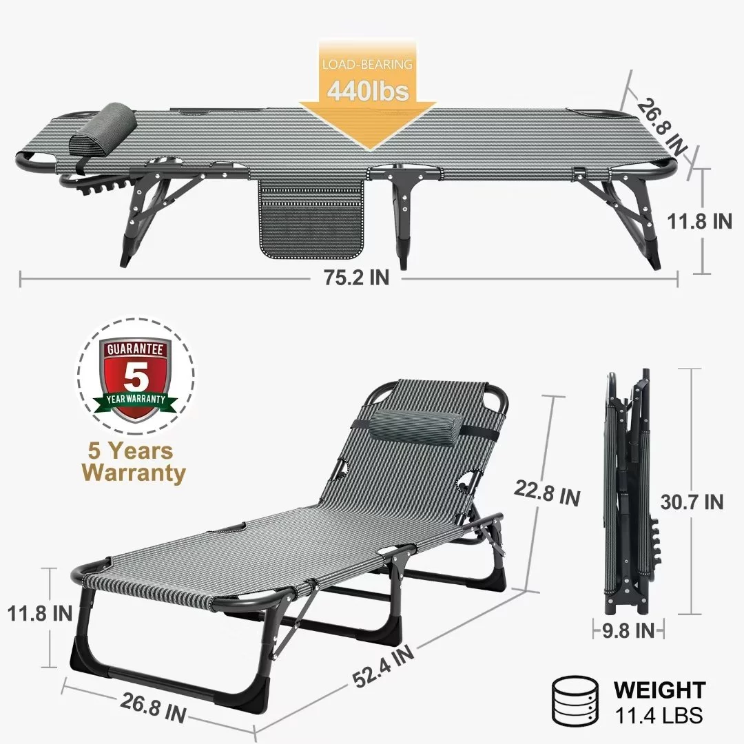 Docred Adjustable 4-Position Camping Cots for Adults & Kids, Folding Sleeping Cot with 2-Sided Mattress & Pillow
