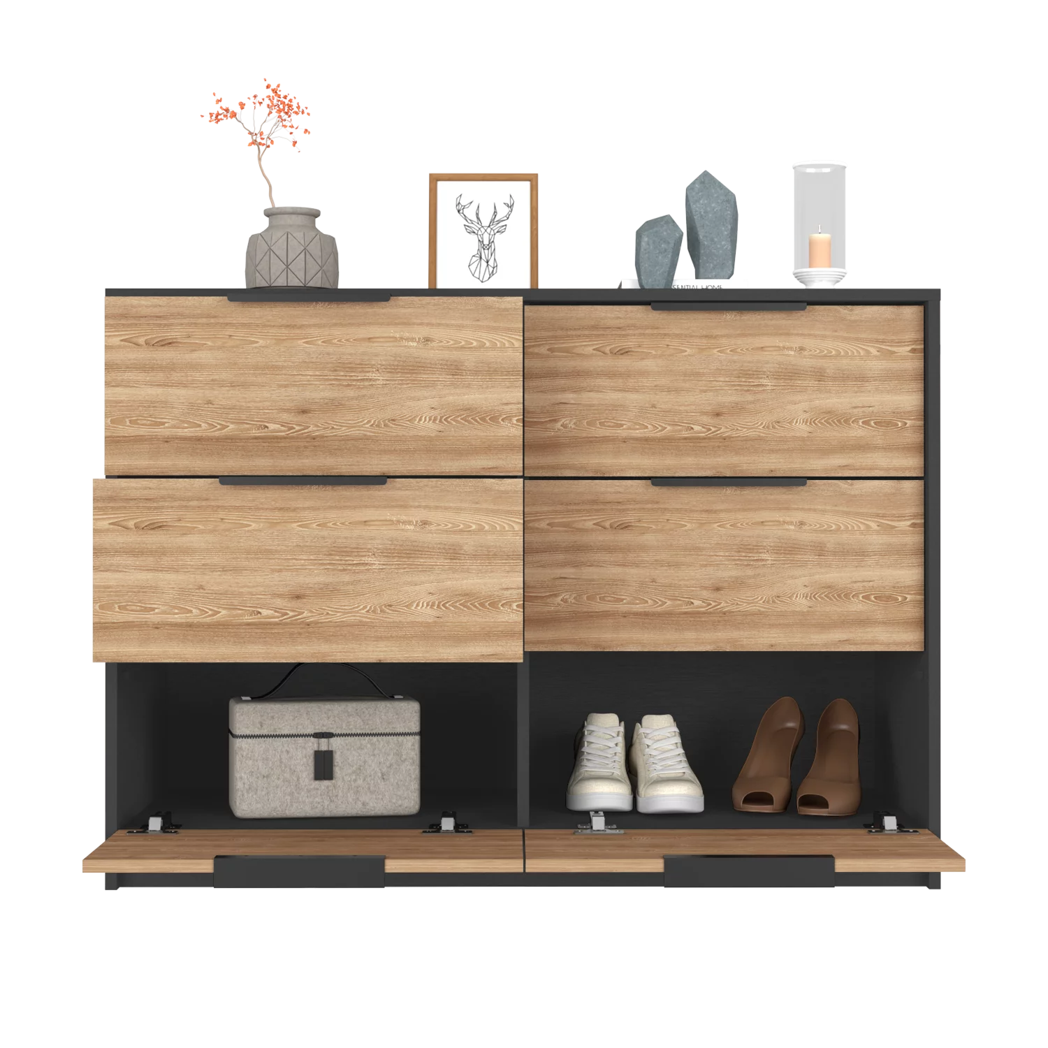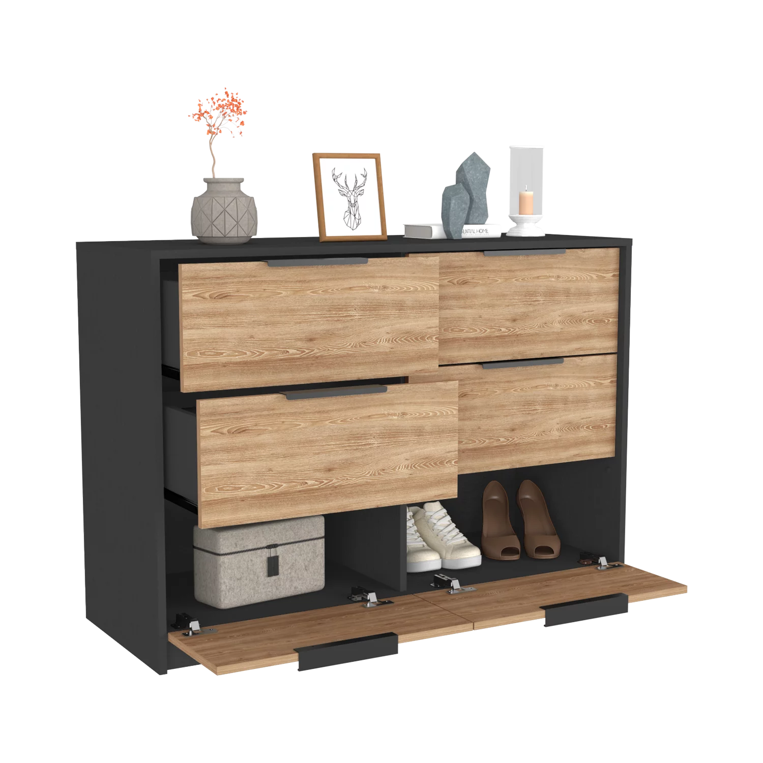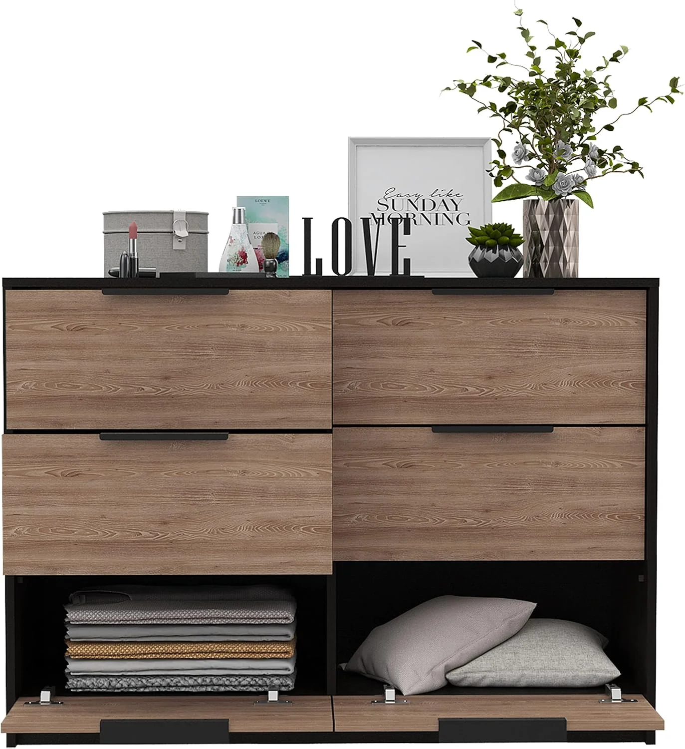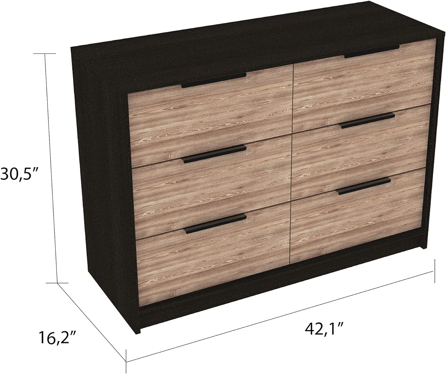 Treevol Furniture, 4 Drawer Double Dresser Maryland, for Adults, Black Wengue / Pine Finish
