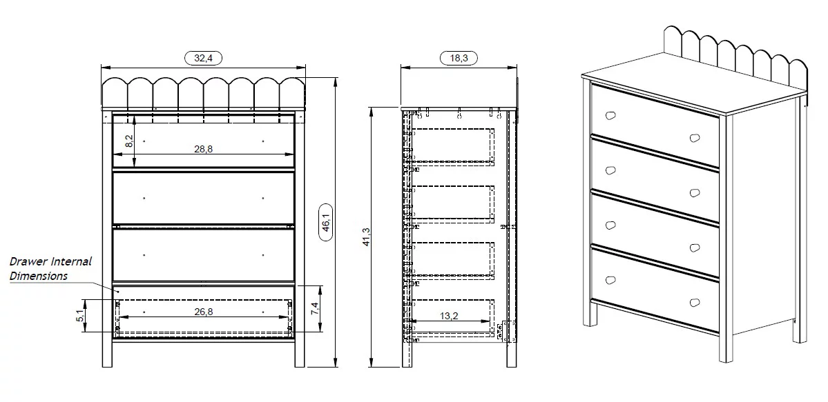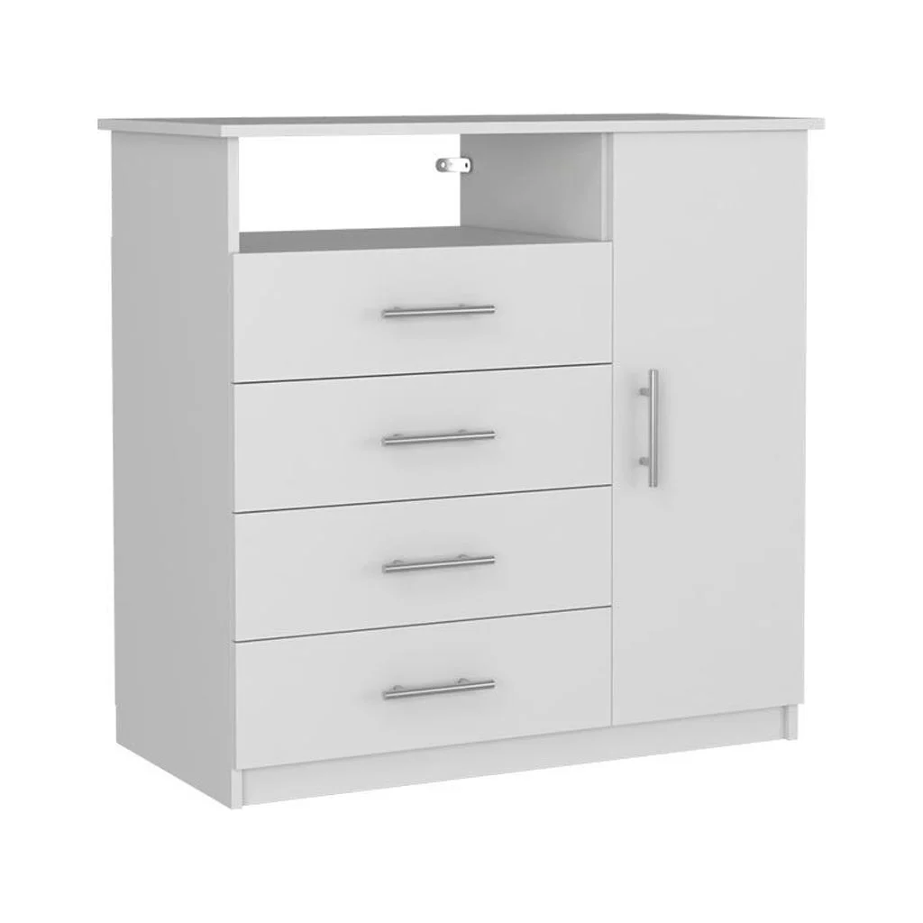 Dcenta Contemporary White 1pc Chest of Drawers Plywood Pine Veneer Bedroom Furniture