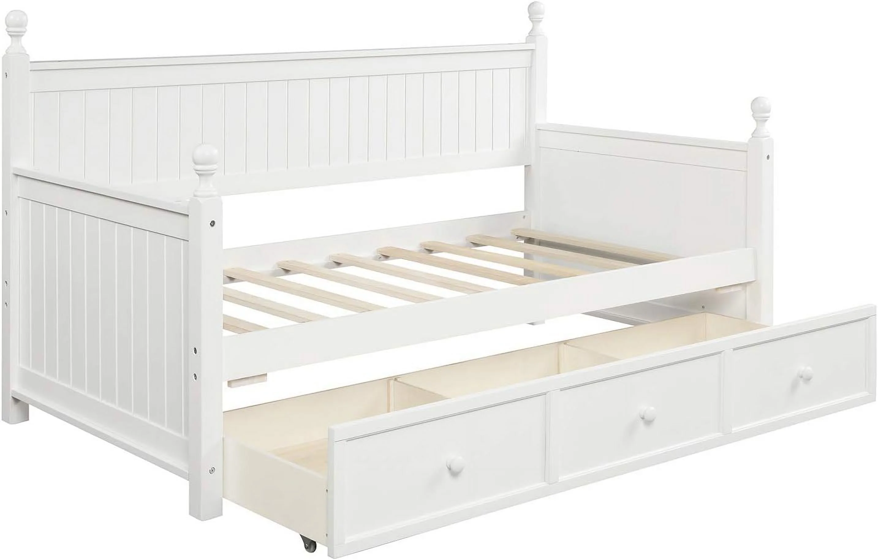 Lzdybed Daybed With 3 Drawers, Wooden Sofa Bed For Bedroom Living Room, No Box Spring Needed,White