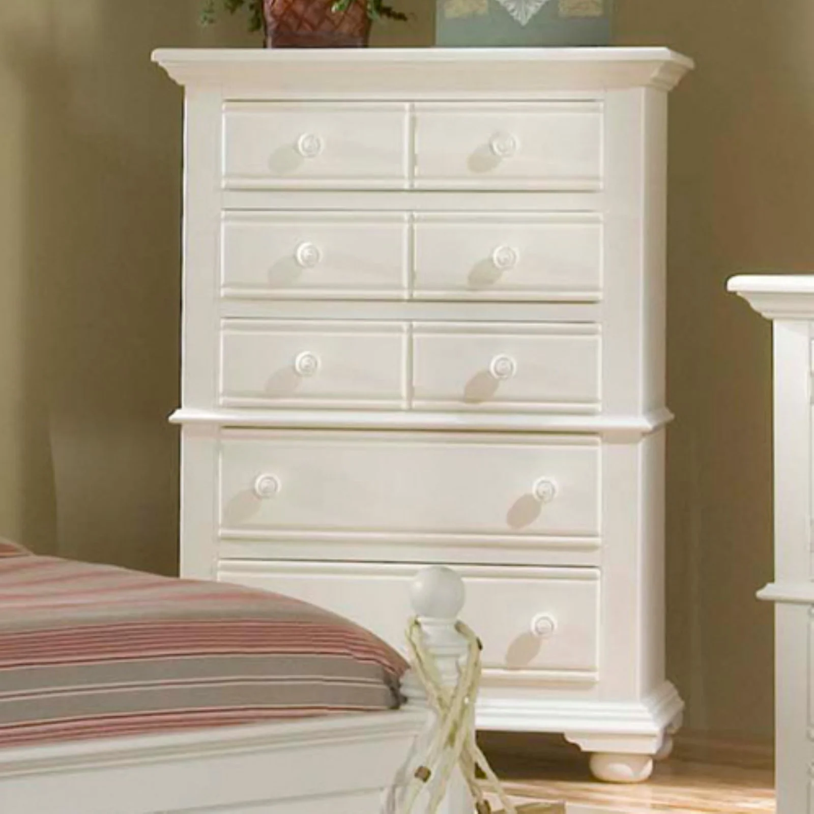 Bornmio Contemporary White 1pc Chest of Drawers Plywood Pine Veneer Bedroom Furniture