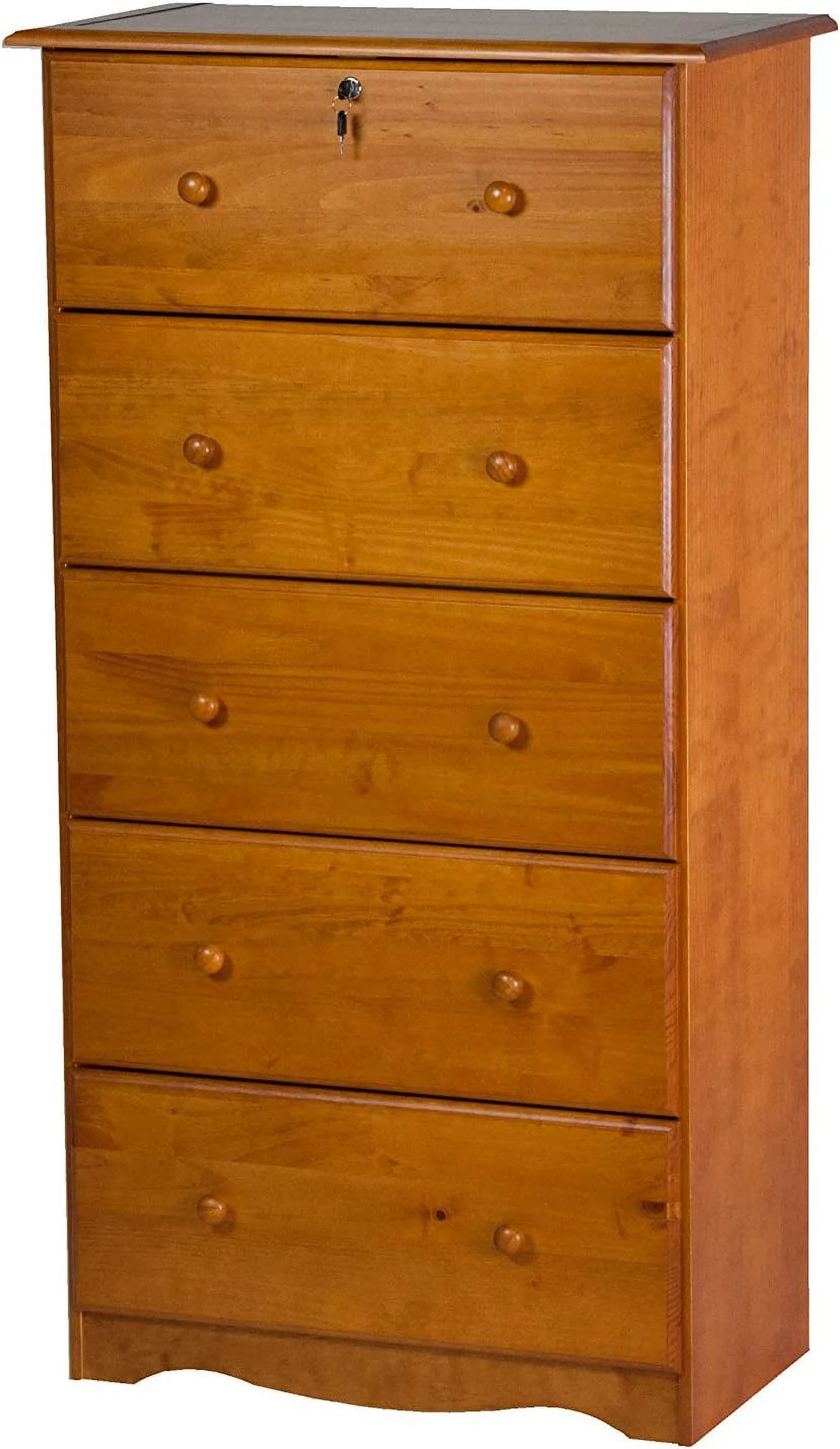 Palace Imports, Inc Palace Imports 100% Solid Wood 5-Jumbo Drawer Chest with Lock, Metal or Wooden Knobs Honey Pine