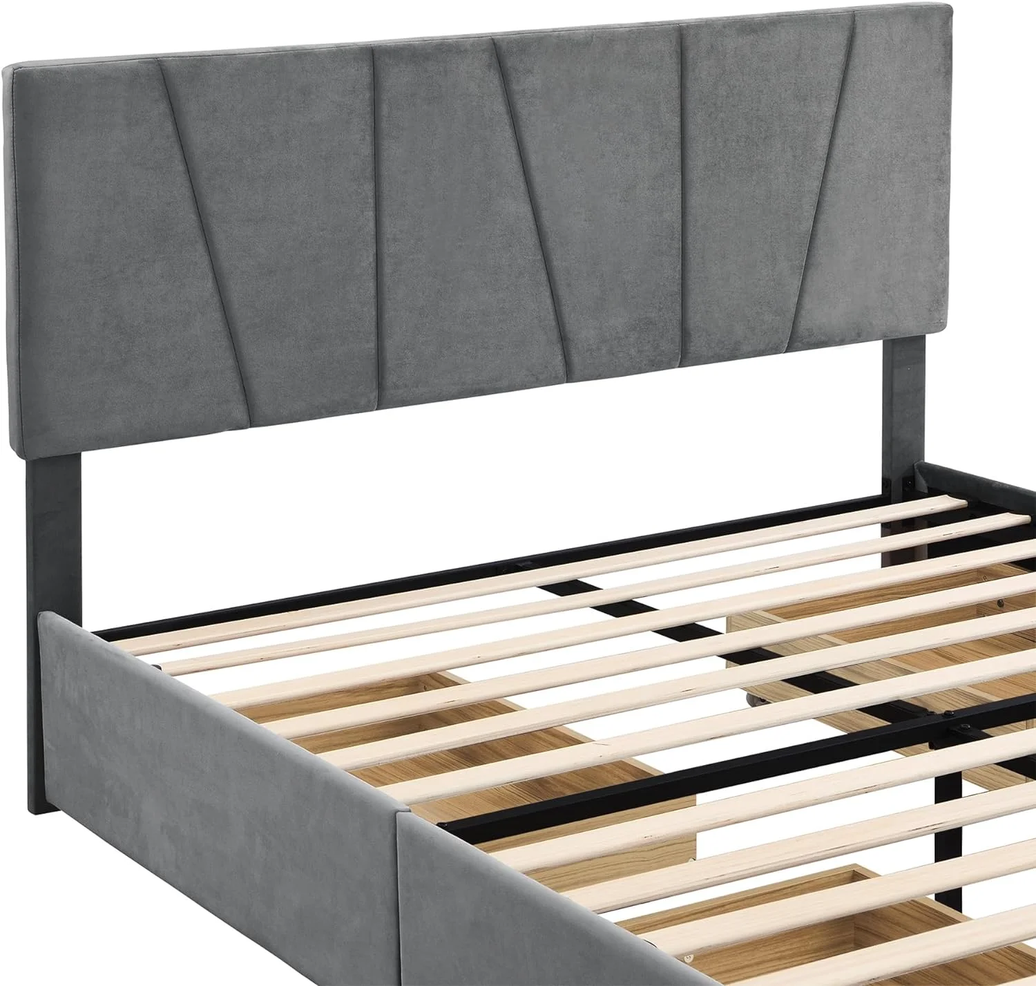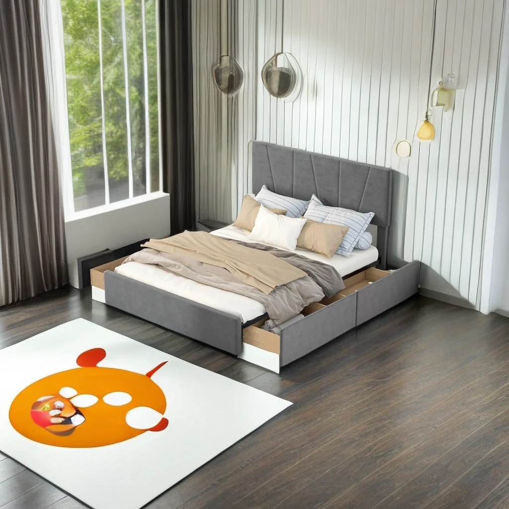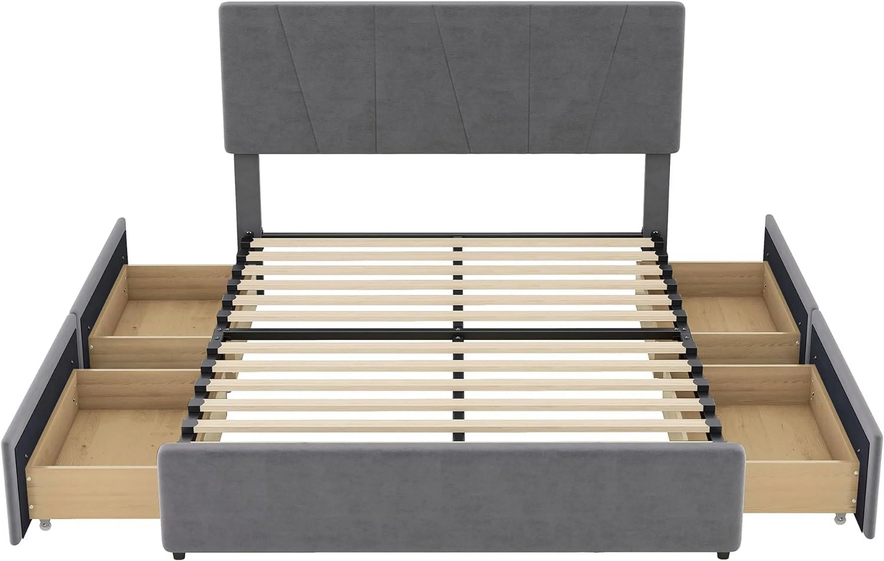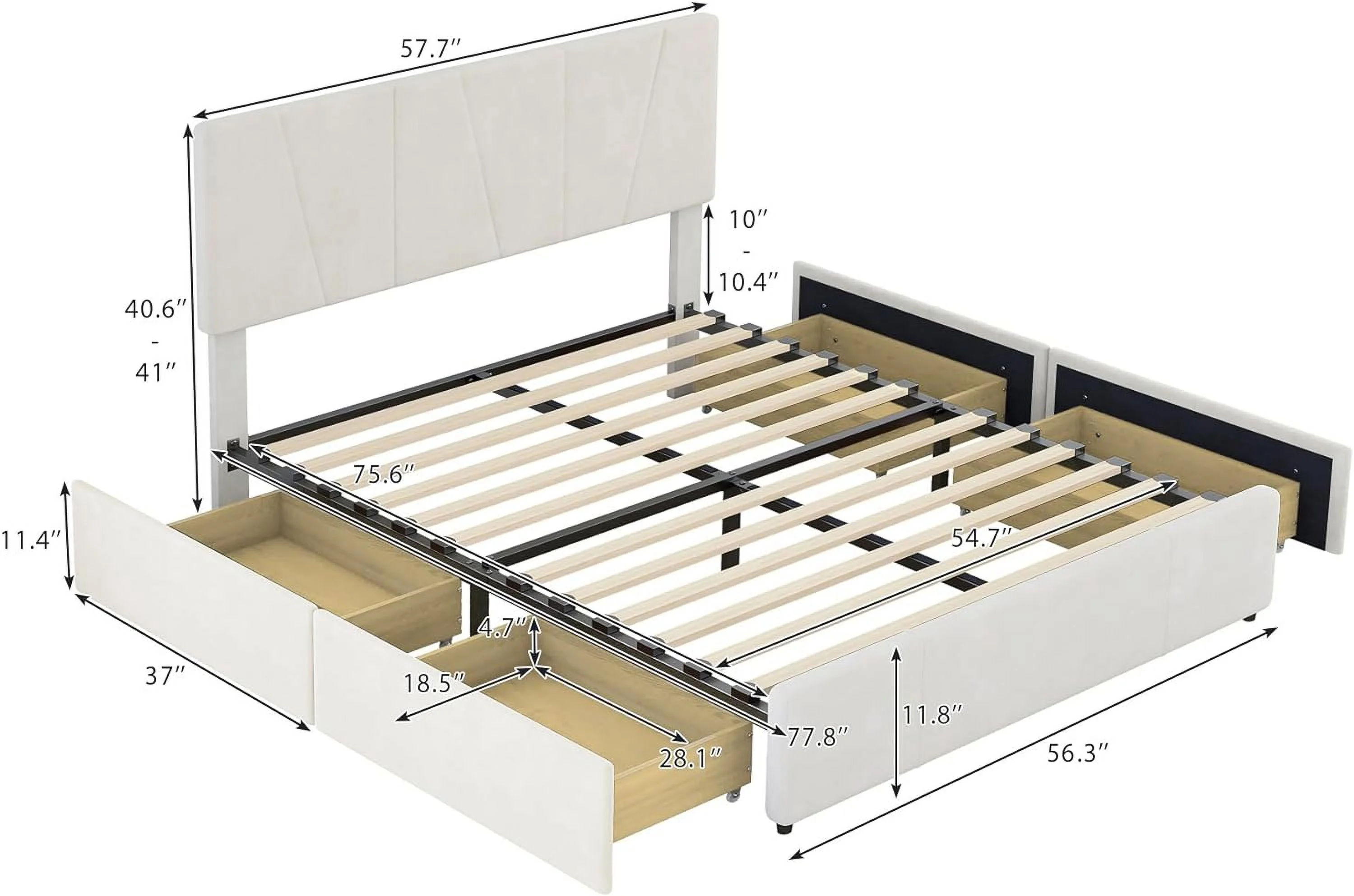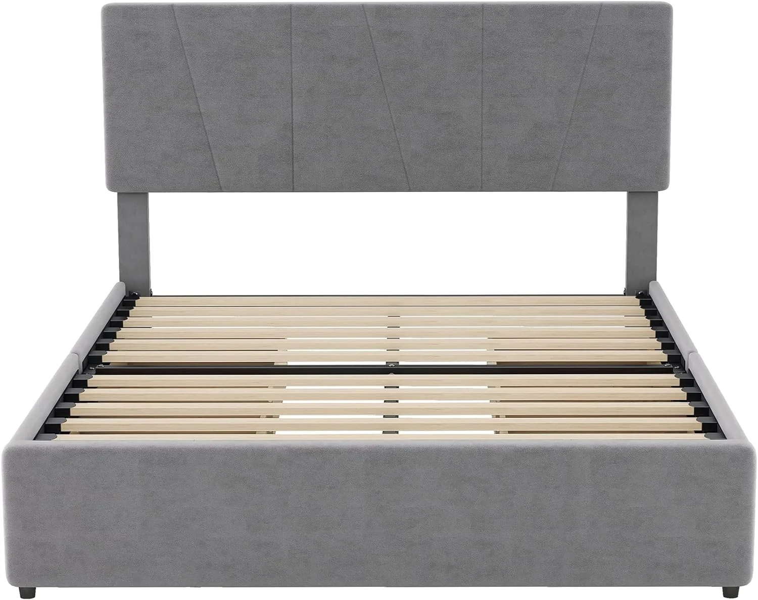Full Size Upholstery Platform Bed with Four Drawers on Two Sides, Adjustable Headboard