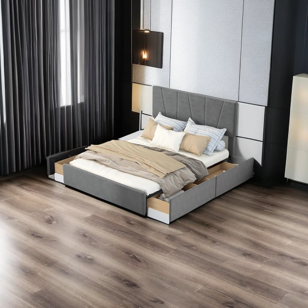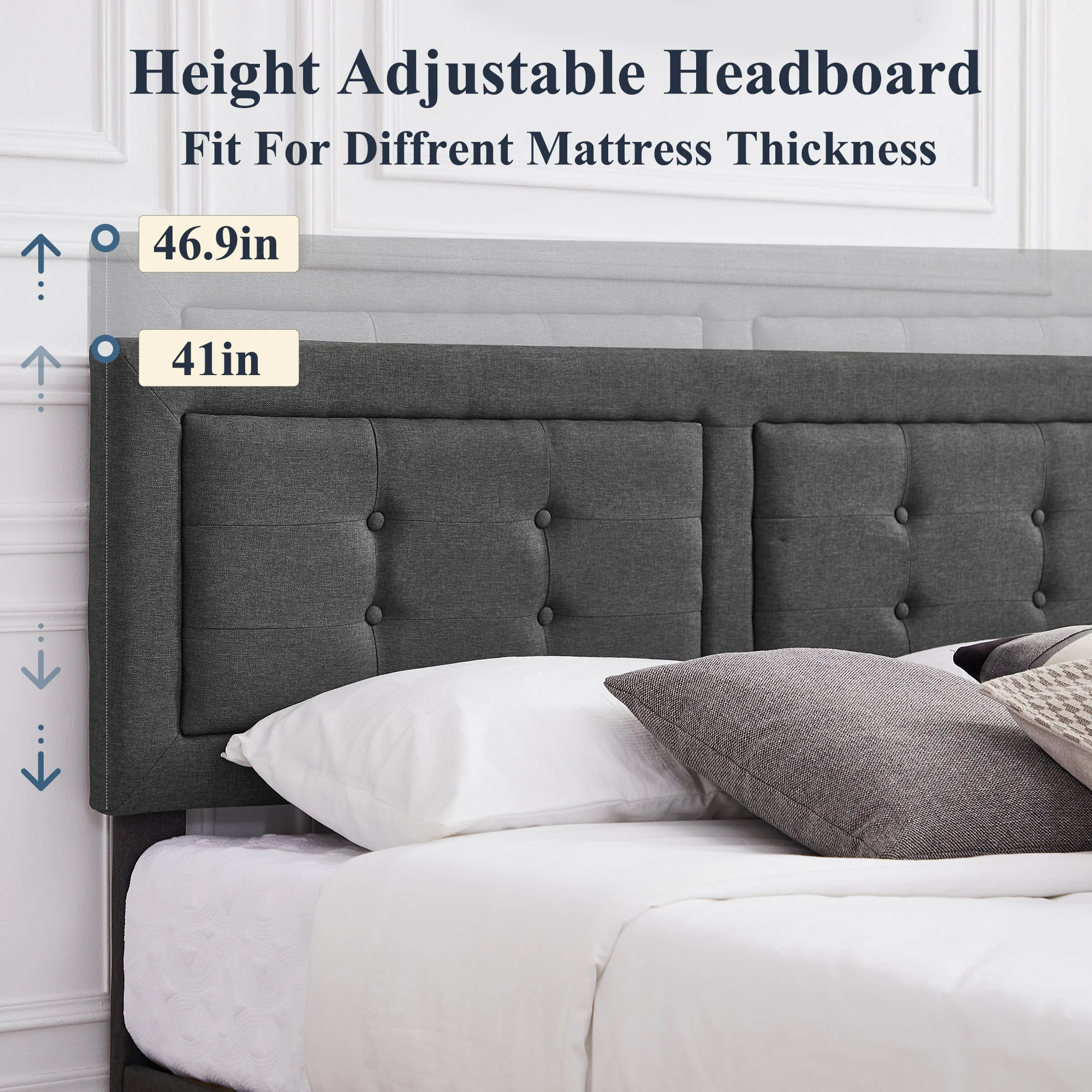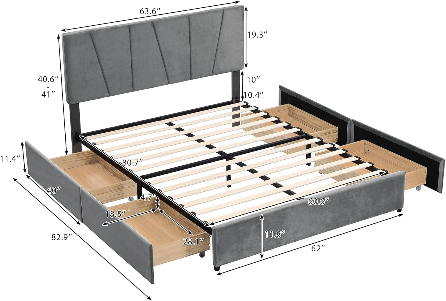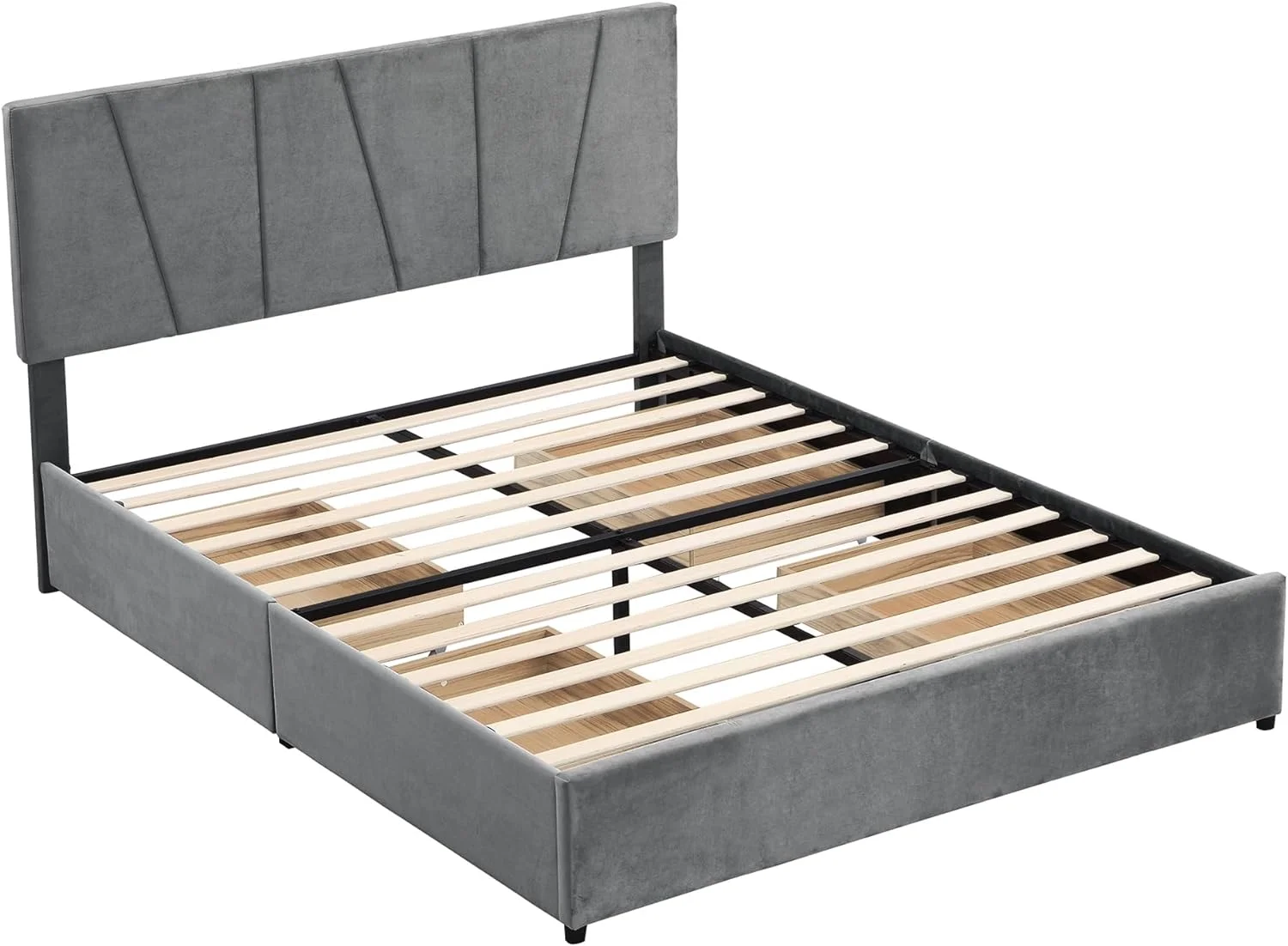 Full Size Upholstery Platform Bed with Four Drawers on Two Sides, Adjustable Headboard