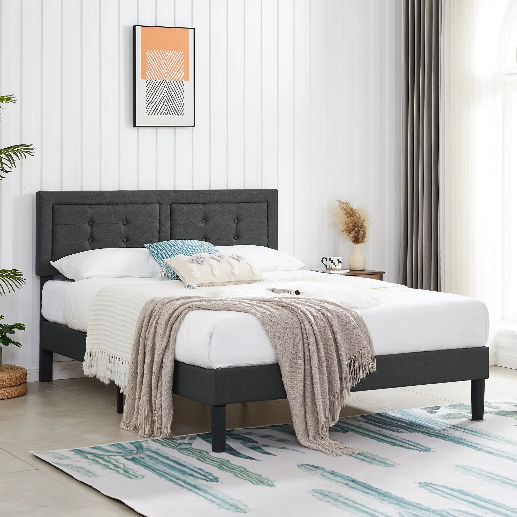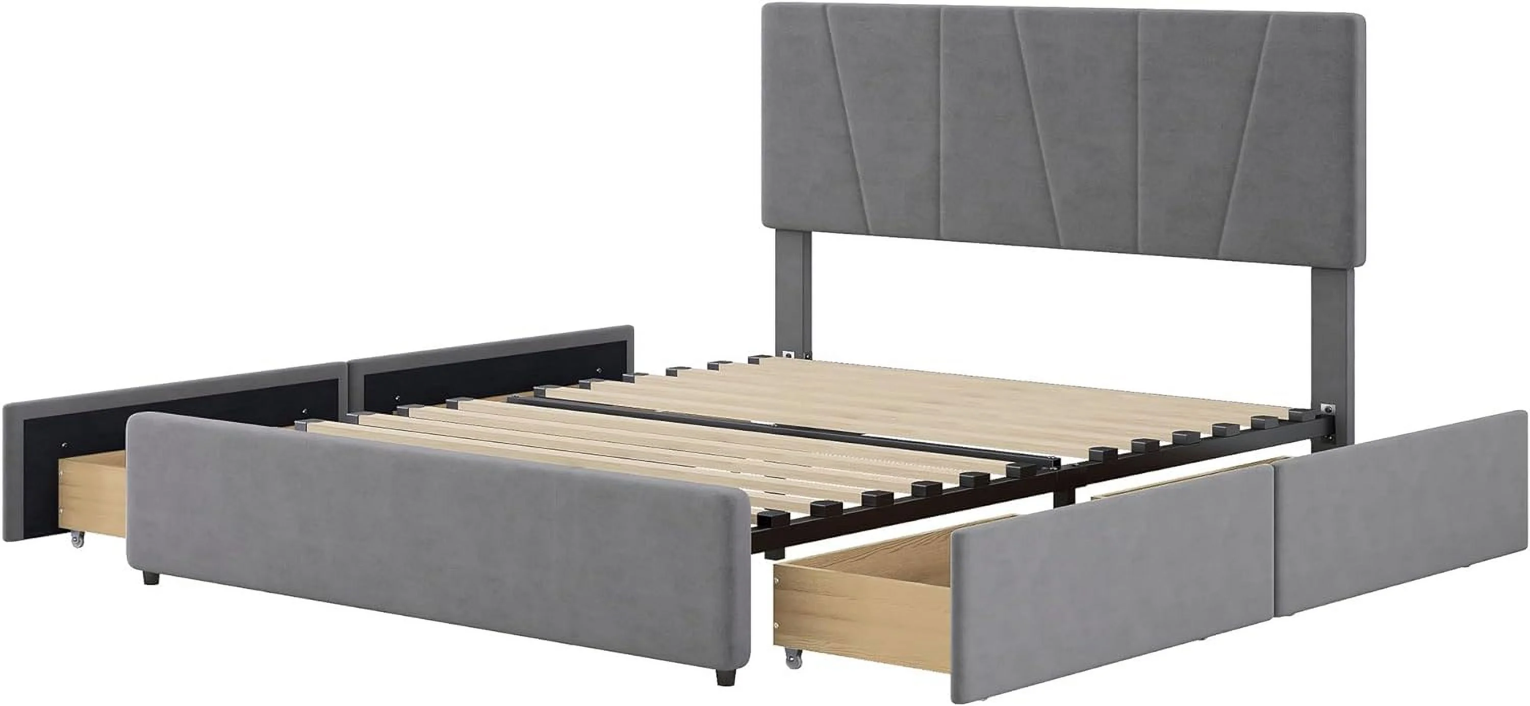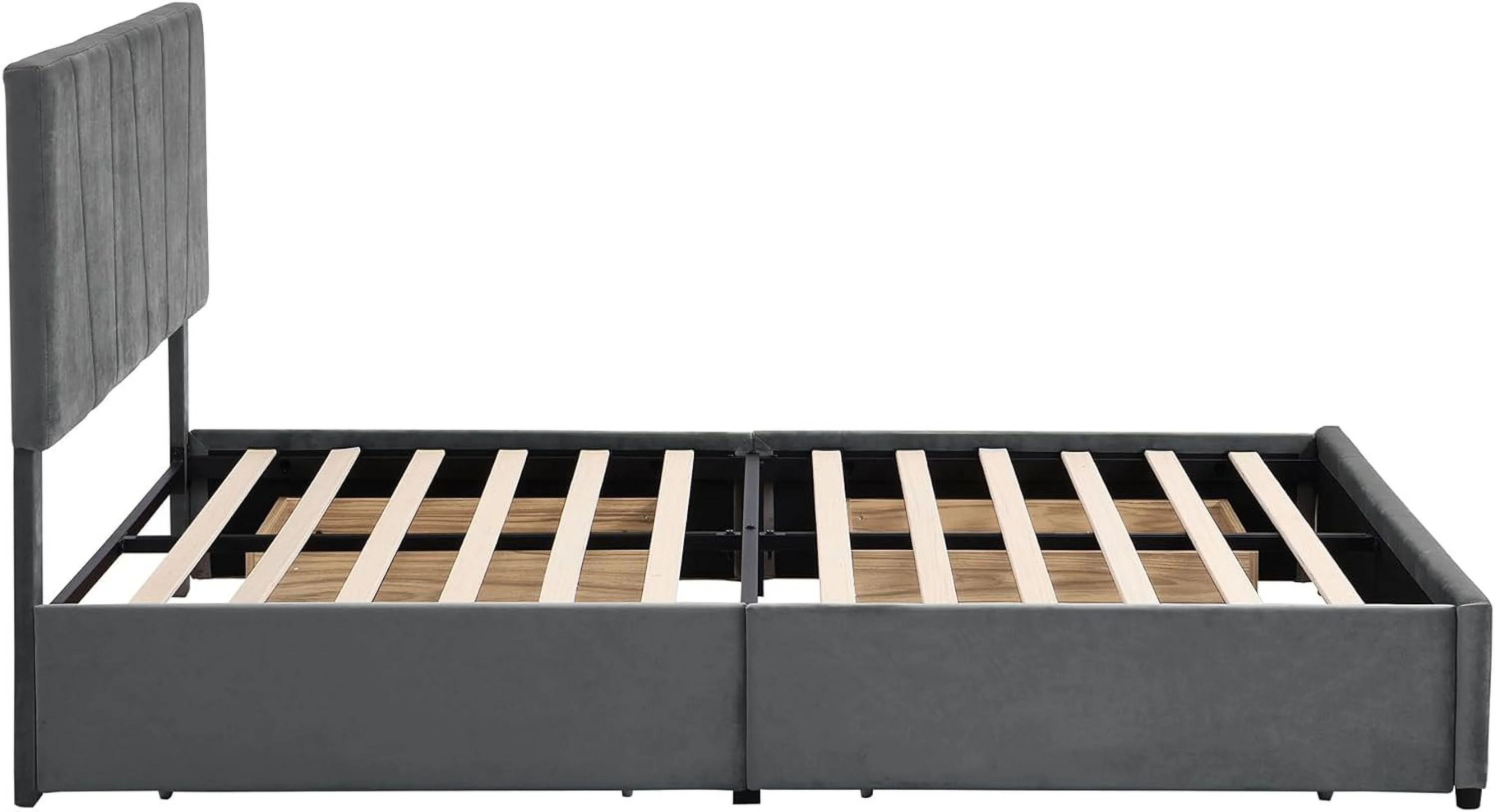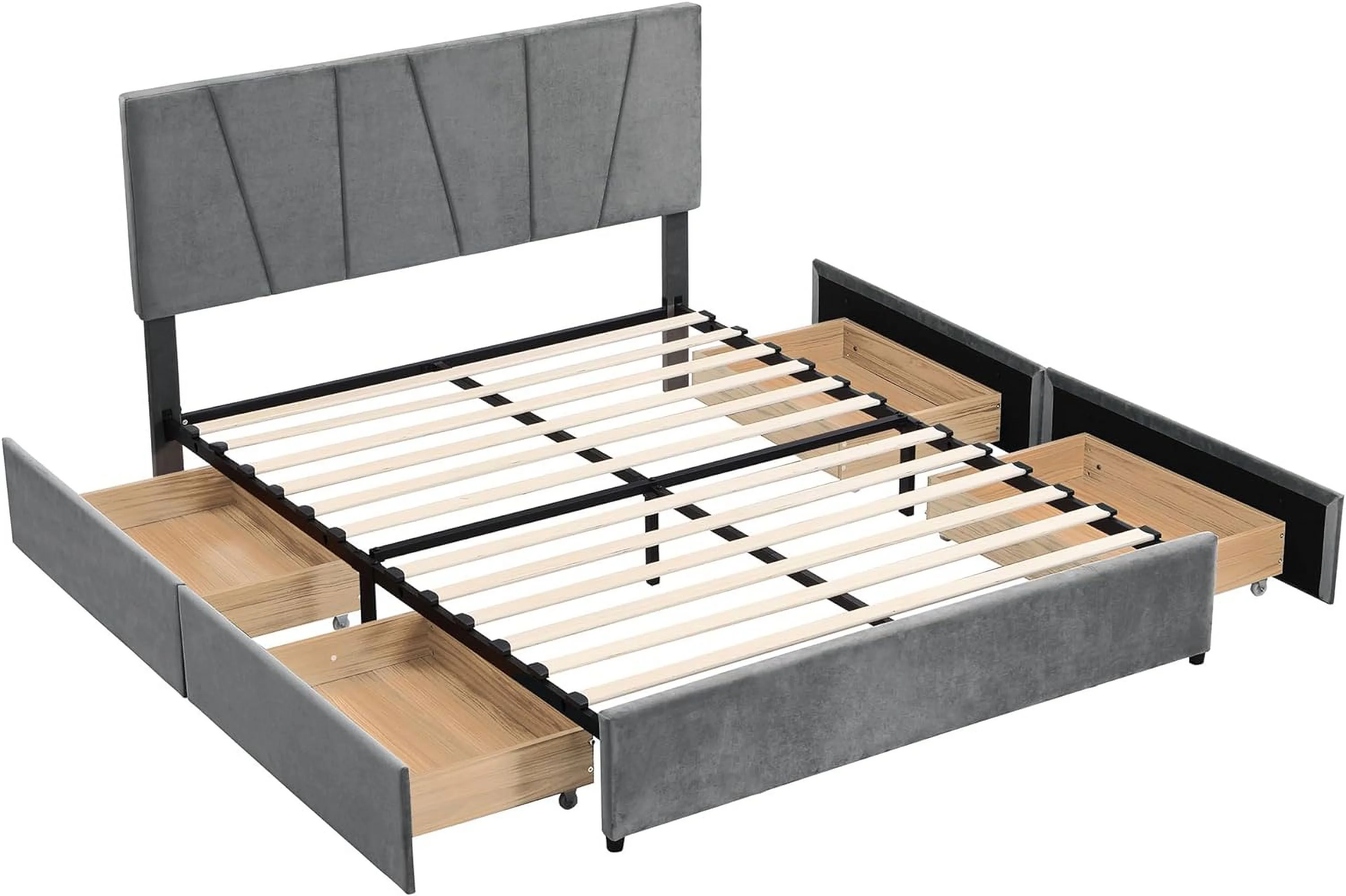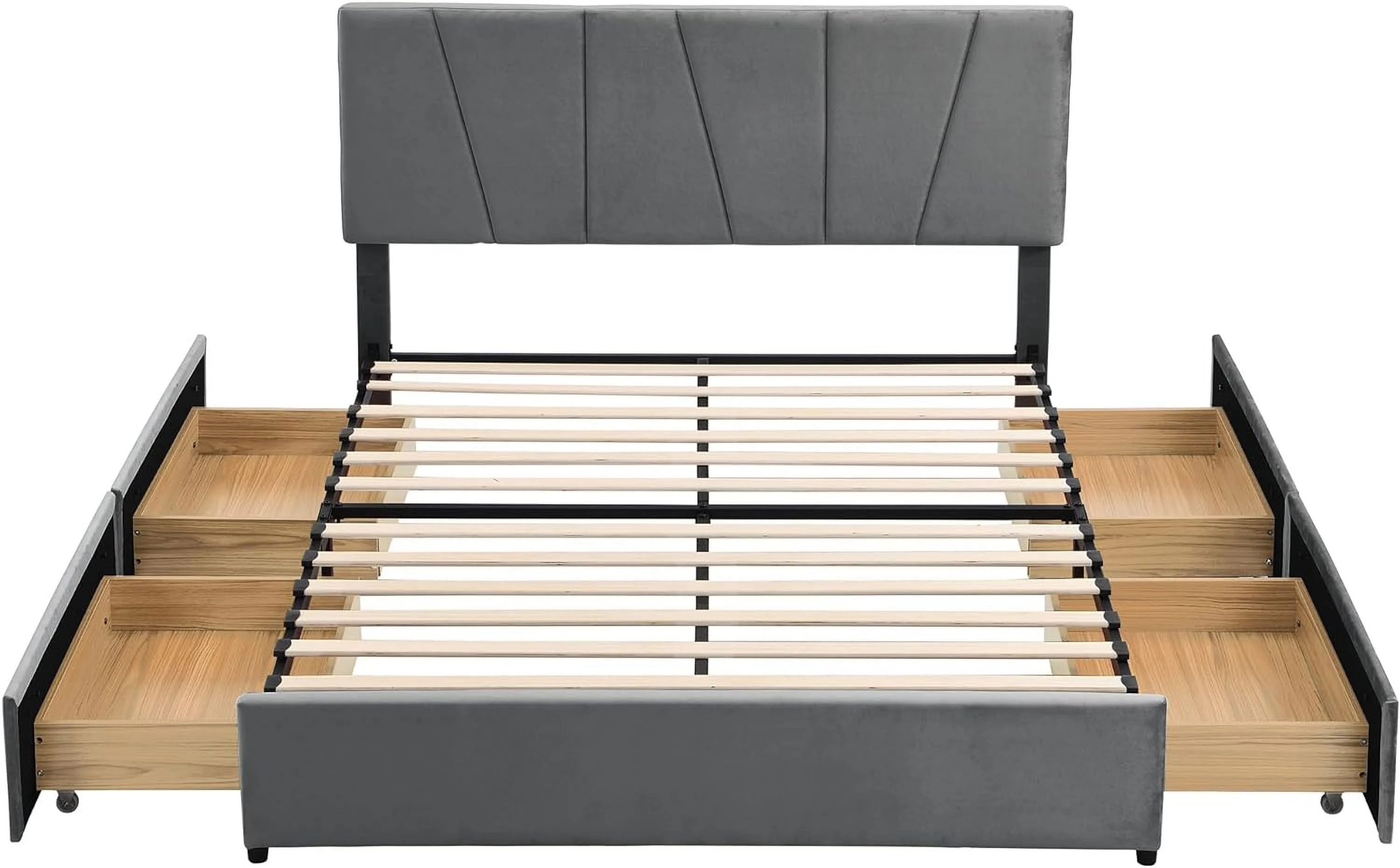 Full Size Upholstery Platform Bed with Four Drawers on Two Sides, Adjustable Headboard